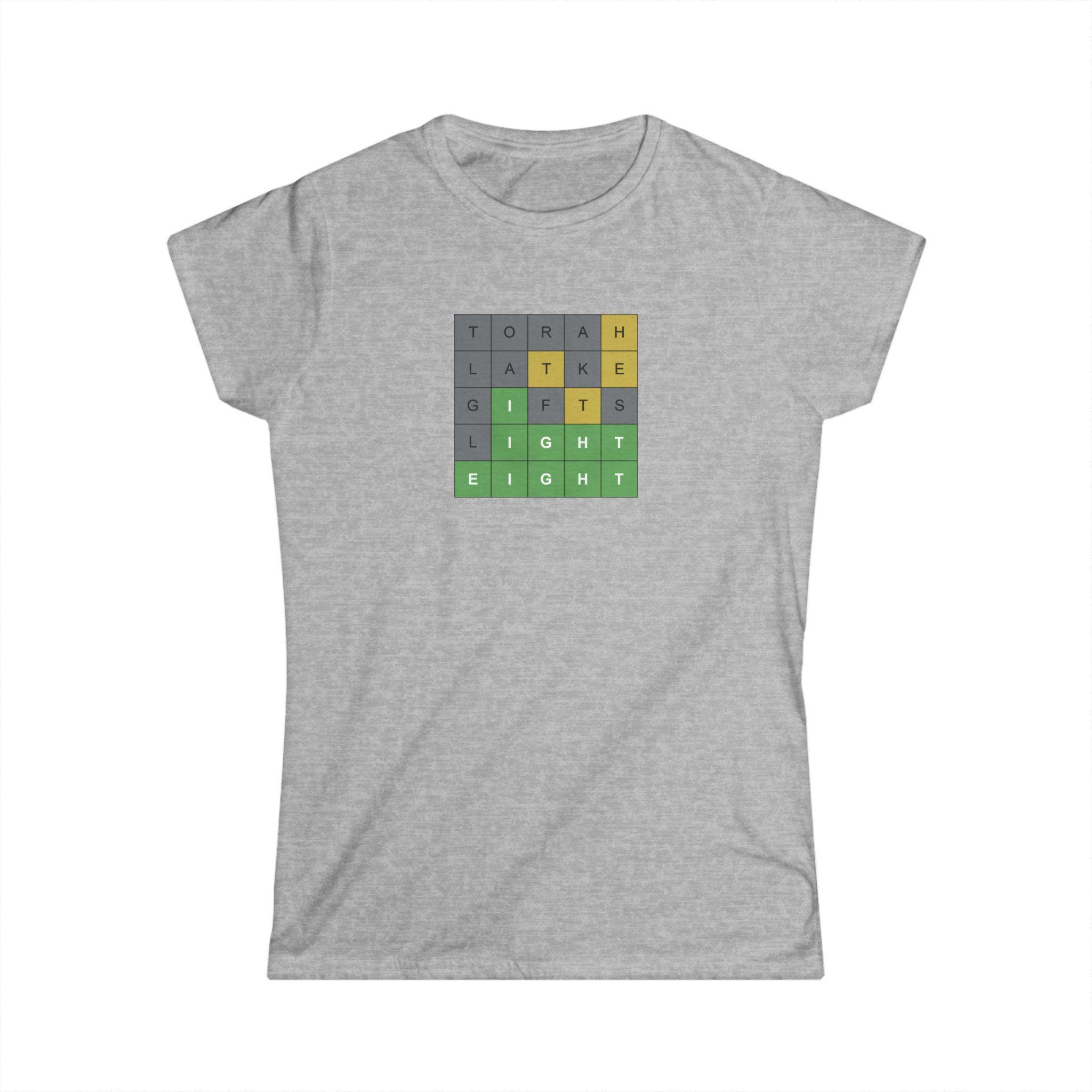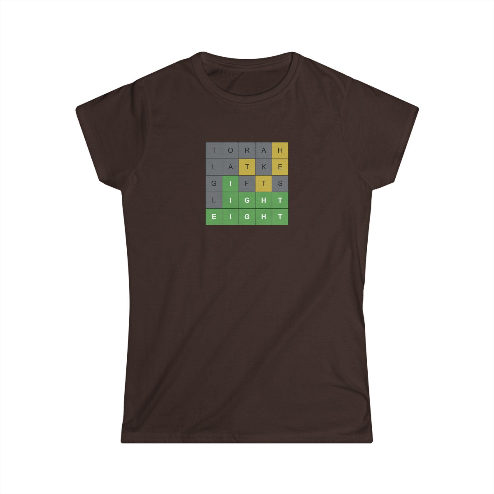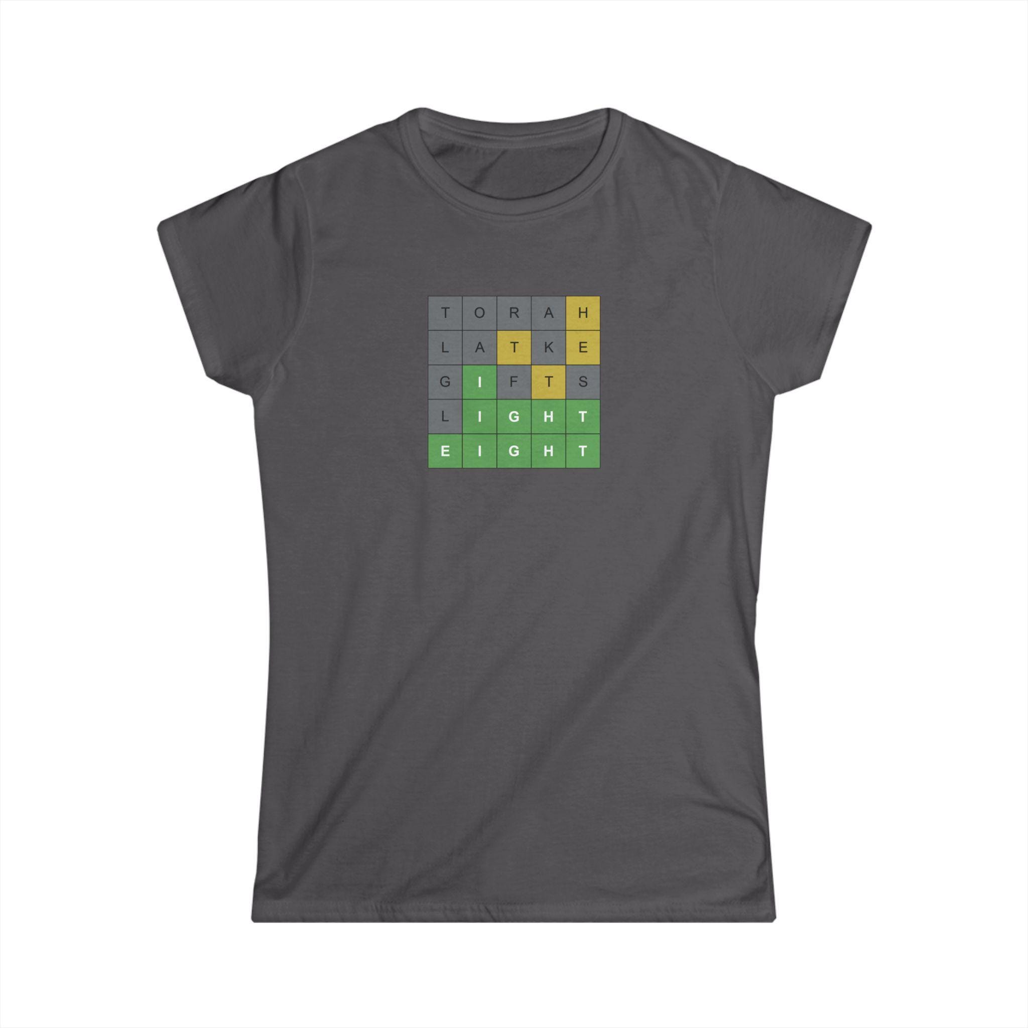 Celebrate Hanukkah in style with this Women's Softstyle Tee featuring a Wordle design. This semi-fitted tee is made of light fabric and runs true to size, perfect for adults looking for a comfortable and festive shirt to wear during the Hanukkah holiday.