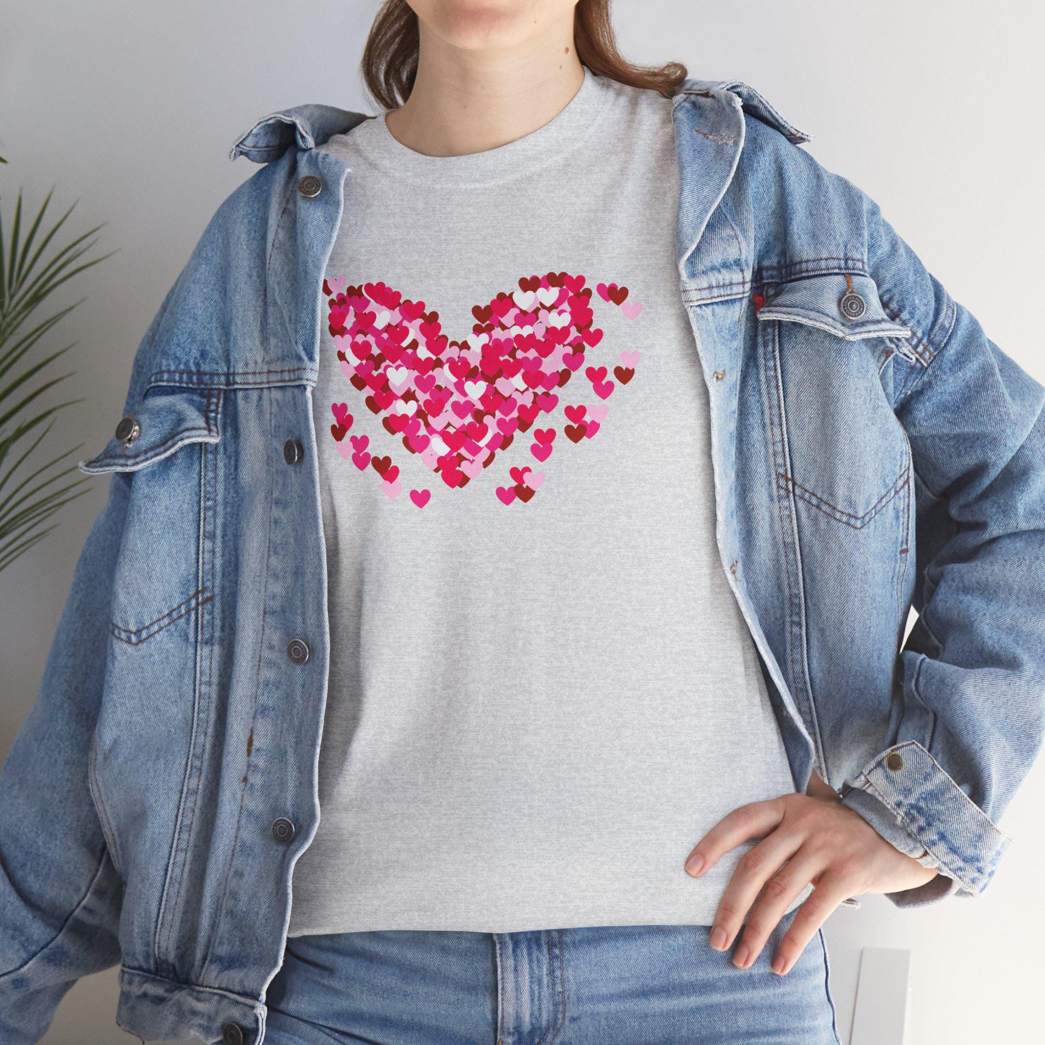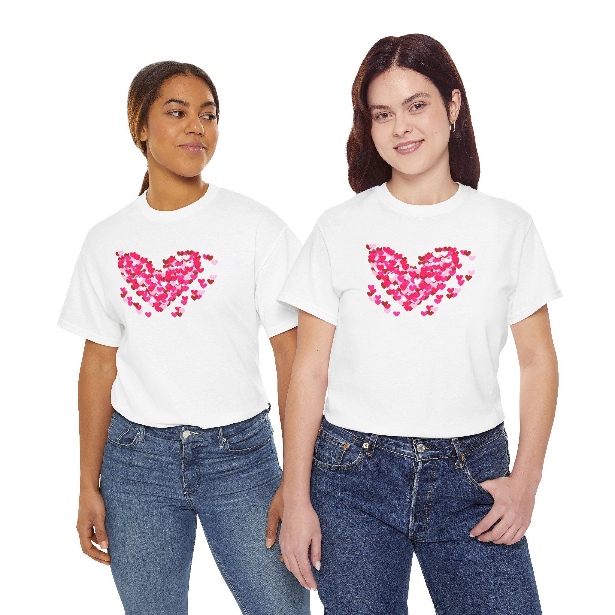 Soft, straightforward, and thoughtfully made — this tee carries a quiet Valentine’s energy with overlapping hearts that feel handwritten, warm, and honest. The medium-weight cotton drapes easily, so it becomes part of everyday life: worn on coffee dates, city strolls, or lazy evenings in. The design sits cleanly on the chest, while the comfortable crew neck and classic fit keep the silhouette familiar and wearable. Small details — a tear-away label, reinforced shoulder tape, and balanced fabric weight — make it a shirt you reach for again and again when you want to wear something that quietly says ‘I care.’