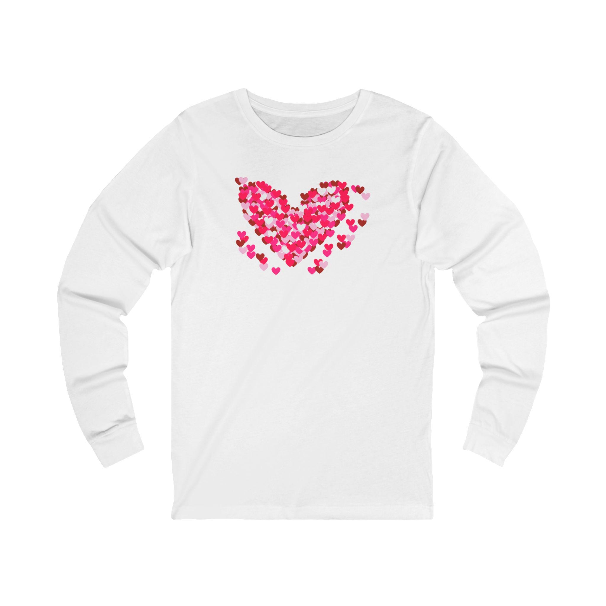 This long-sleeve tee carries a soft, hand-drawn heart pattern that feels like a quiet, warm note folded into your day. Lightweight and breathable, it layers easily under a jacket or stands on its own during cool evenings. The ribbed collar and shoulder tape keep the shape steady wash after wash, while the retail fit skims the body without feeling tight. Wear it to a low-key Valentine’s dinner, a cozy movie night at home, or while wandering city streets with someone you care about — it reads intimate, casual, and thoughtfully made. The subtle heart motif lets you show affection without shouting, pairing naturally with worn denim or a relaxed cardigan.