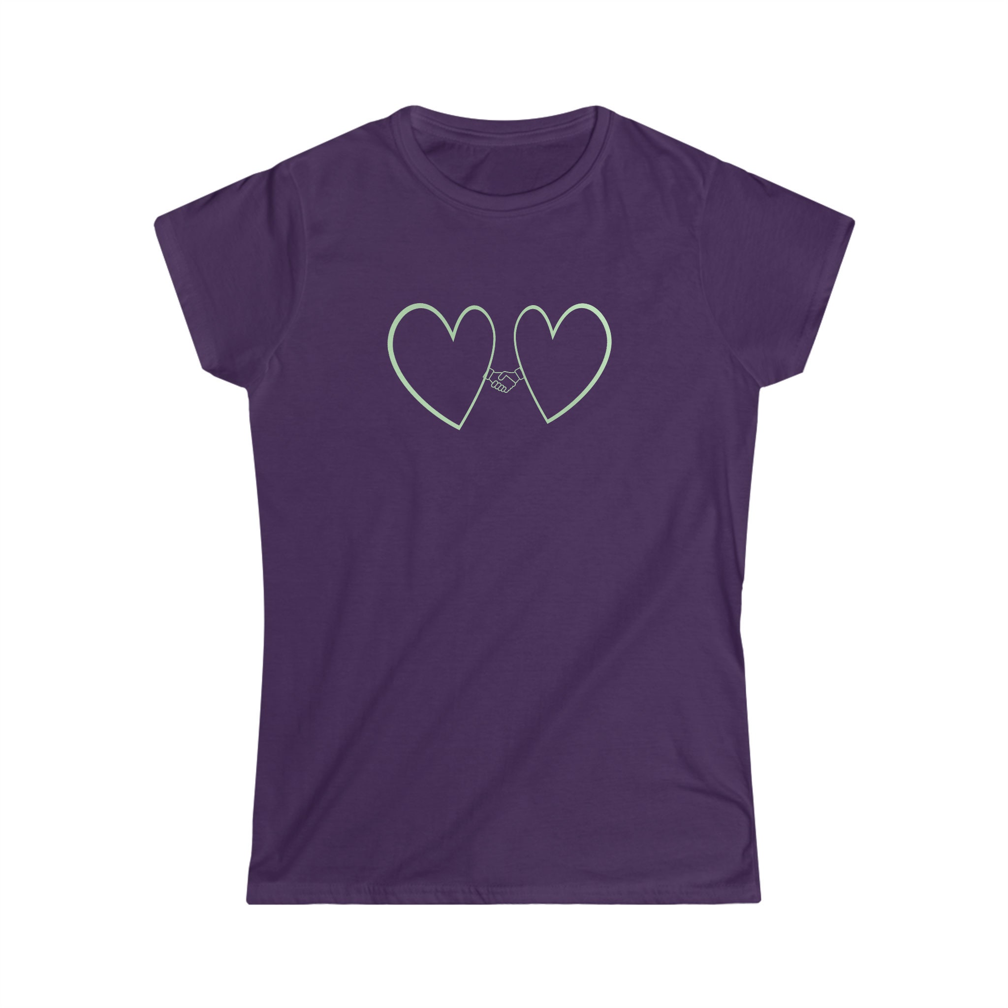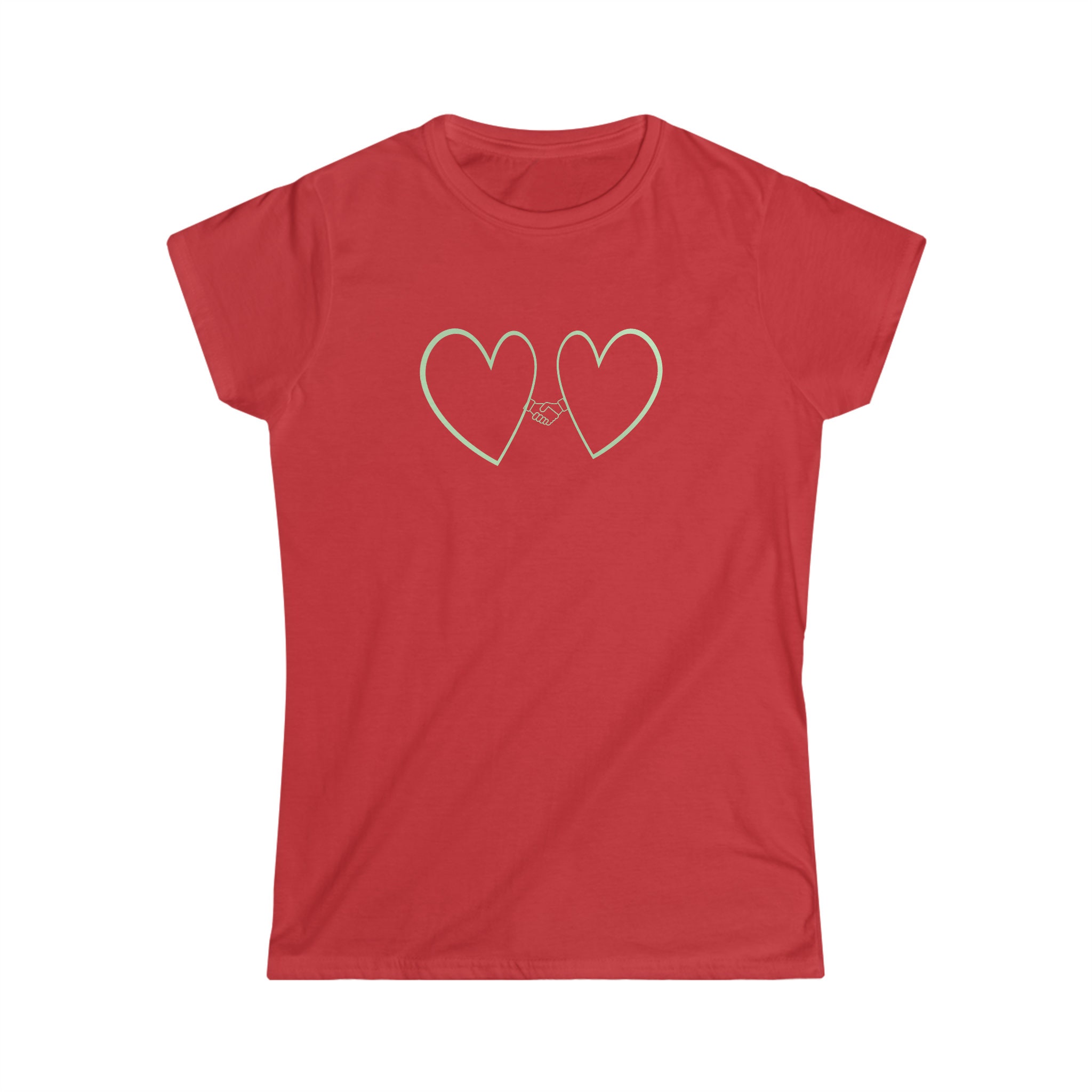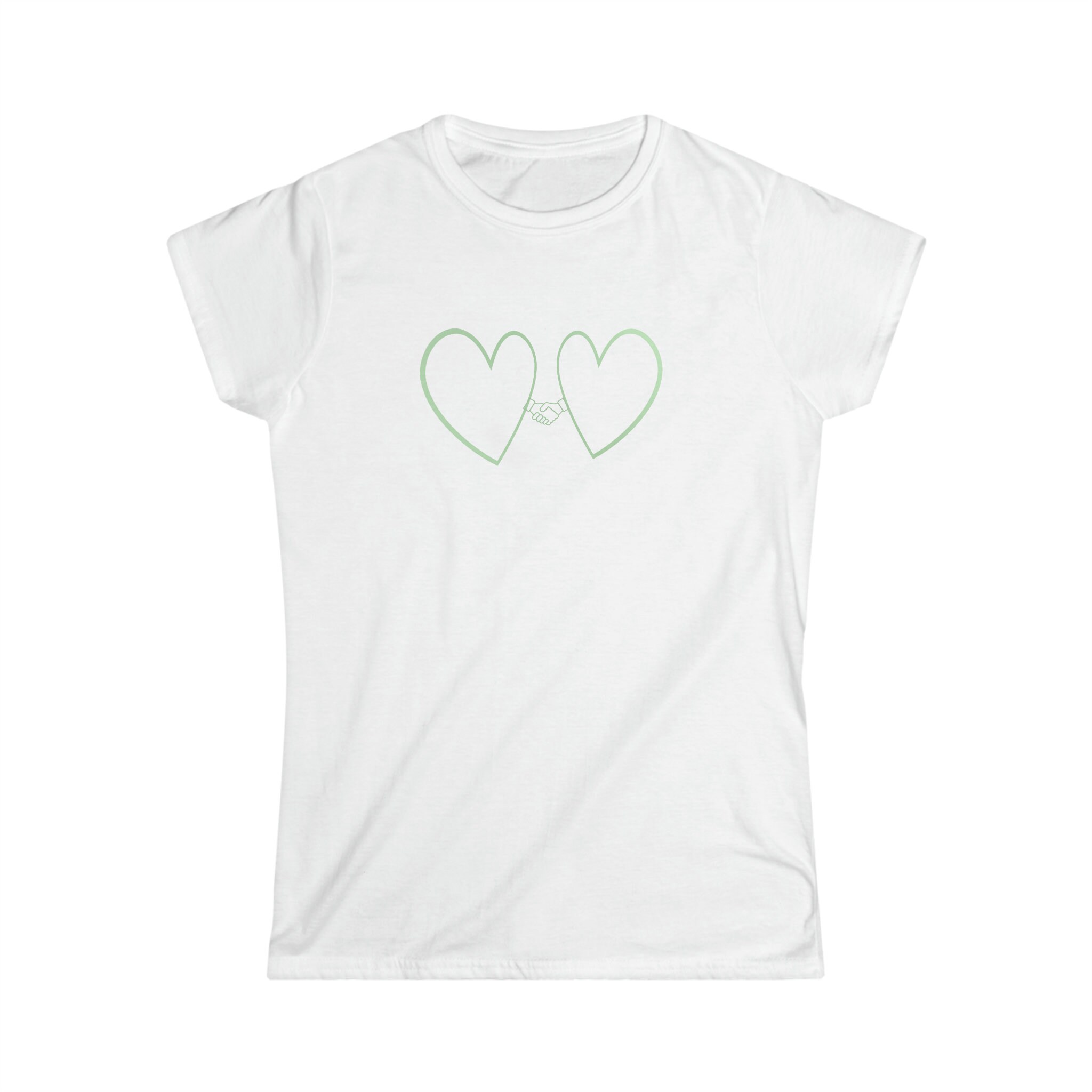 The woman's softstyle tee is a more feminine take on the classic tee. The sleeves are shortened to reveal some shoulder. The fabric is 100% ringspun cotton for all solid colors. The shoulders are taped with twill to prolong durability. The collar seam is reinforced with ribbed knitting.