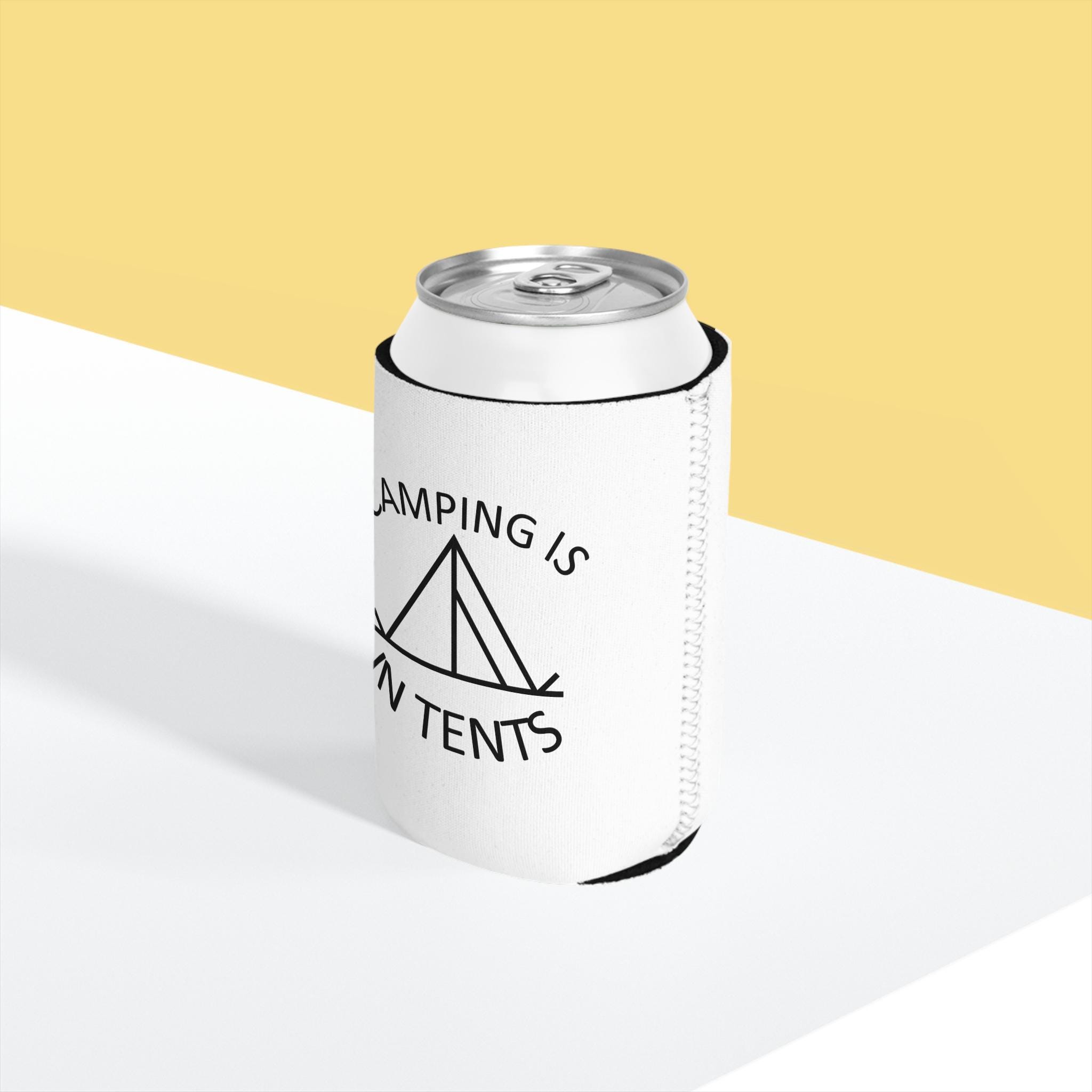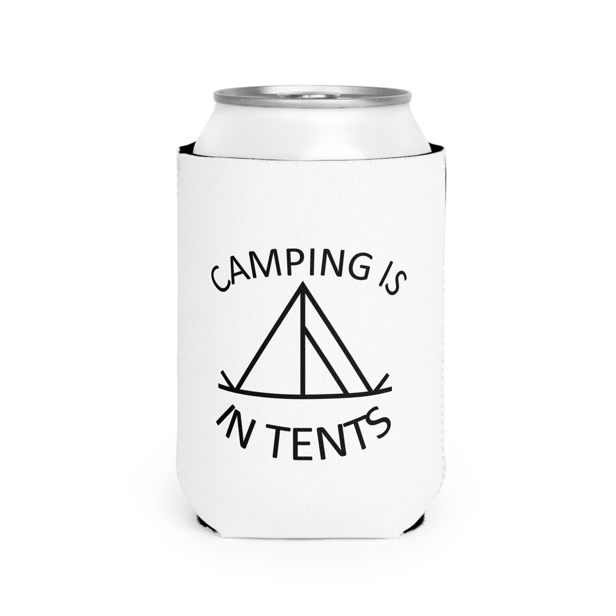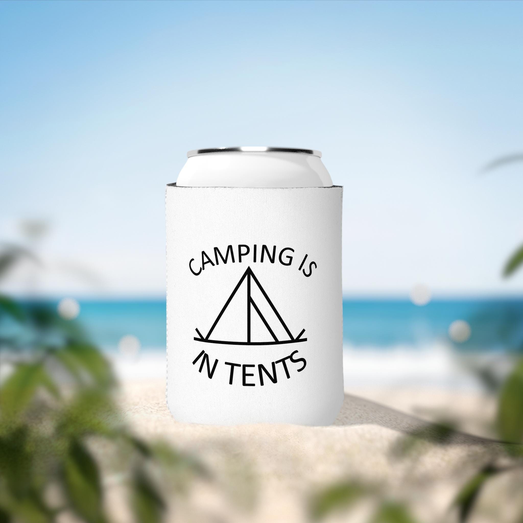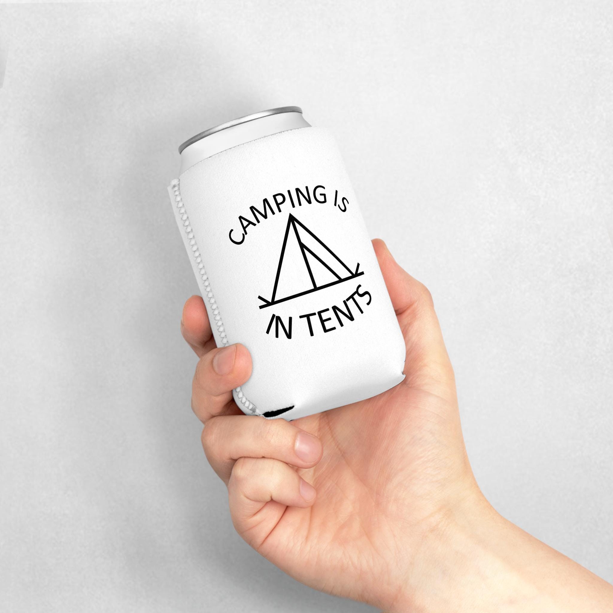 Stay cool and stylish while camping with the 'Camping Is In Tents' Can Cooler Sleeve. Perfect for outdoor enthusiasts and campers, this neoprene sleeve keeps your drink cold and fits standard 12 oz cans. The vibrant colors and fun design add a touch of whimsy to any outdoor adventure.