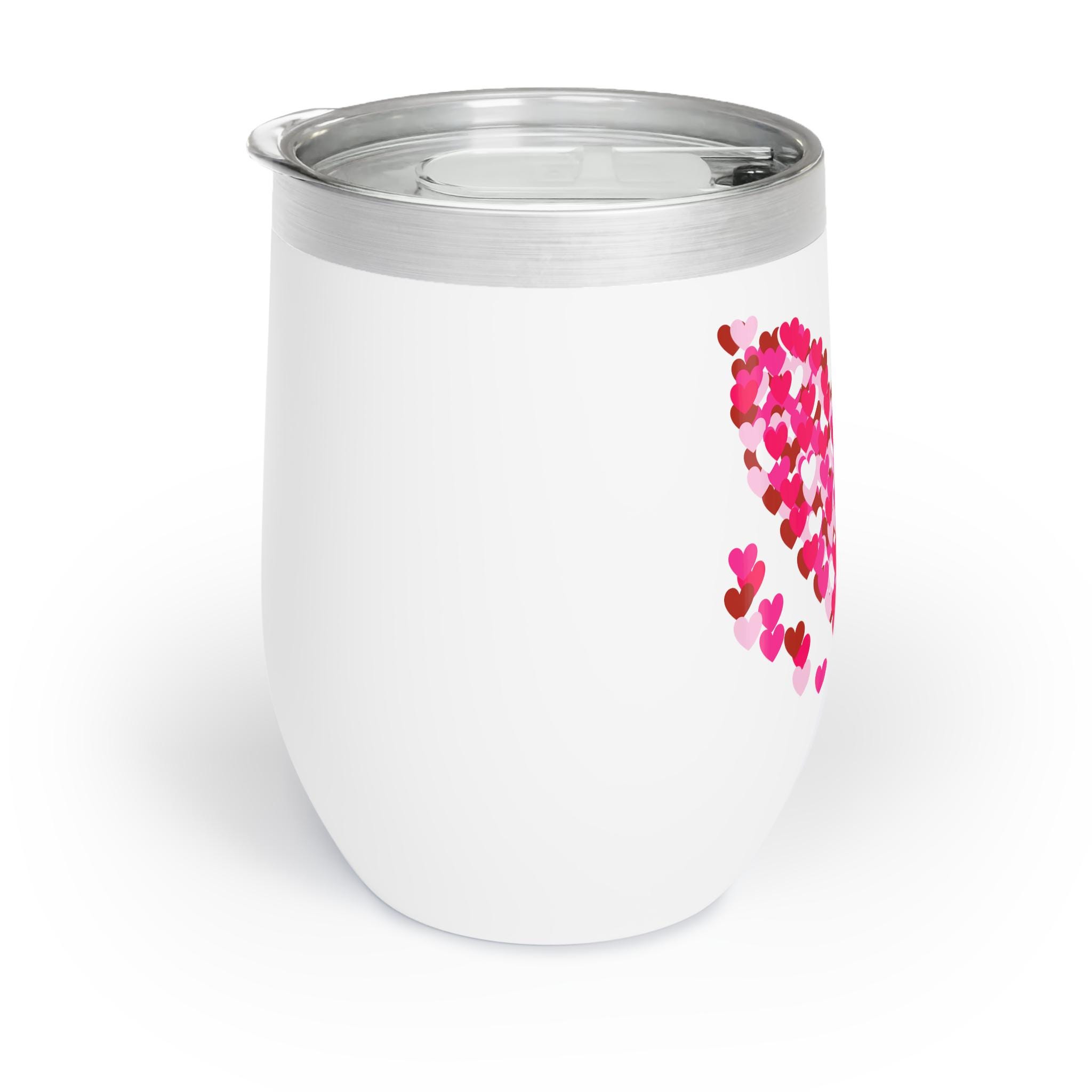 A 12oz stainless steel wine tumbler finished with a soft horizontal stipple texture and a wraparound Valentine’s hearts design. It feels solid and cool in hand, sealing in the moment whether you’re lingering over a porch swing at dusk or curled up with a quiet playlist. The vacuum-insulated double-wall keeps chilled rosé bright for up to 12 hours and gently holds warmth for shorter sips, while the clear BPA-free press-on lid with slide closure helps prevent spills without muting the design. The hearts motif is playful and subtle—made for adults who want a little romantic flair in their everyday routines, from casual date nights to slow Sunday mornings. Hand wash to preserve the vivid UV-printed wrap; colors may read slightly softer in person, so the print favors rich, saturated artwork.