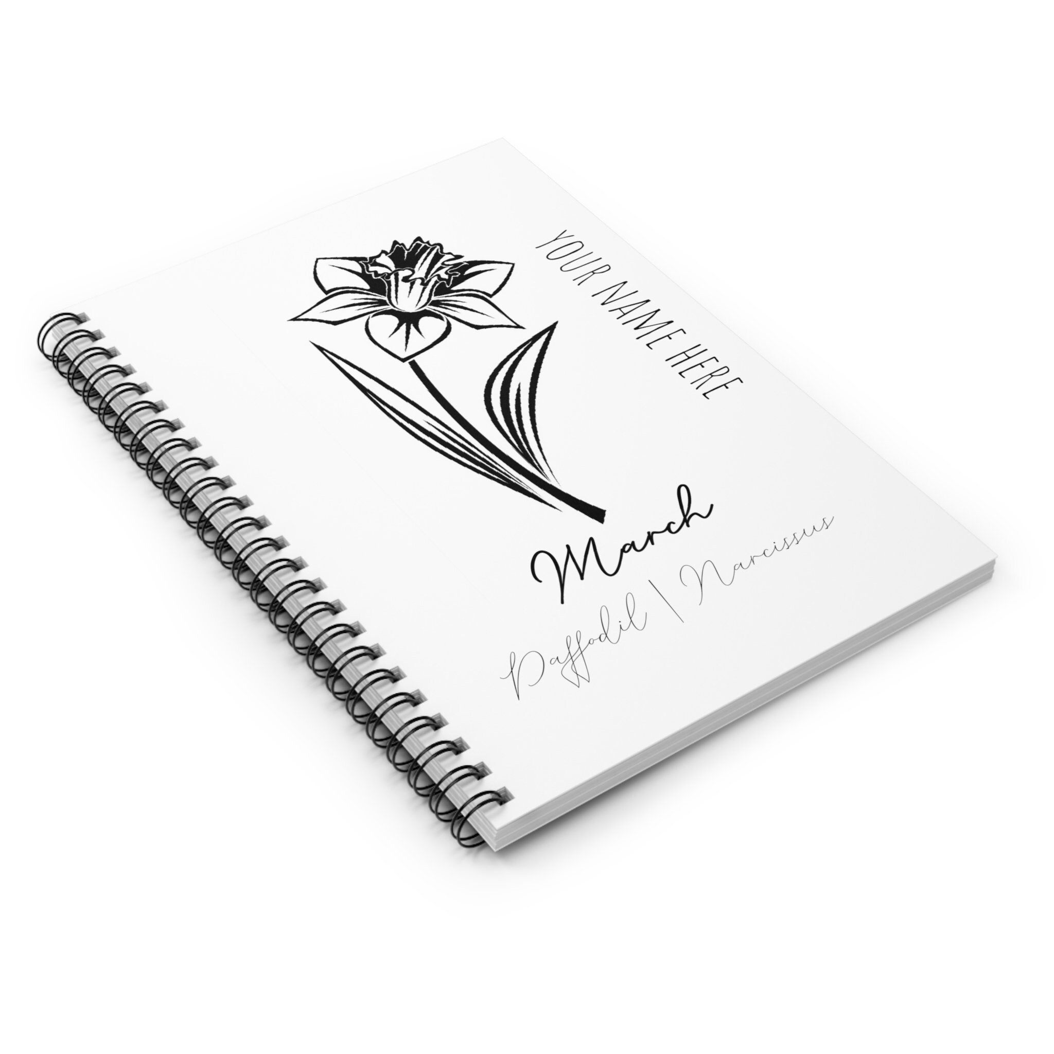 March Birth Flower - Daffodil - CUSTOMIZABLE Spiral Notebook - Ruled Line