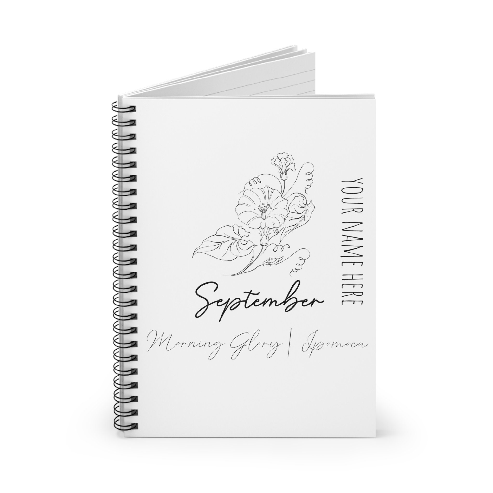 September Birth Flower - Morning Glory - CUSTOMIZABLE Spiral Notebook - Ruled Line