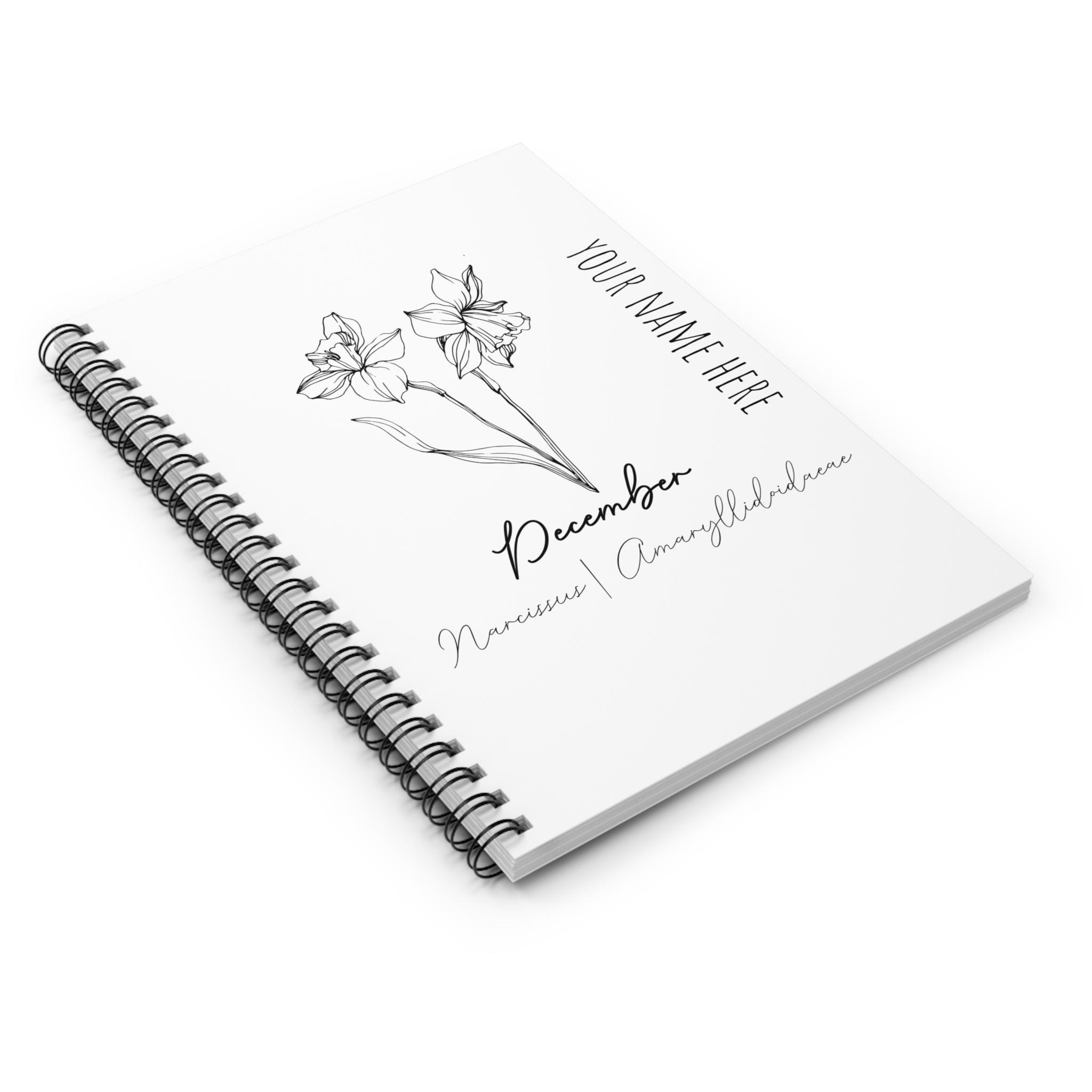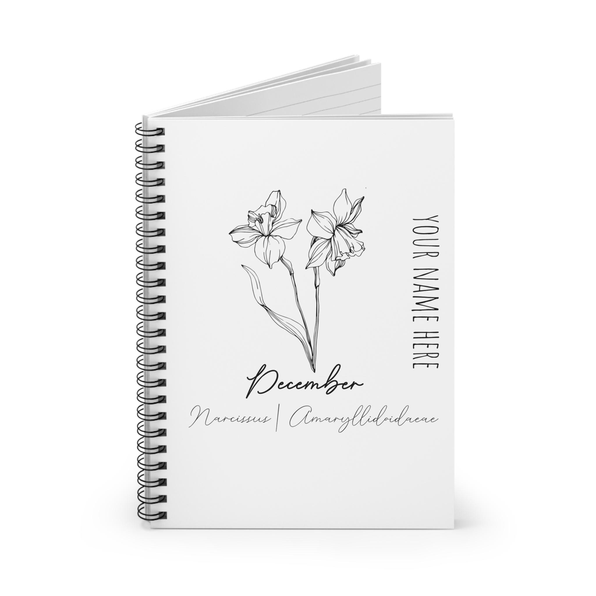 December Birth Flower - Narcissus - CUSTOMIZABLE Spiral Notebook - Ruled Line