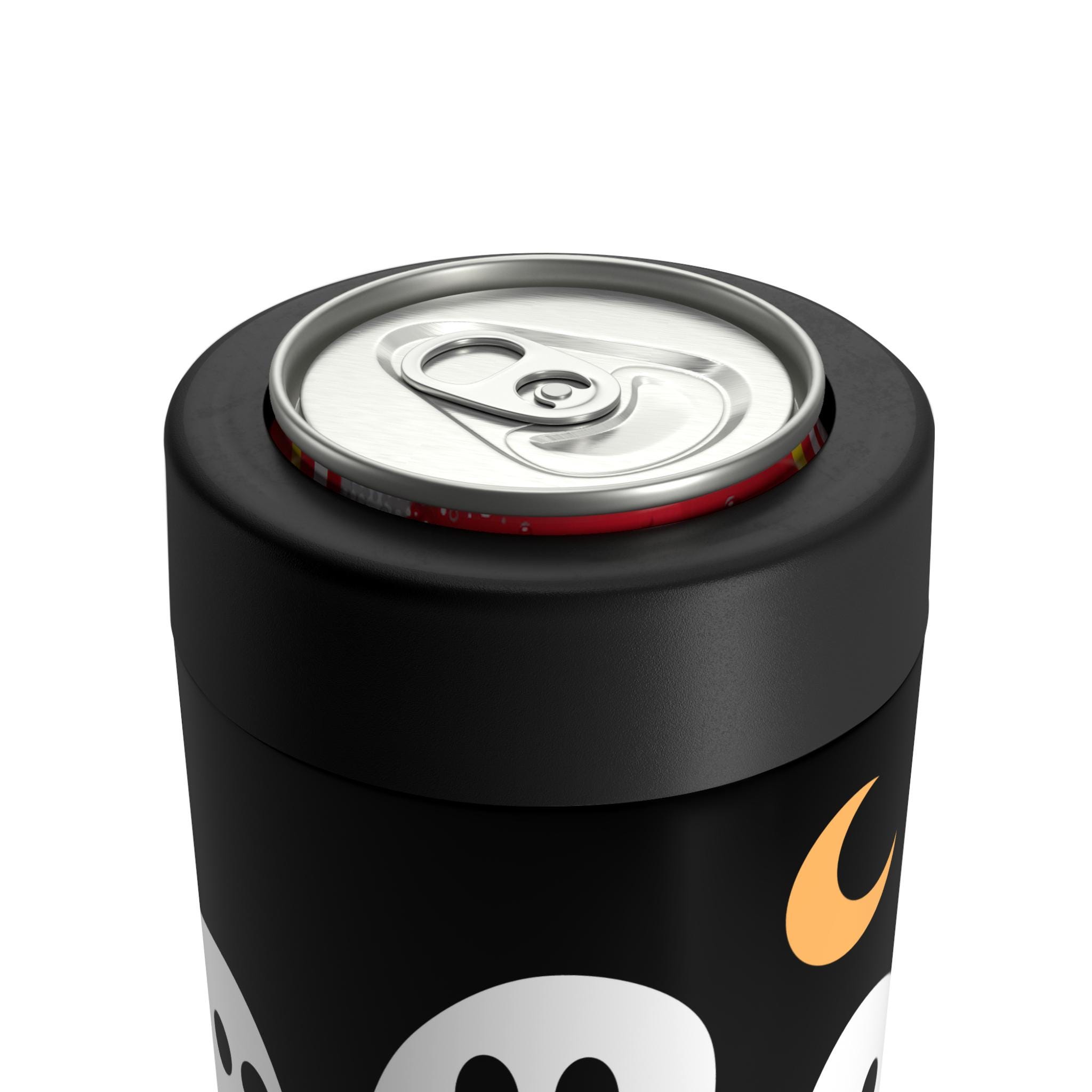 Keep your beverages cold and spooky with this Halloween-themed Can Holder featuring three white ghosts. Perfect for Halloween parties and events, this Can Holder is a fun and practical accessory that traps cold air and prevents water rings. Suitable for dishwasher use and fits a 12oz can or bottle.