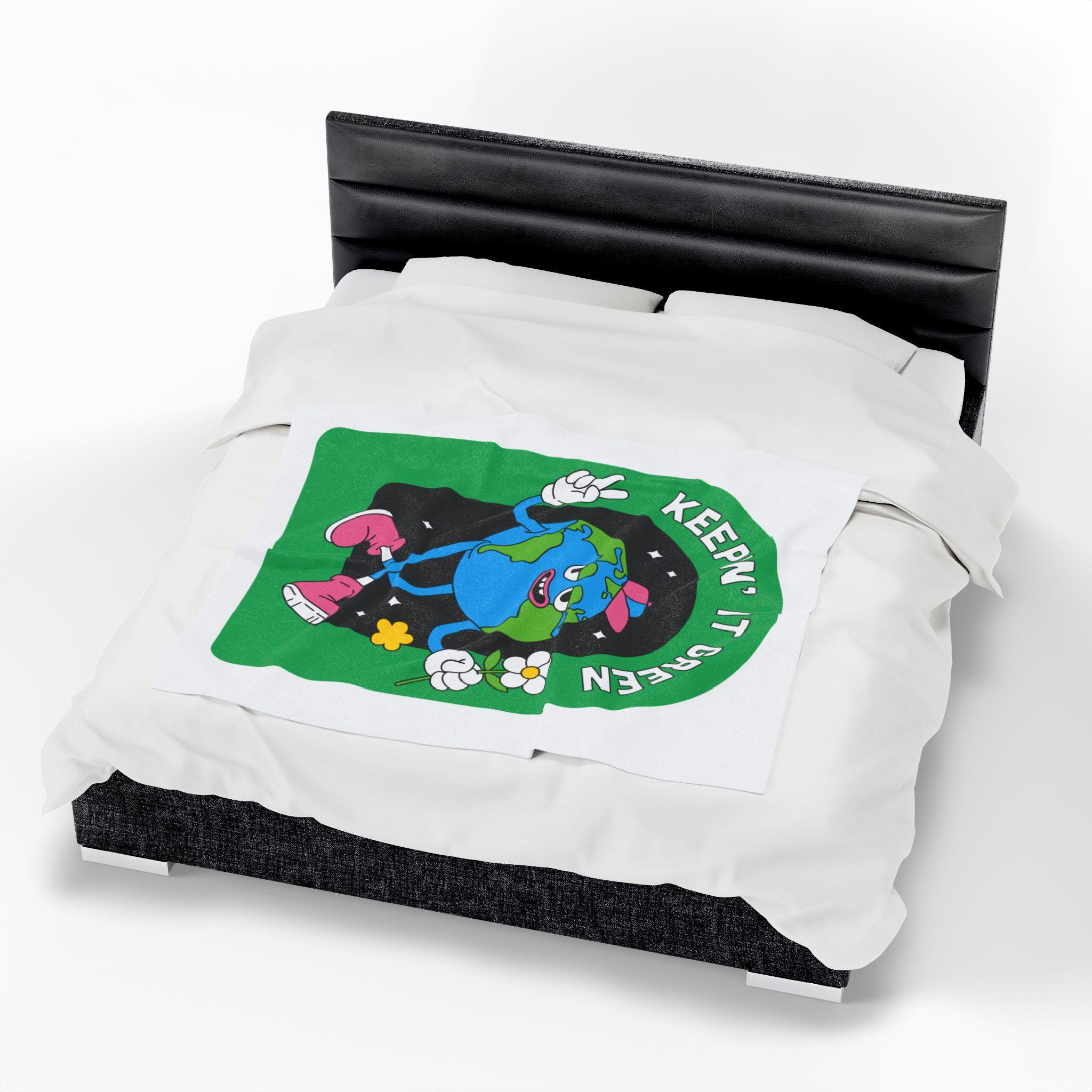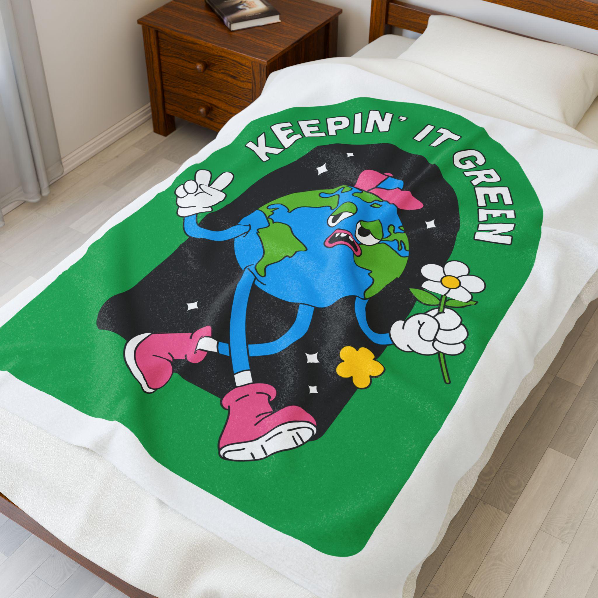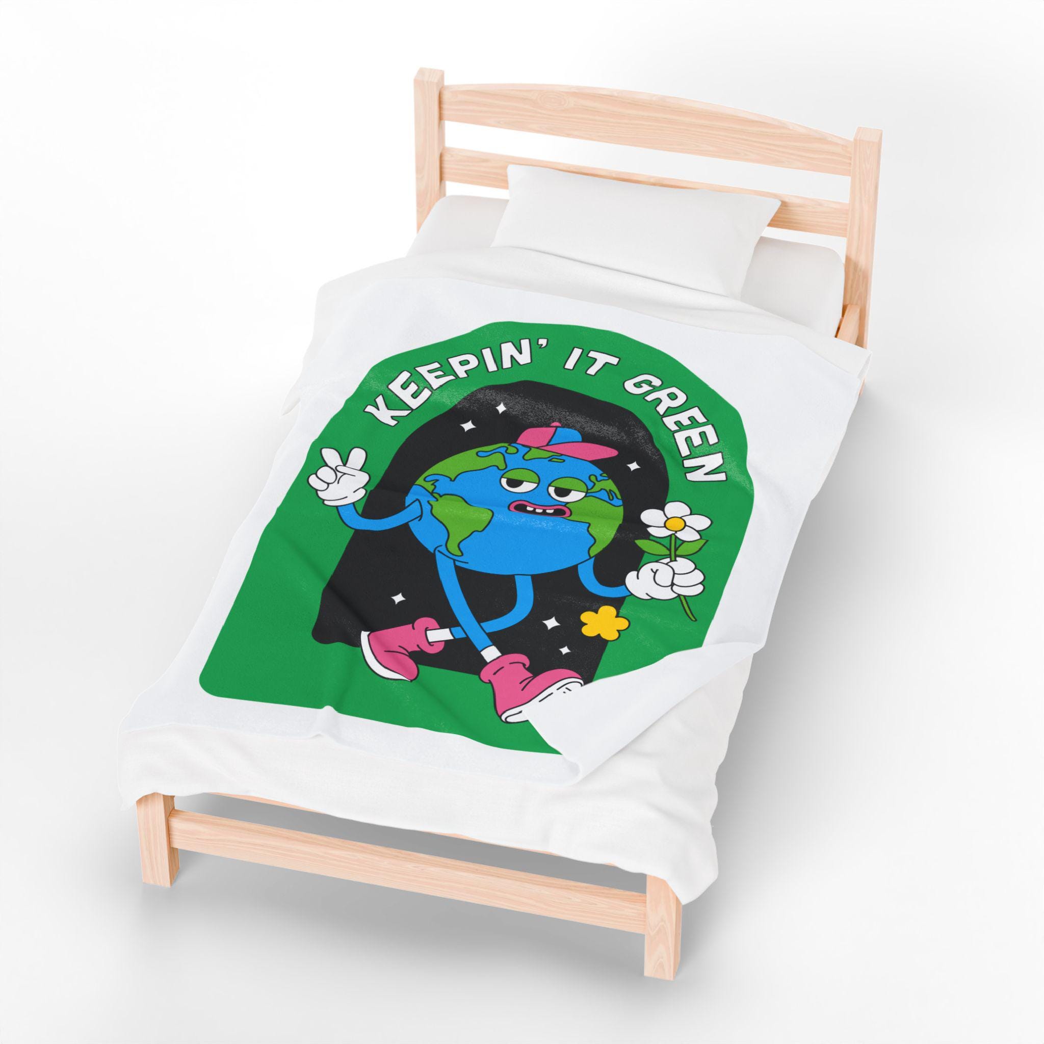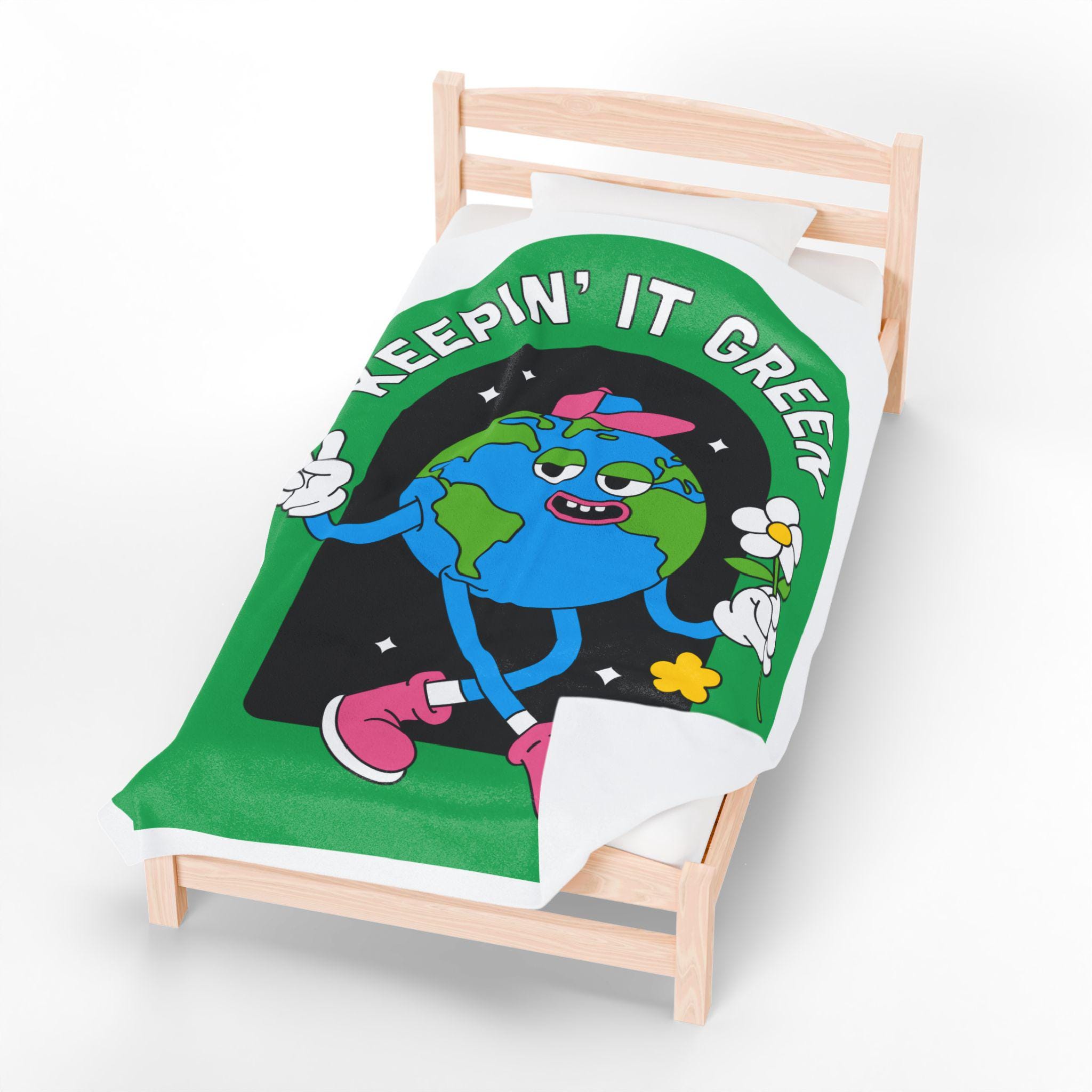 Stay cozy and environmentally conscious with this earth day-themed velveteen plush blanket. Perfect for adults looking to keep warm while supporting green initiatives. Ideal for Earth Day, green-themed events, and eco-friendly gift-giving occasions.