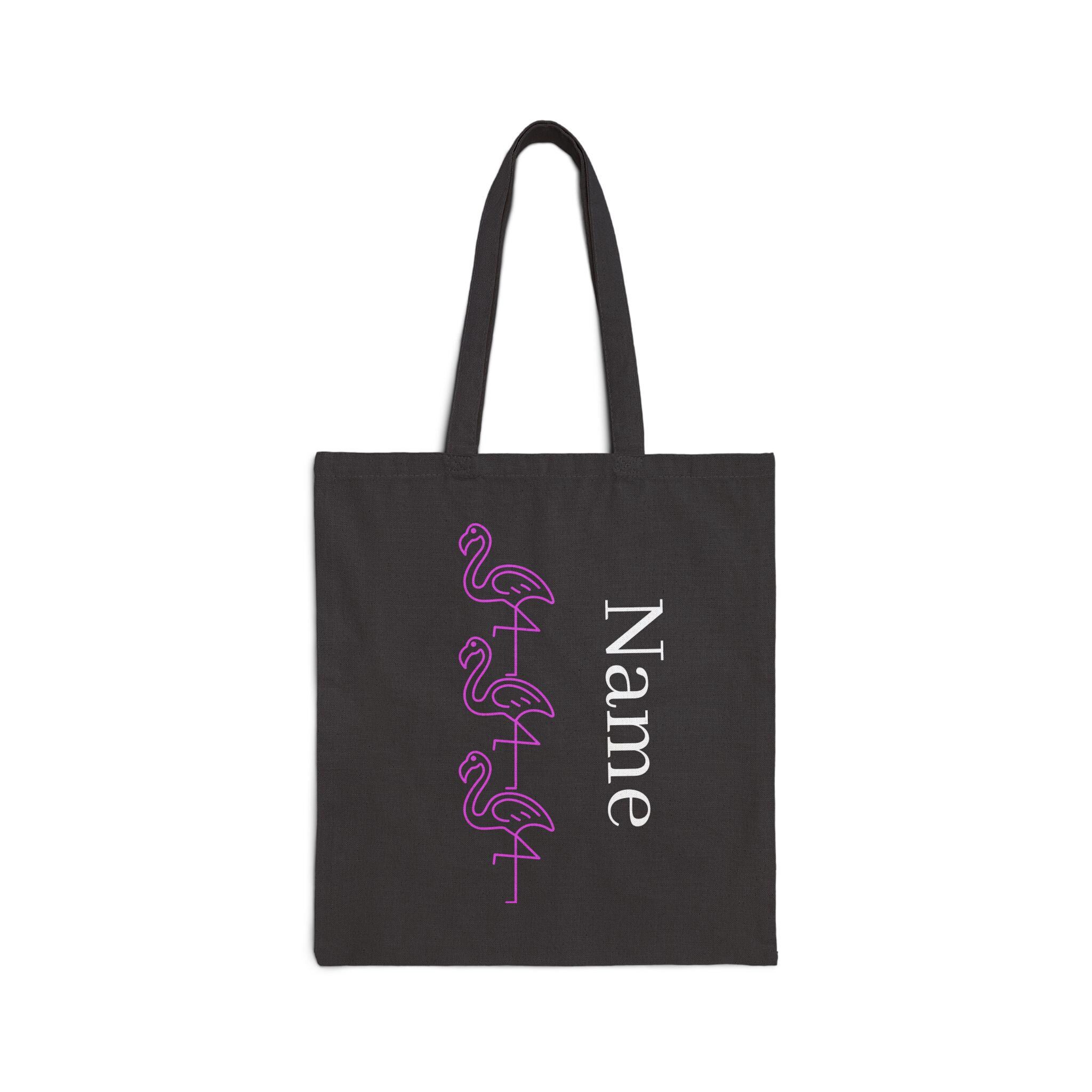 This customizable name flamingo tote bag is perfect for the beach or a summer outing. Made from durable 100% cotton canvas, this heavy fabric tote is both stylish and practical. Ideal for those who love flamingoes and want to add a personal touch to their accessories. Perfect for summer vacations, beach trips, and casual outings.