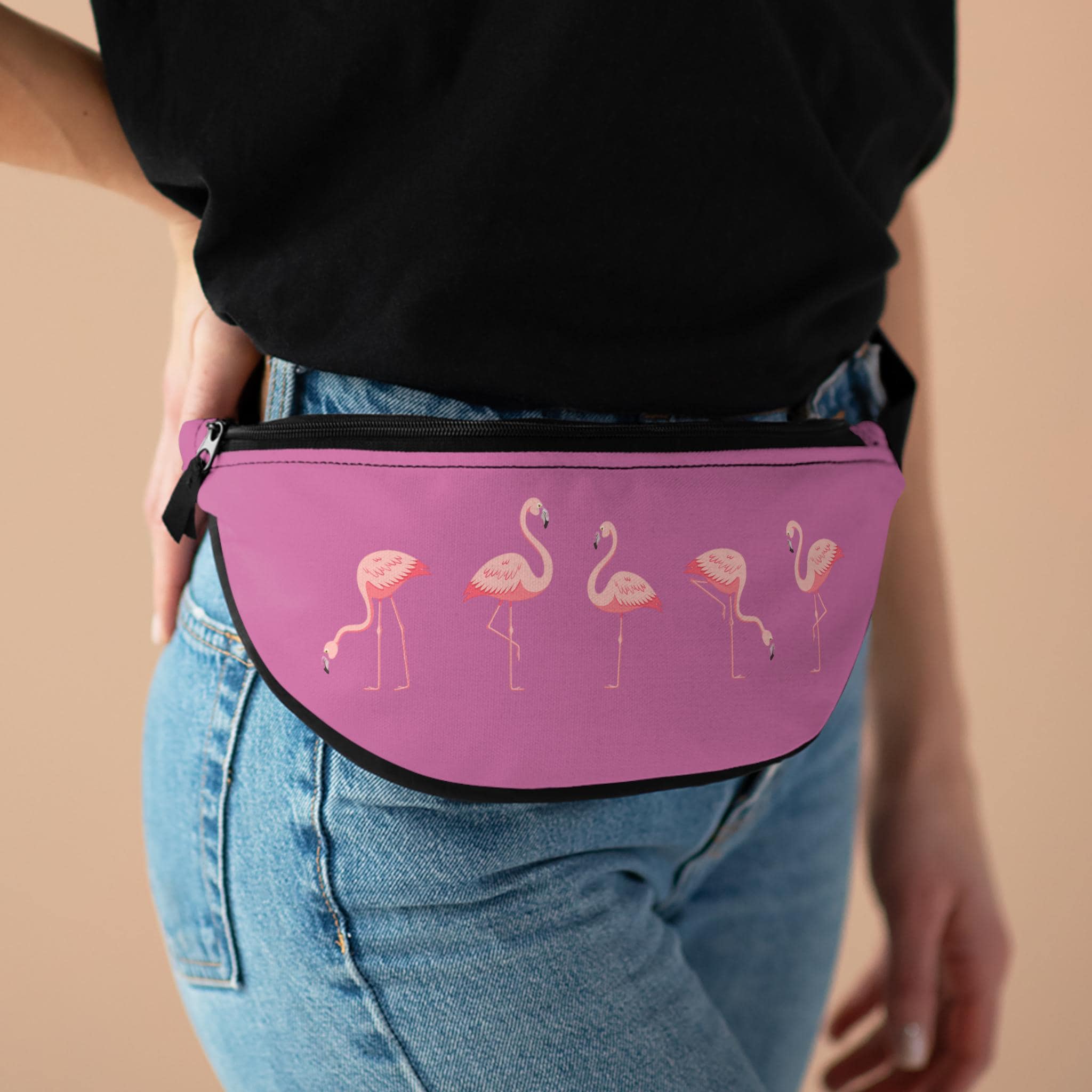 This flamingo fanny pack is perfect for the fun-loving traveler with its vibrant pink flamingo design. It adds a playful touch to any outfit and is ideal for carrying essentials while on the go. A great accessory for beach vacations, music festivals, and outdoor adventures.