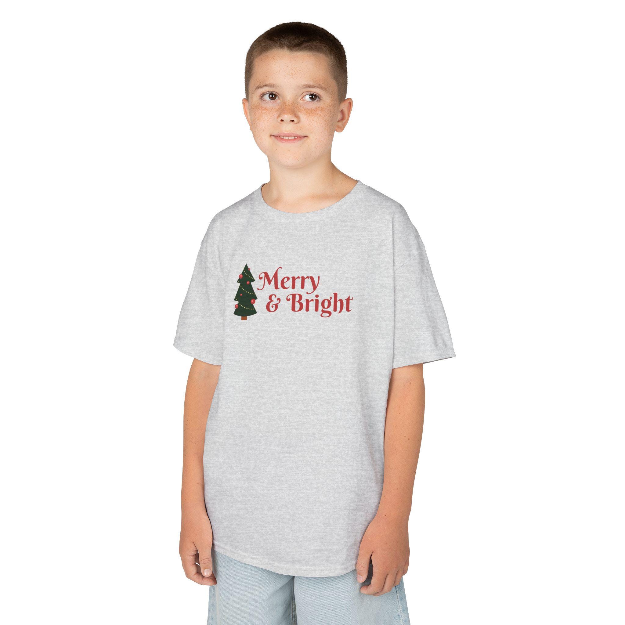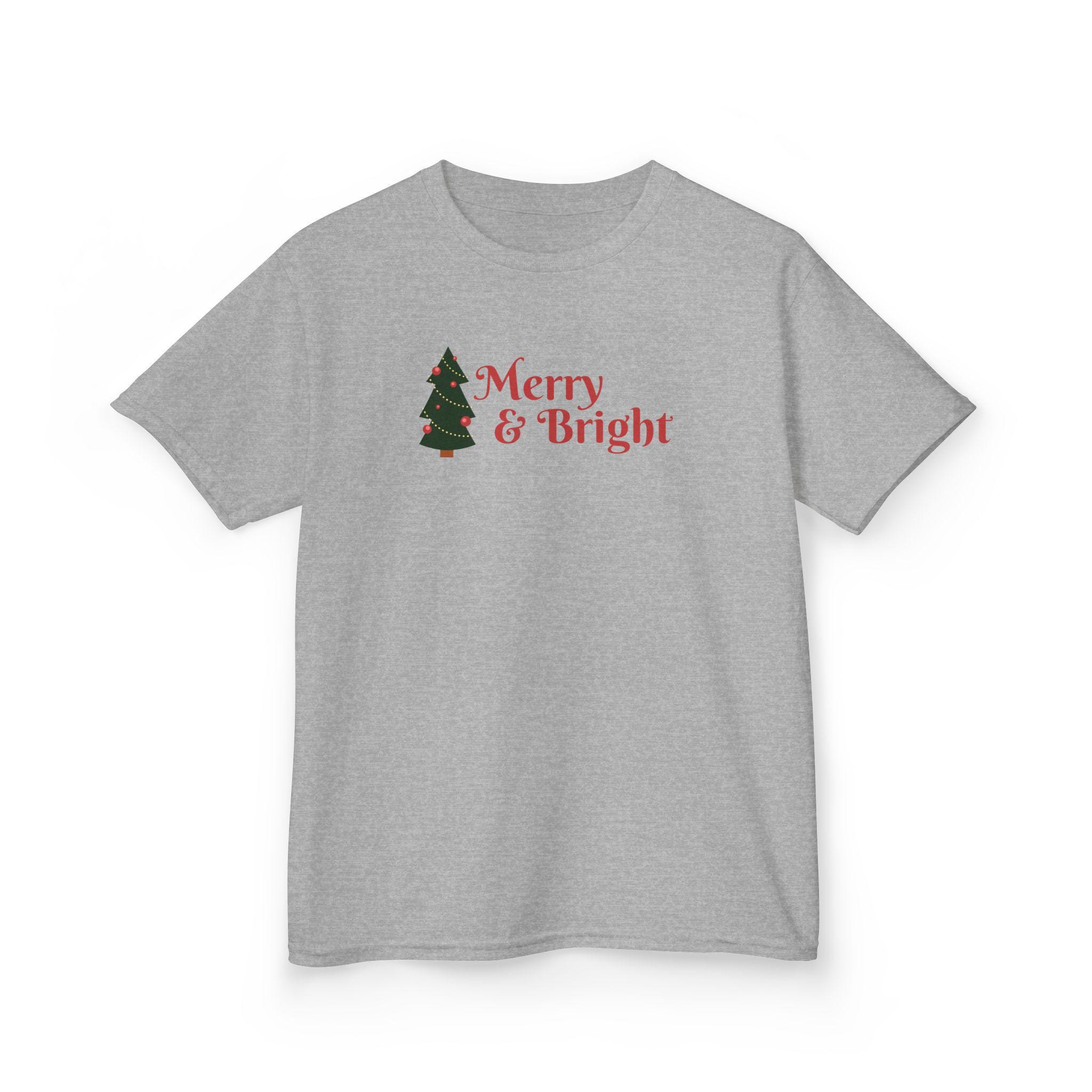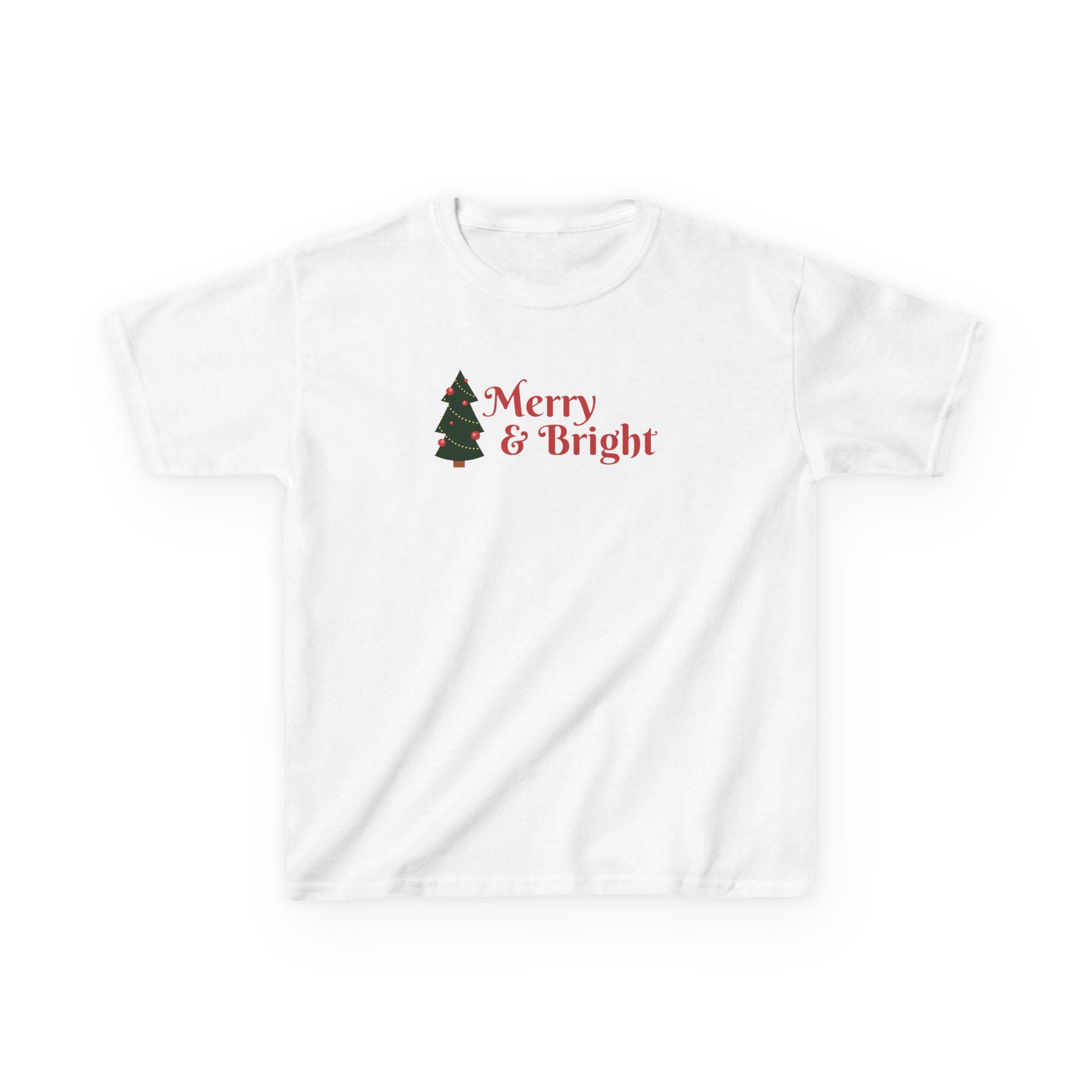 This festive Kids Tee with Merry and Bright Festive Design is the perfect holiday shirt for children. It adds a cute touch to any holiday party or gathering, making it a winter wardrobe essential for young ones. Ideal for Christmas gifts and toddler celebrations.