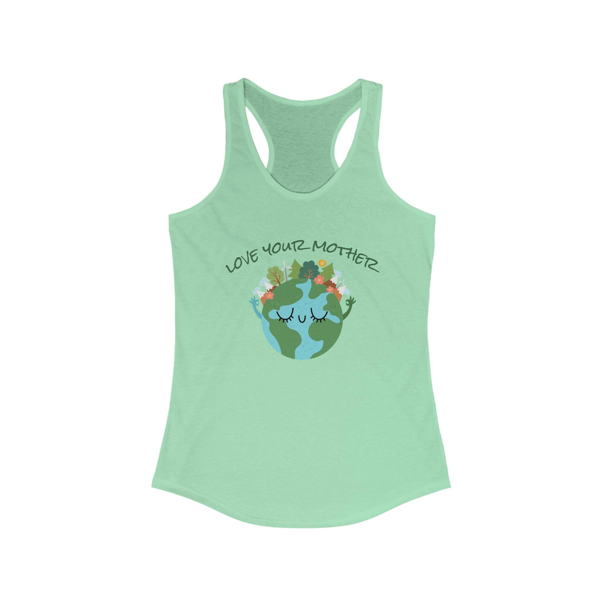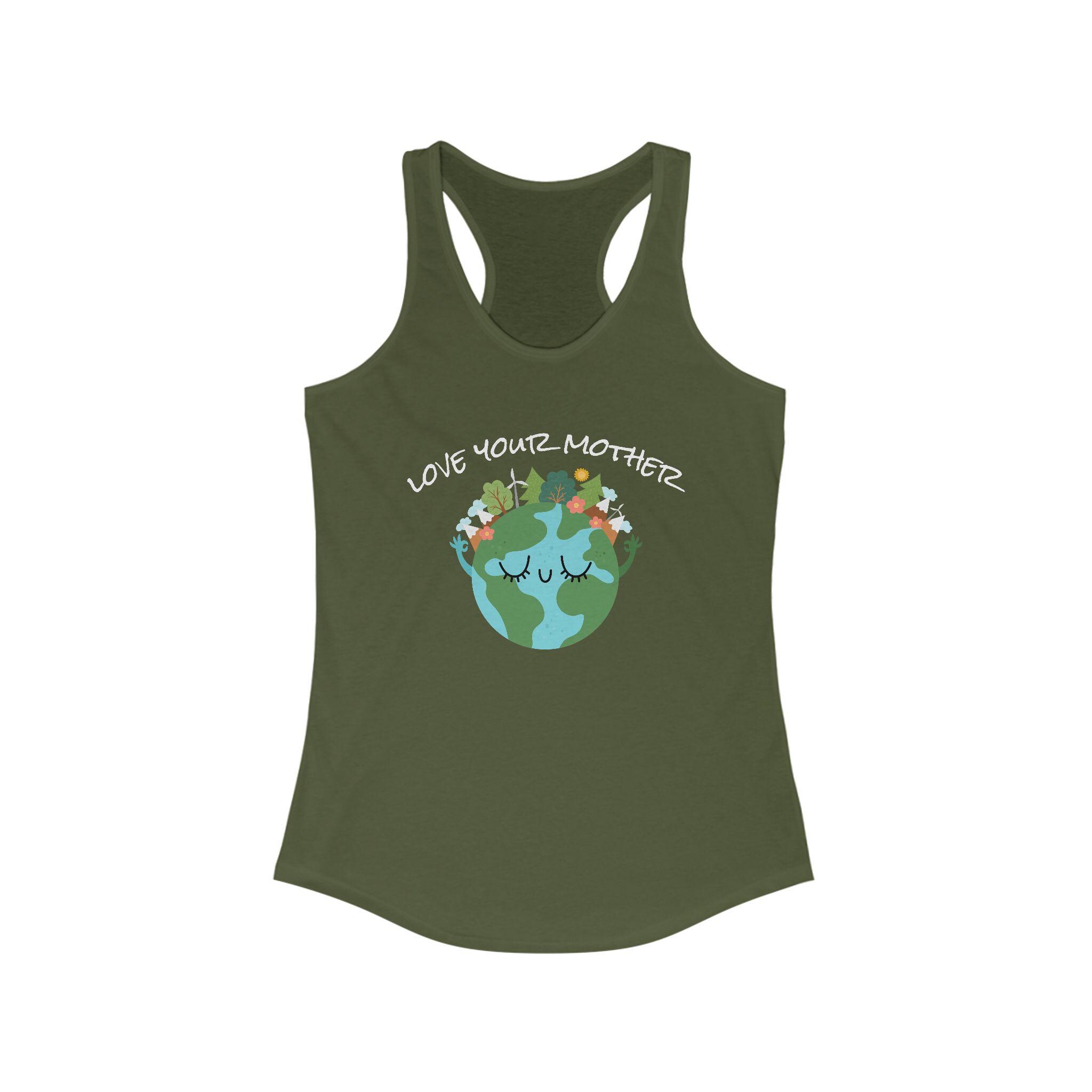 Eco-Friendly Women's Racerback Tank, Love Your Mother Shirt, Earth Day Apparel, Nature Lover Gift, Sustainable Fashion