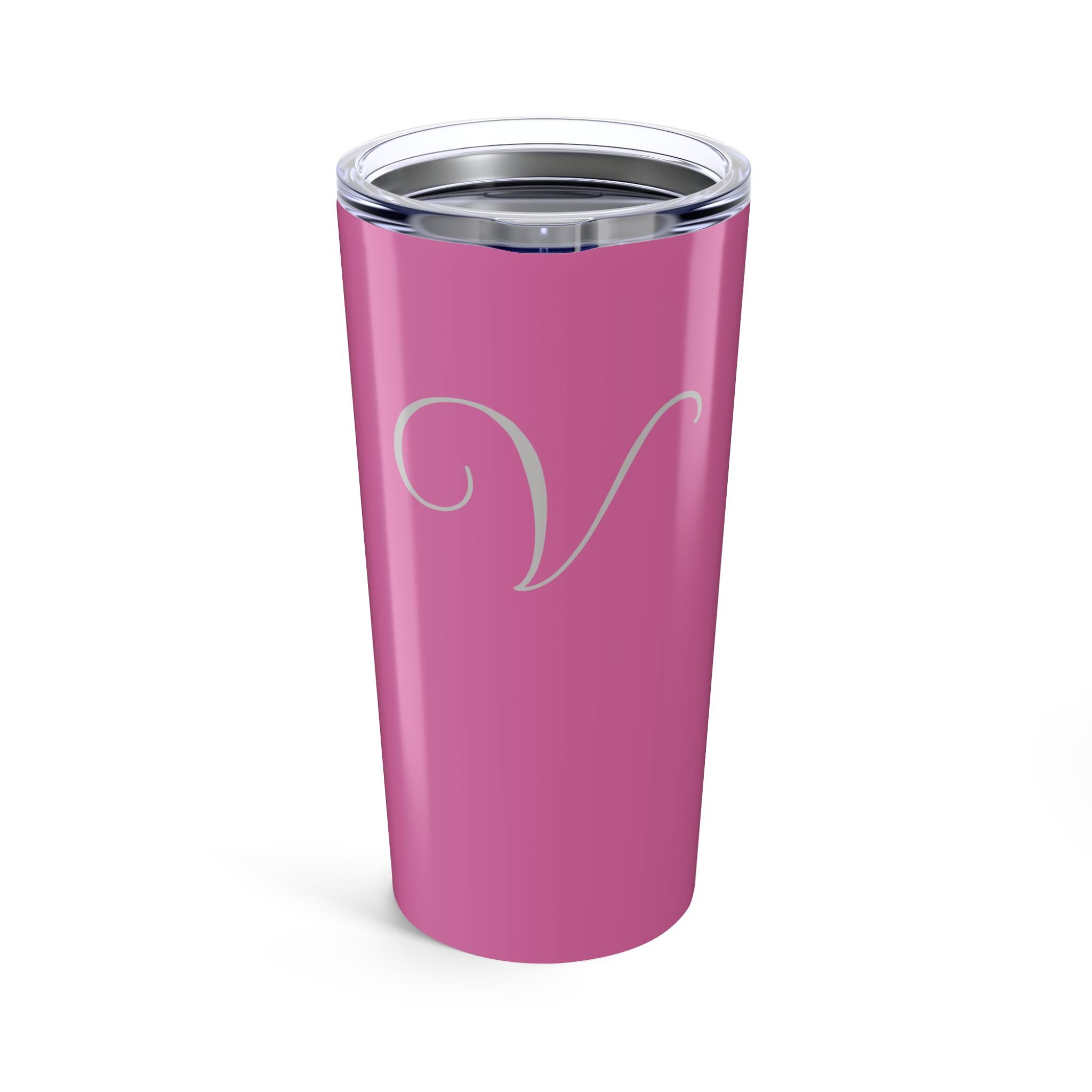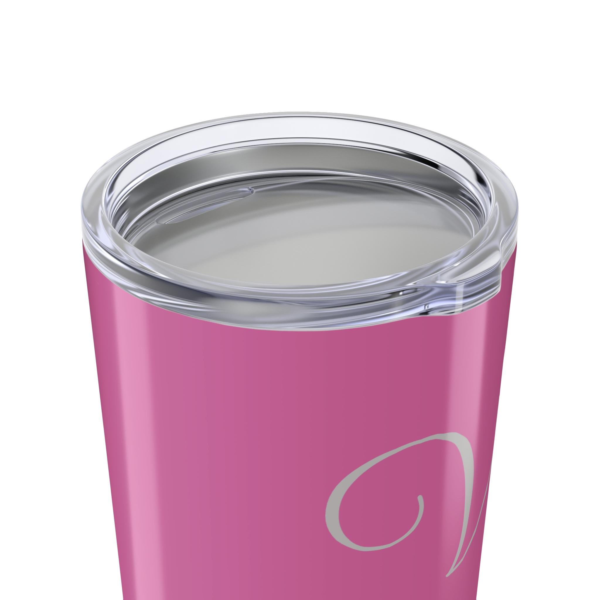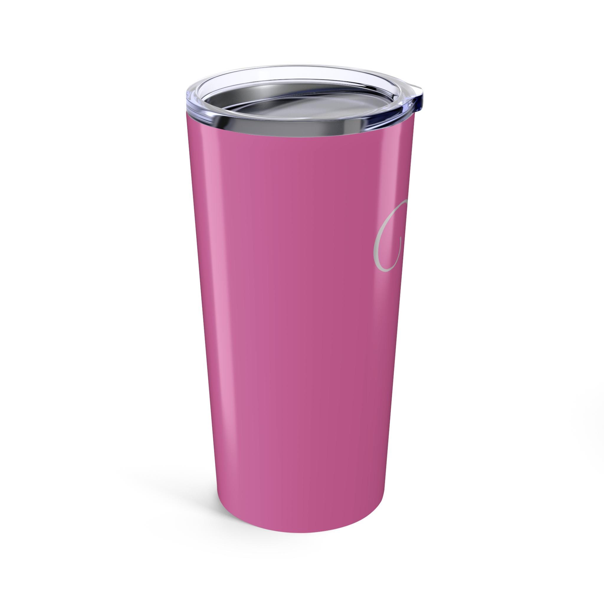 Stay hydrated in style with this Personalized Pink Tumbler 20oz. The custom travel mug is perfect for women and makes a great monogrammed gift for birthdays or bridal parties. Whether you're sipping on a hot coffee or a cold drink, this tumbler's double wall interior provides an excellent seal to keep your beverages at the perfect temperature. Dishwasher-safe for easy cleaning, this tumbler features a glossy finish and a durable stainless steel body with a clear push on lid.