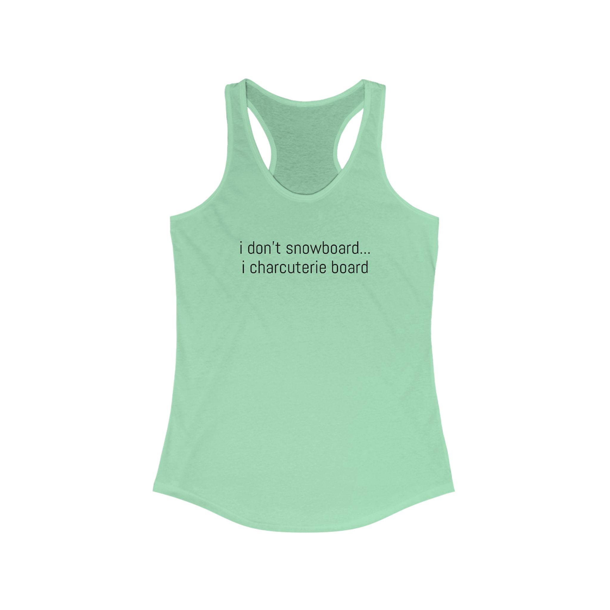 This Charcuterie Board Tank is a funny and unique racerback tank perfect for summer and casual wear. It makes a great gift for foodies and is ideal for holiday apparel. The tank's lightweight fabric and classic fit make it a comfortable choice for daily activities.