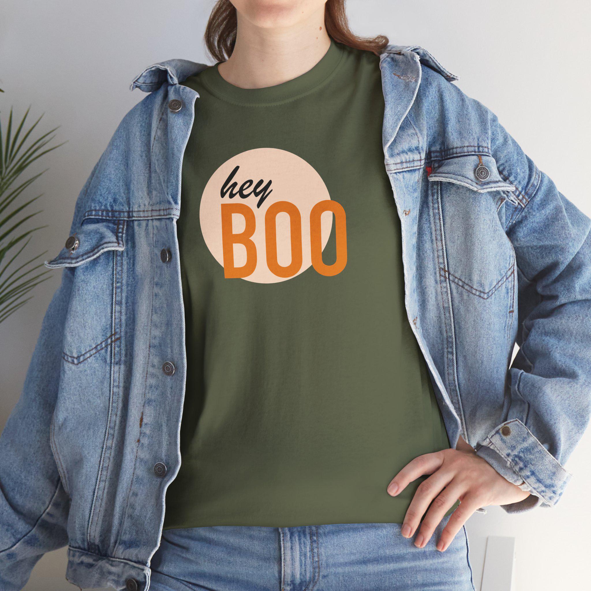 This comfortable Unisex Heavy Cotton Tee is designed to bring a touch of fun and warmth into your wardrobe. The playful "hey BOO" design offers a lighthearted vibe, perfect for casual outings, cozy gatherings, or laid-back home days. Its classic fit and soft fabric make it ideal for any season, enhancing your casual style effortlessly. Great for those who enjoy expressing their playful side, this tee is perfect for Halloween celebrations, casual get-togethers, or as a thoughtful gift to friends and family. Whether you're dressing up for a spooky occasion or just looking for a versatile tee to wear year-round, this shirt fits seamlessly into your life.