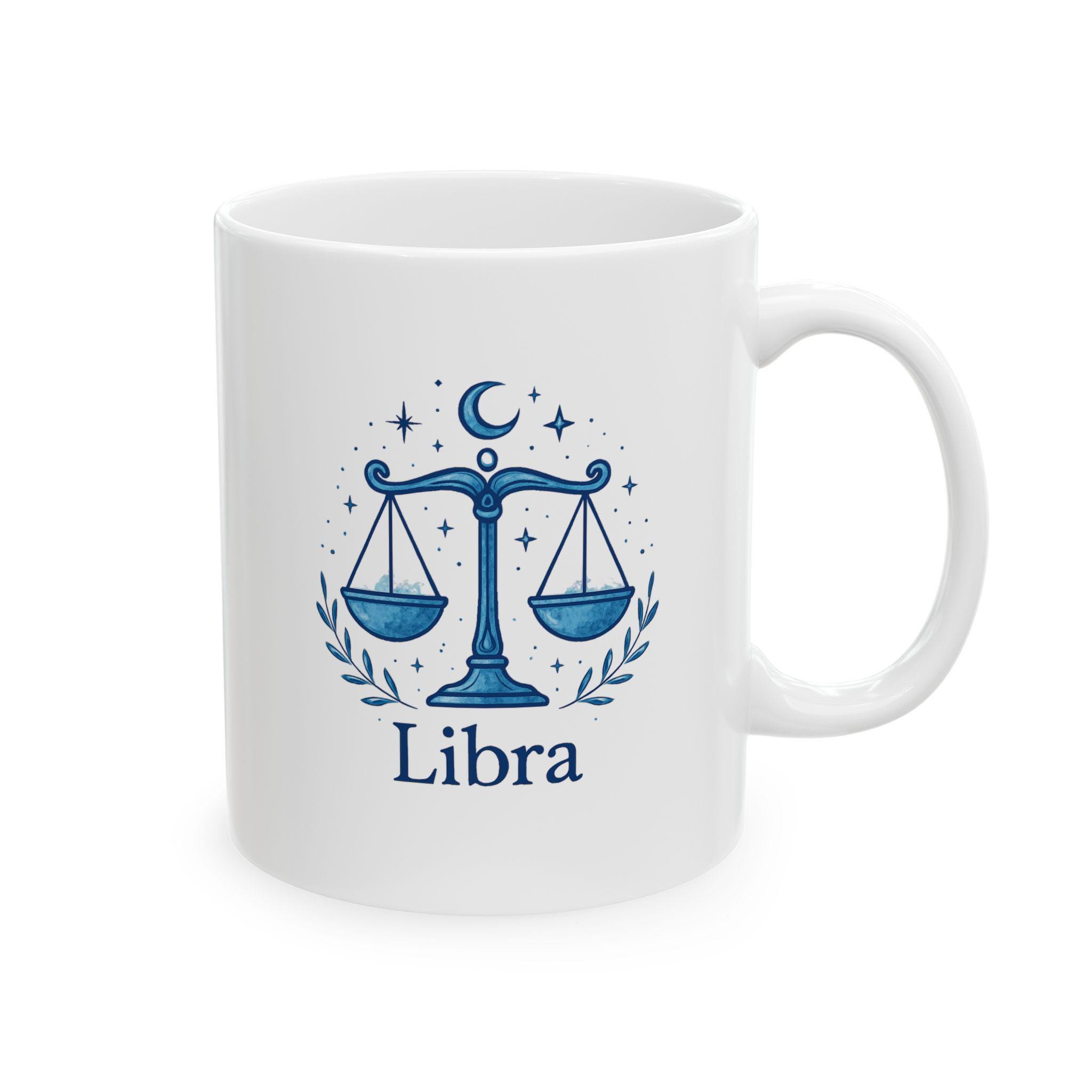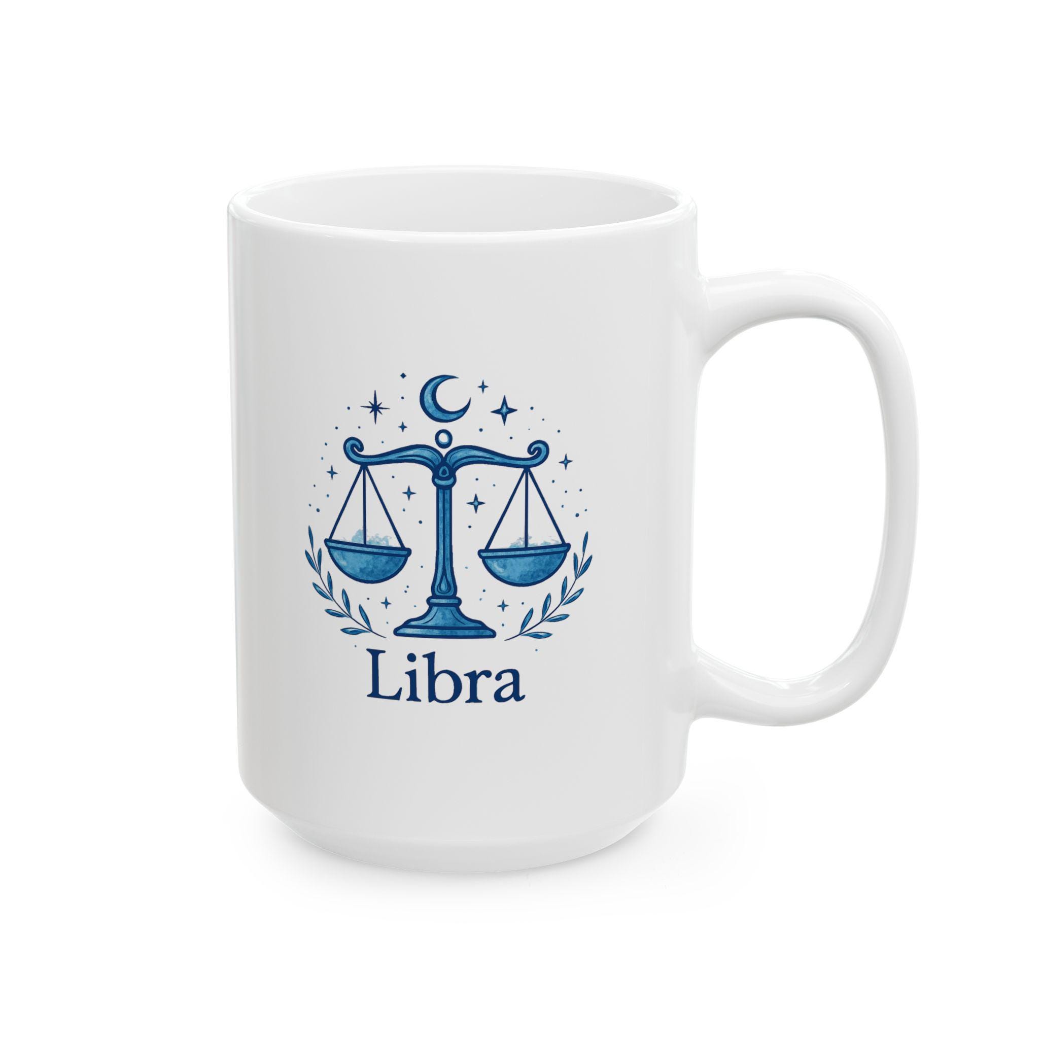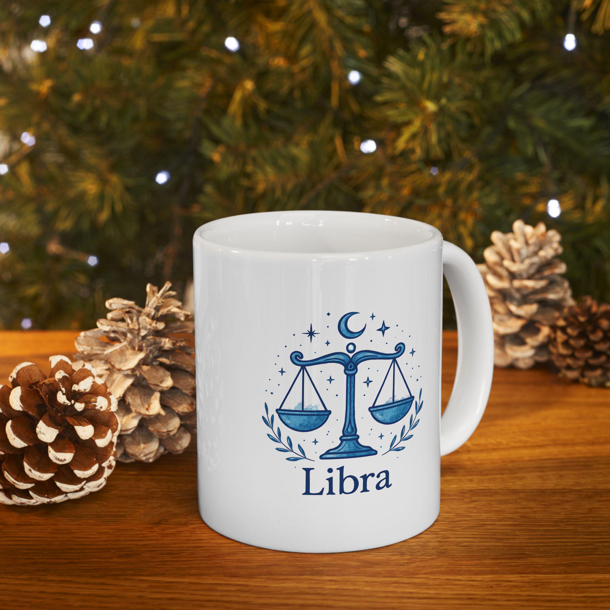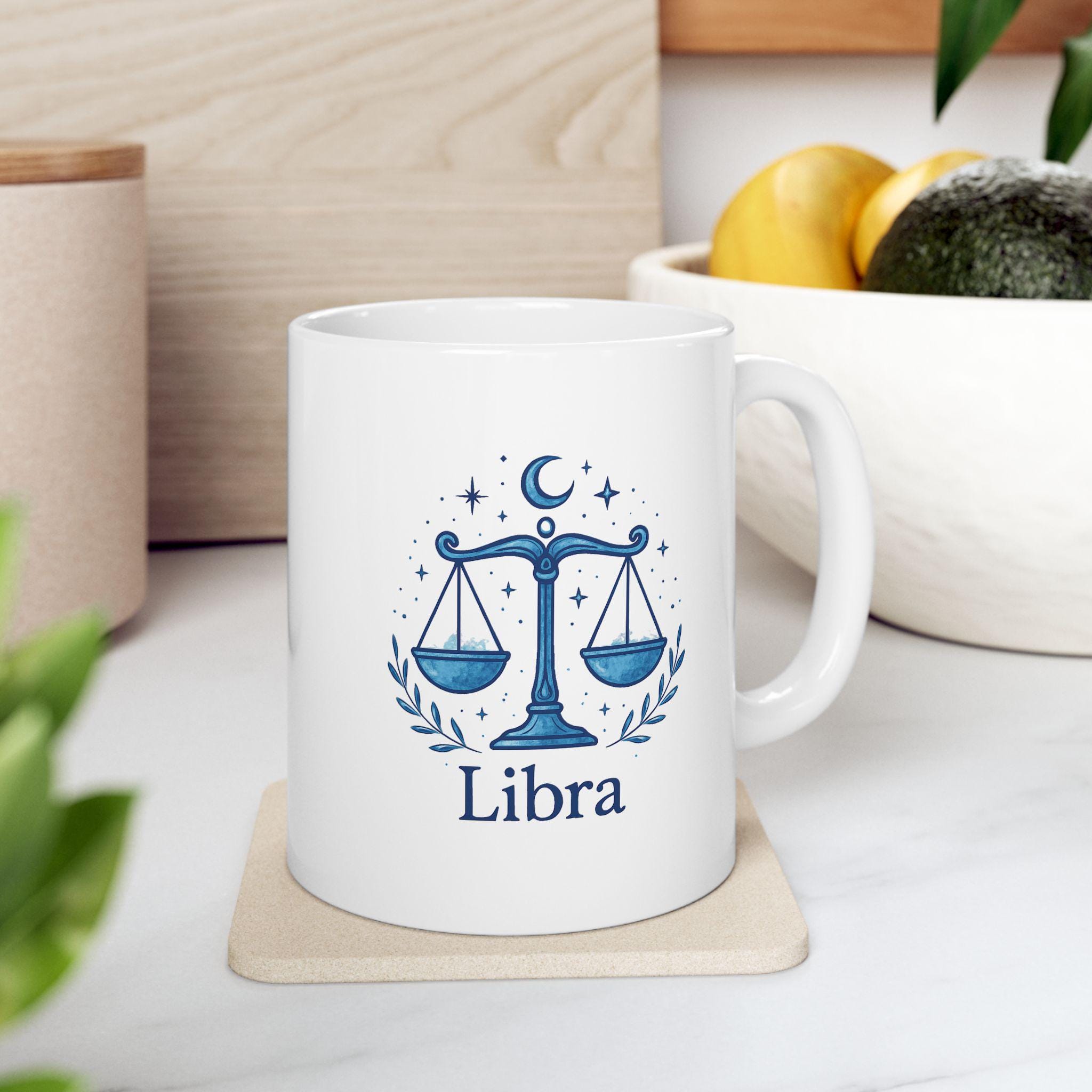 Elegant Libra Zodiac ceramic mug perfect for nature lovers. Custom drinkware for coffee and tea, adding a unique touch to your home decor. Ideal as a gift for someone who values astrology and earthy vibes. Relevant for birthdays, astrology themed parties, or any occasion.