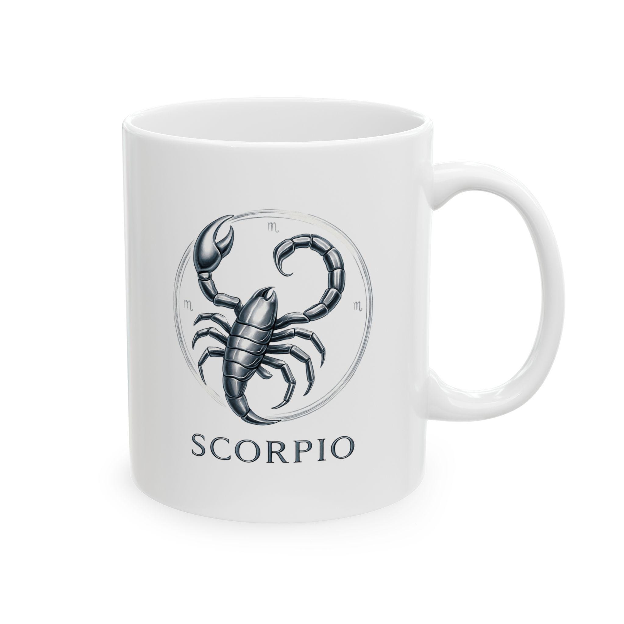 Elegant Scorpio Zodiac ceramic mug perfect for nature lovers. Custom drinkware for coffee and tea, adding a unique touch to your home decor. Ideal as a gift for someone who values astrology and earthy vibes. Relevant for birthdays, astrology themed parties, or any occasion.