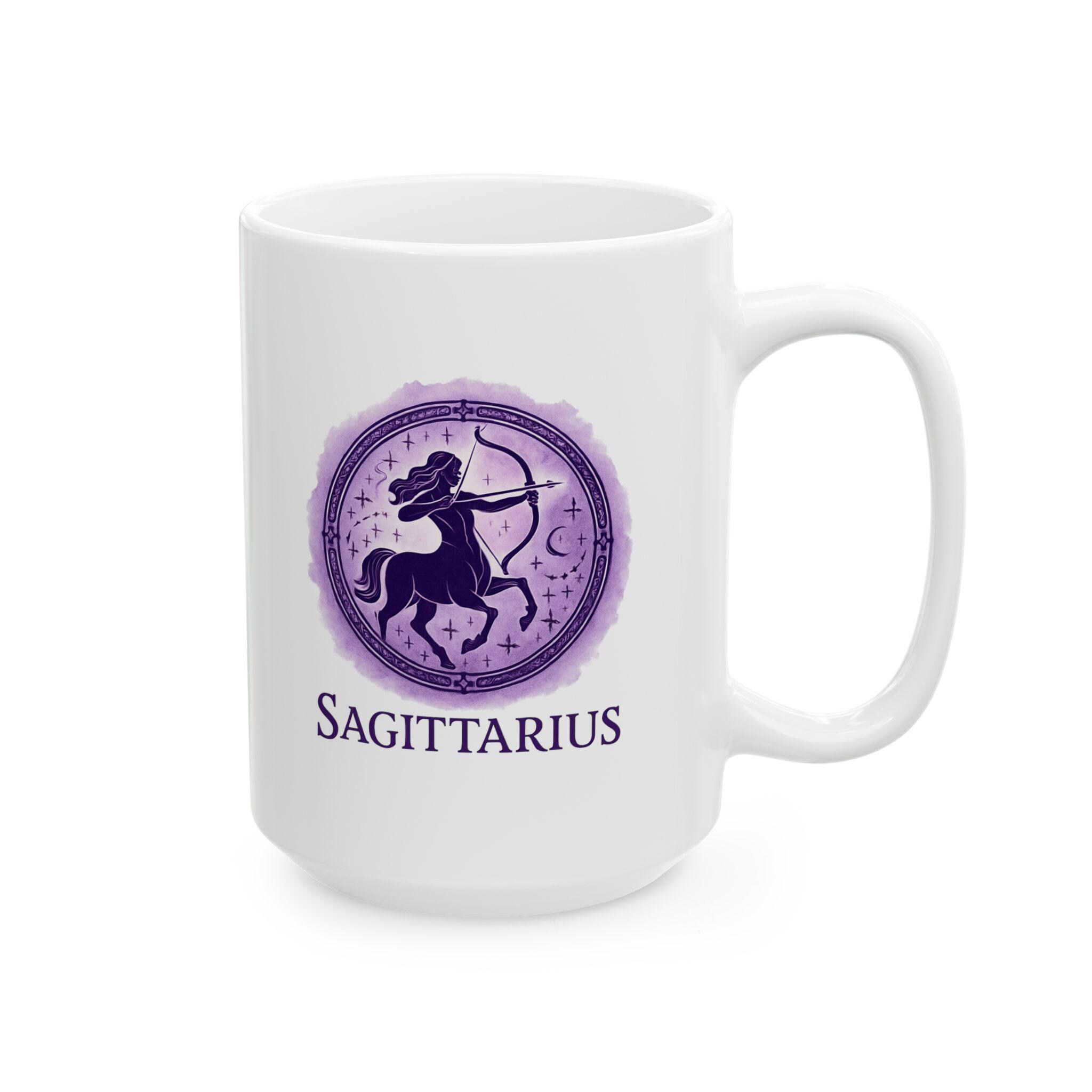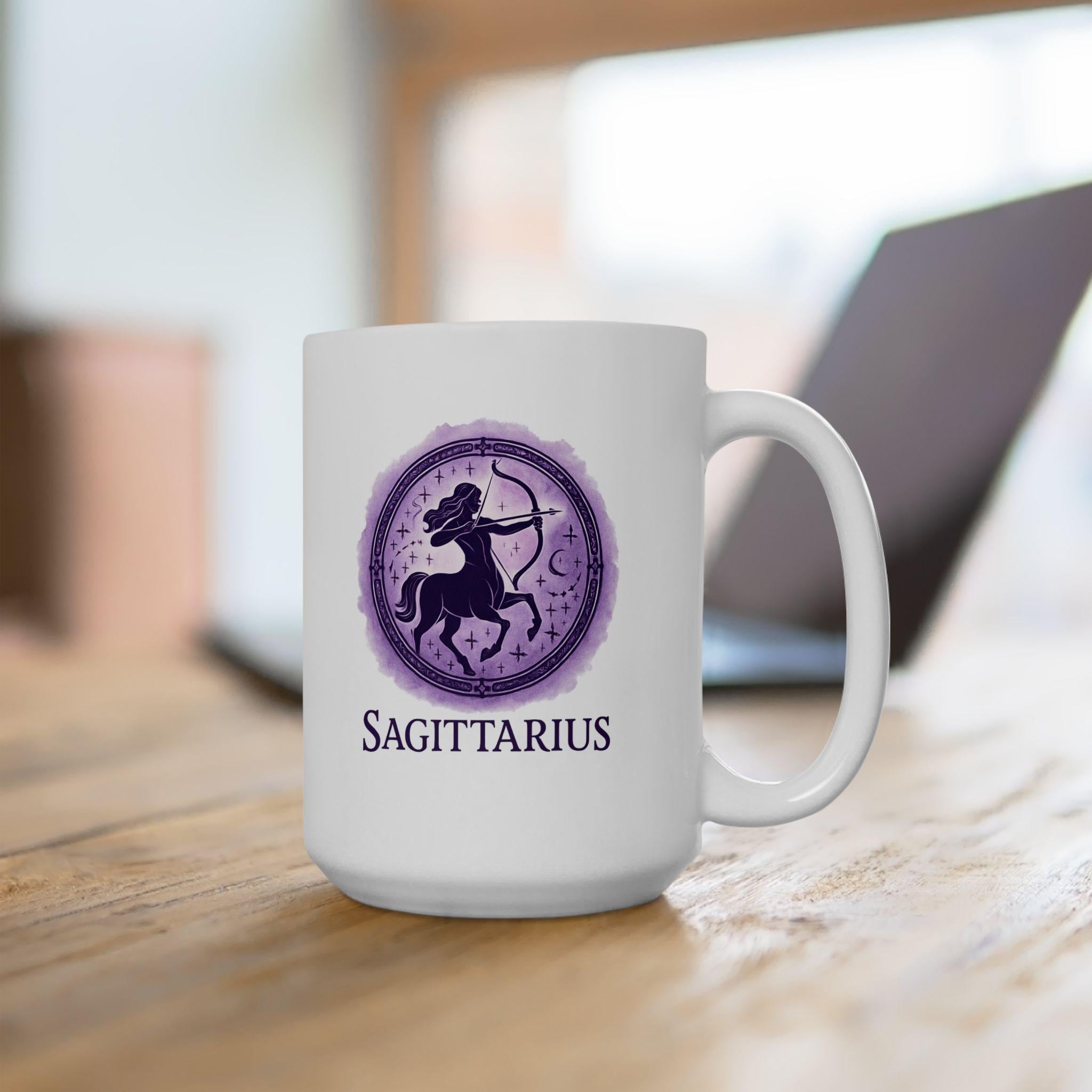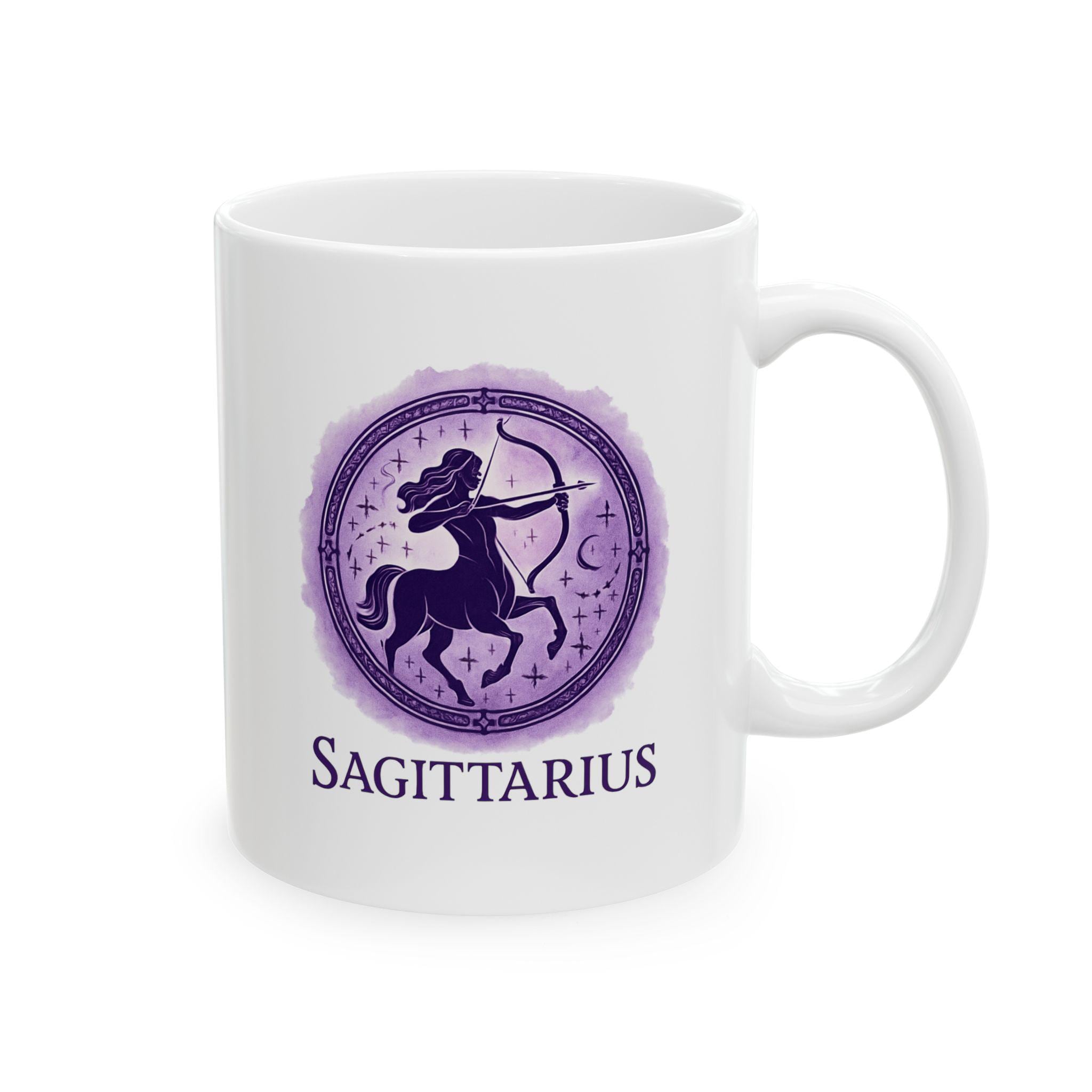 Elegant Sagittarius Zodiac ceramic mug perfect for nature lovers. Custom drinkware for coffee and tea, adding a unique touch to your home decor. Ideal as a gift for someone who values astrology and earthy vibes. Relevant for birthdays, astrology themed parties, or any occasion.