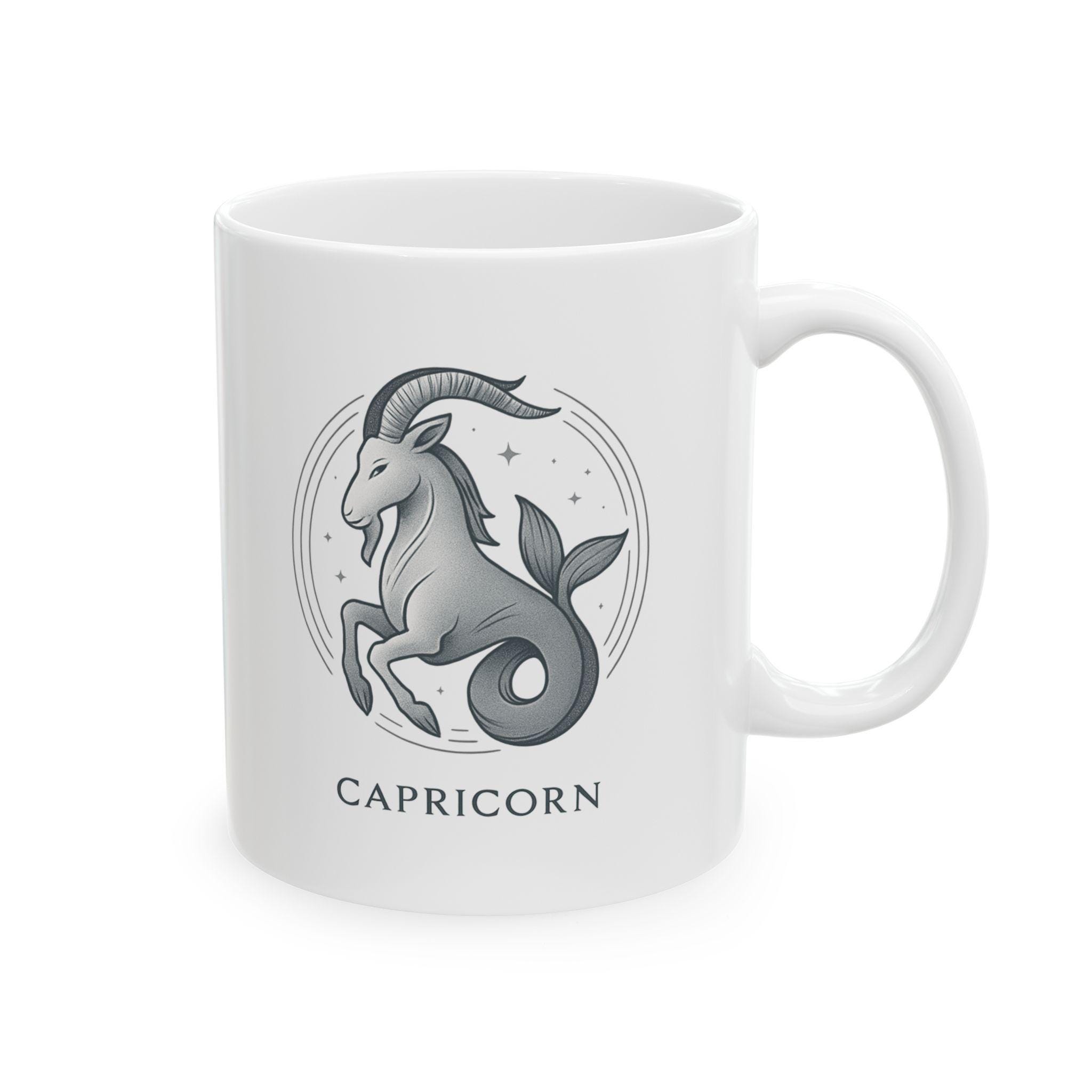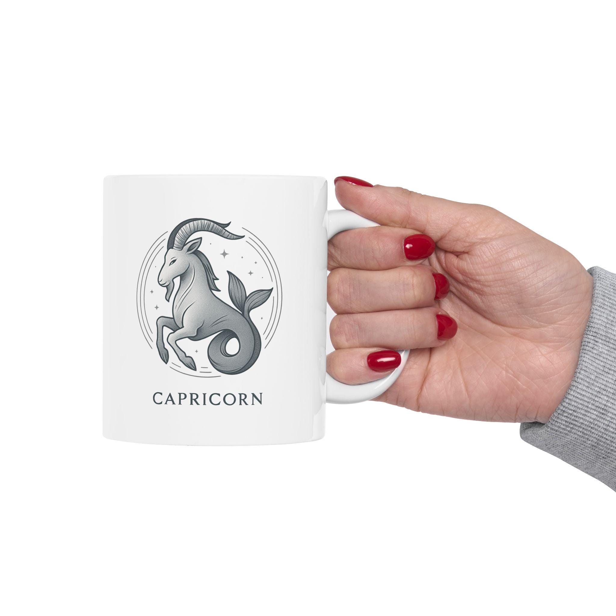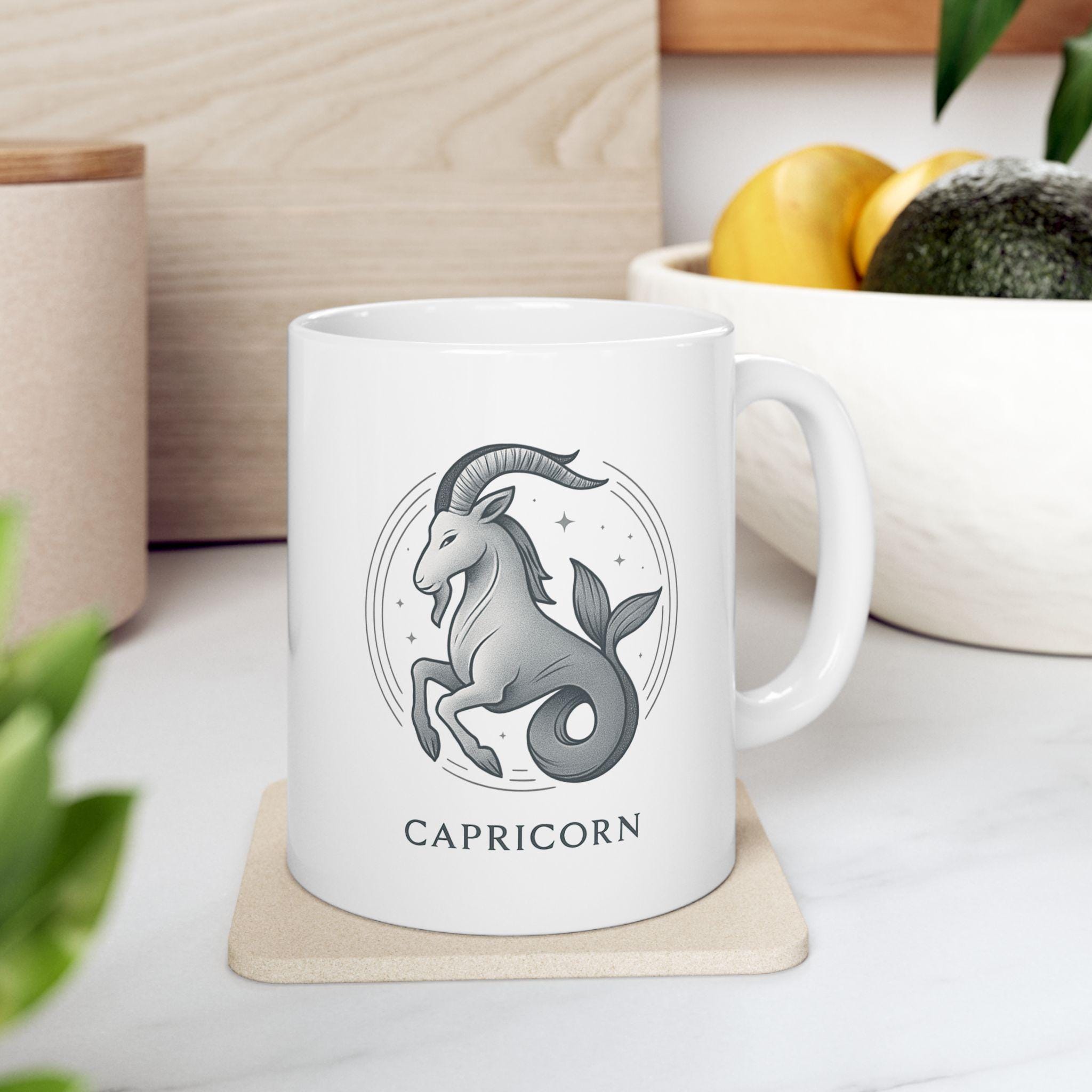 Elegant Capricorn Zodiac ceramic mug perfect for nature lovers. Custom drinkware for coffee and tea, adding a unique touch to your home decor. Ideal as a gift for someone who values astrology and earthy vibes. Relevant for birthdays, astrology themed parties, or any occasion.