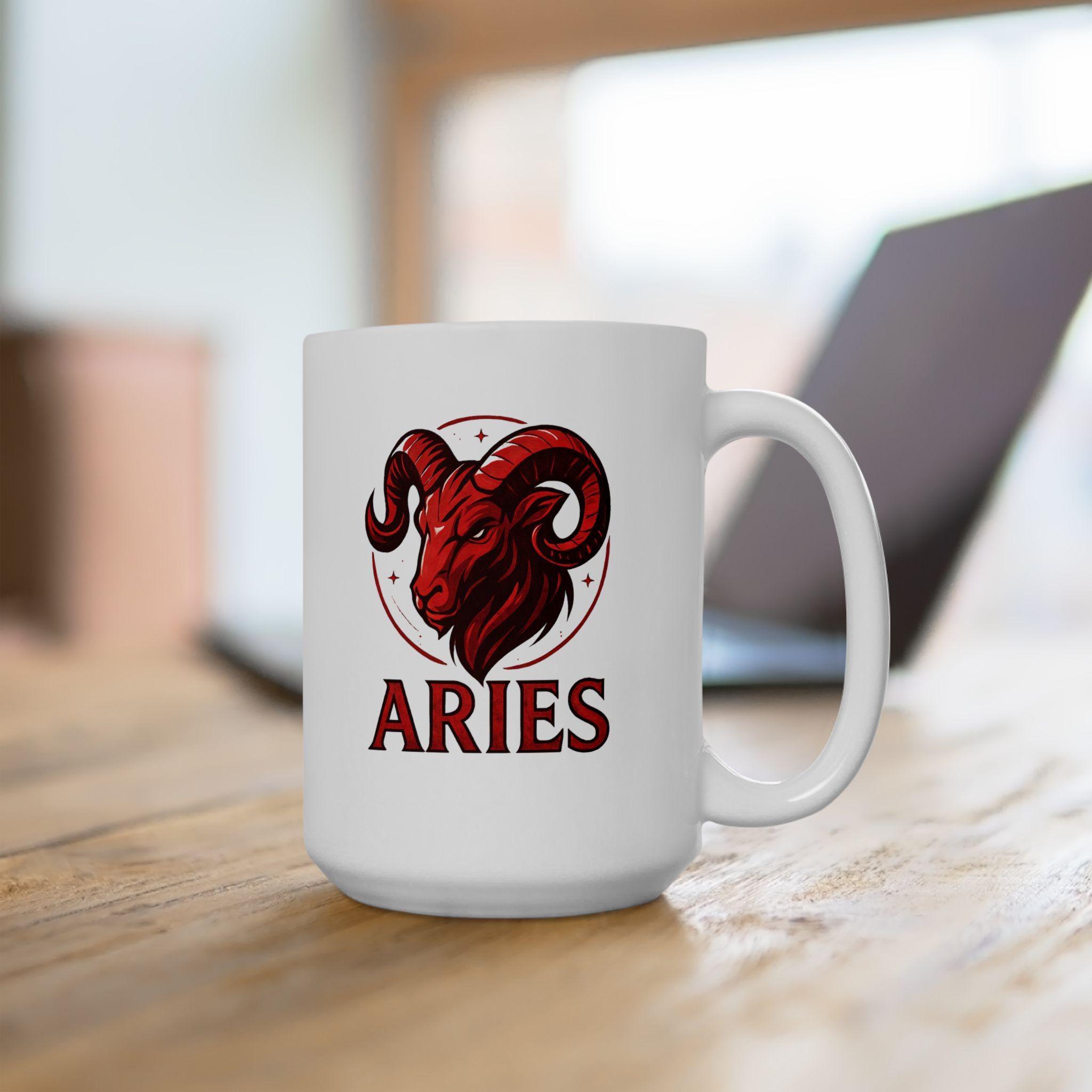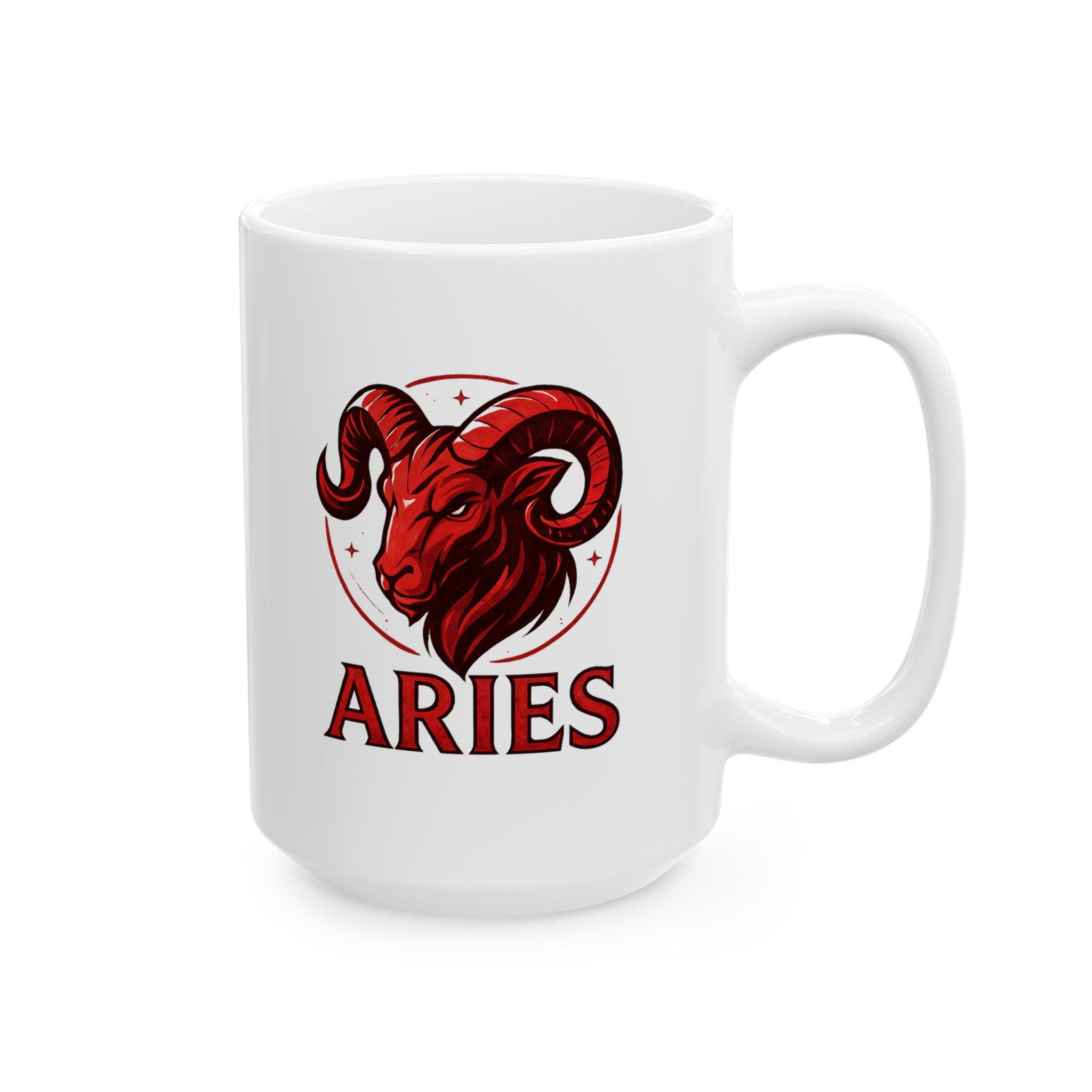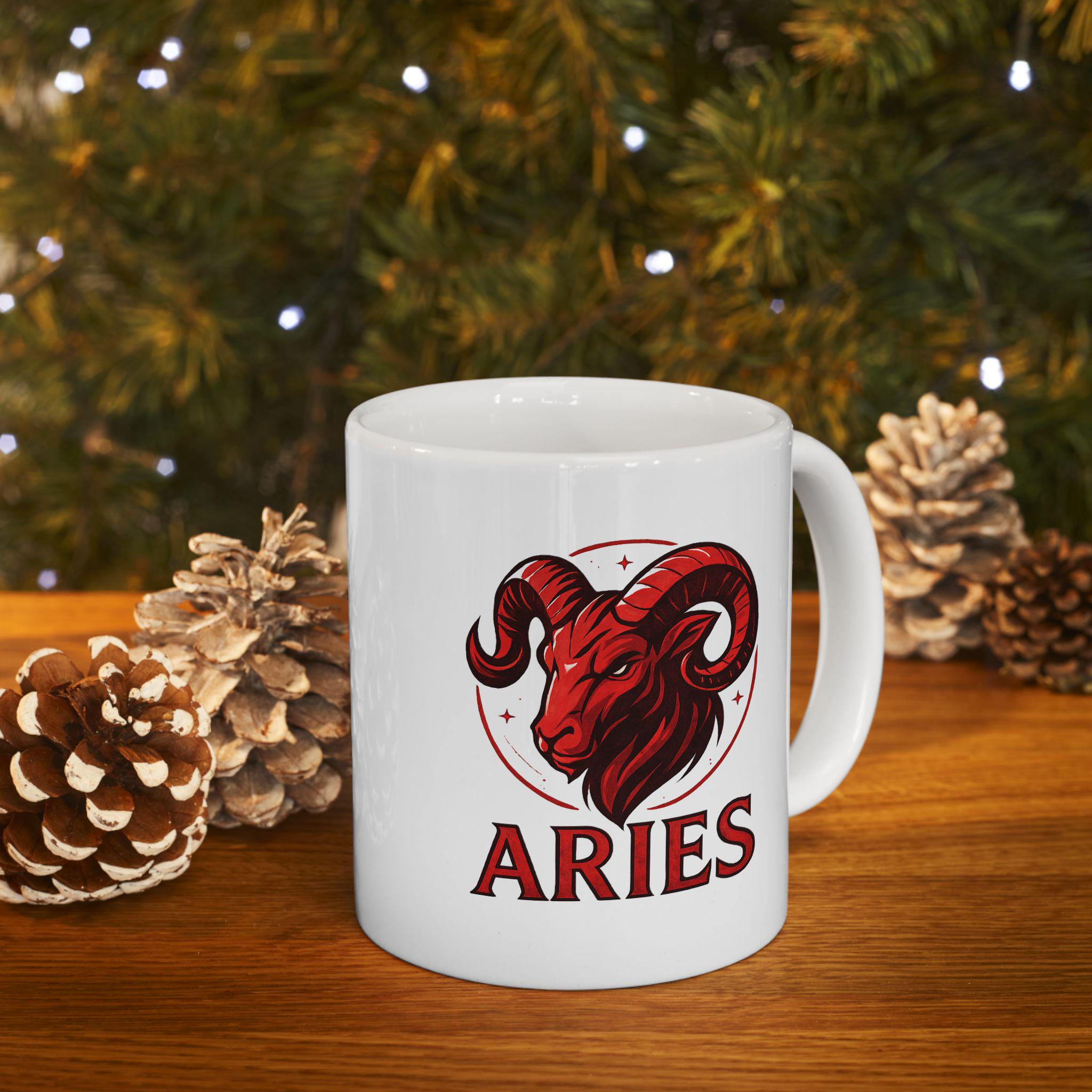 Elegant Aries Zodiac ceramic mug perfect for nature lovers. Custom drinkware for coffee and tea, adding a unique touch to your home decor. Ideal as a gift for someone who values astrology and earthy vibes. Relevant for birthdays, astrology themed parties, or any occasion.