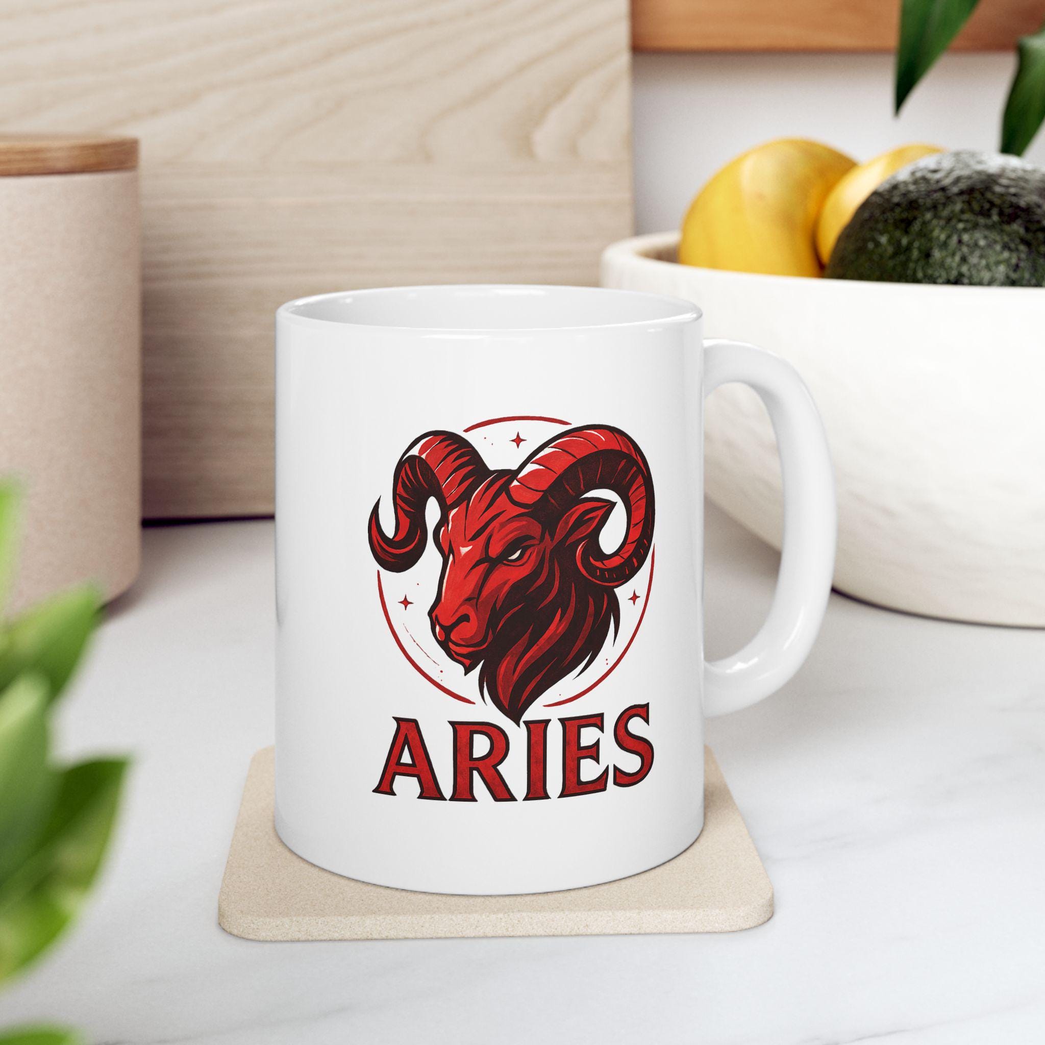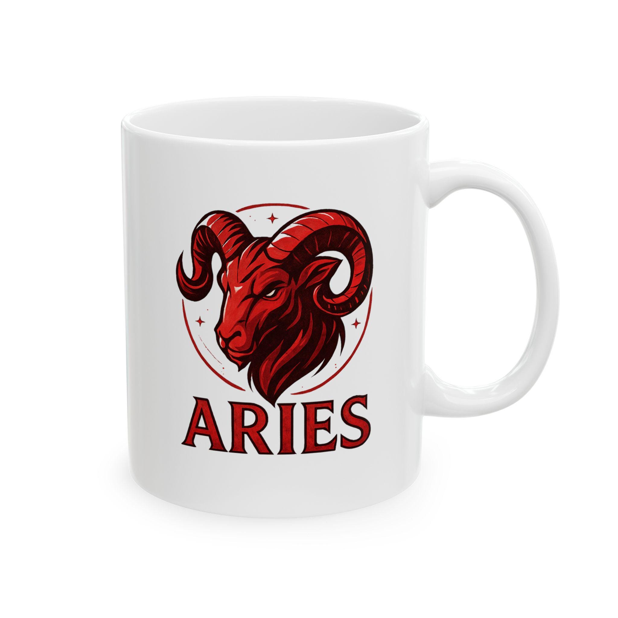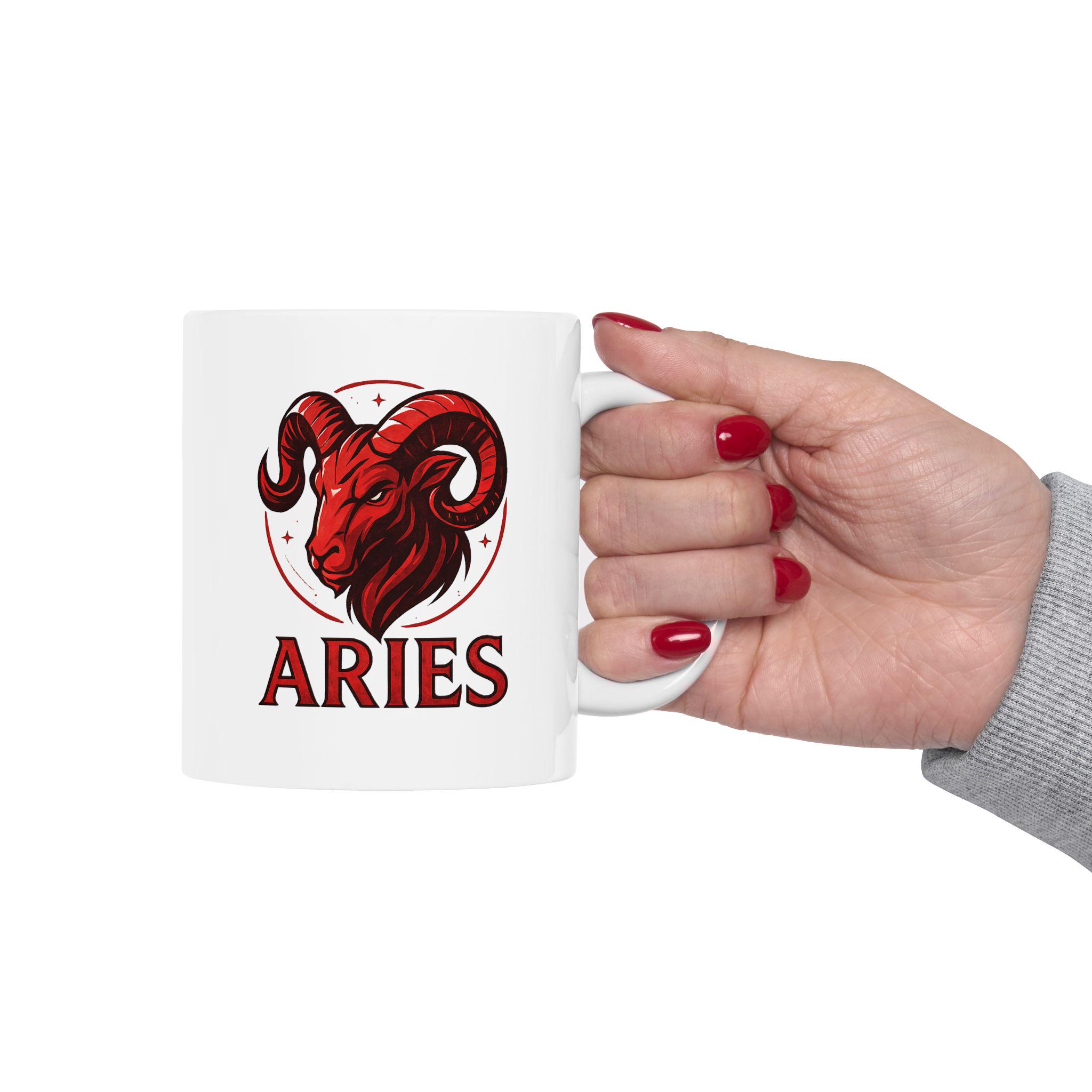 Elegant Aries Zodiac ceramic mug perfect for nature lovers. Custom drinkware for coffee and tea, adding a unique touch to your home decor. Ideal as a gift for someone who values astrology and earthy vibes. Relevant for birthdays, astrology themed parties, or any occasion.
