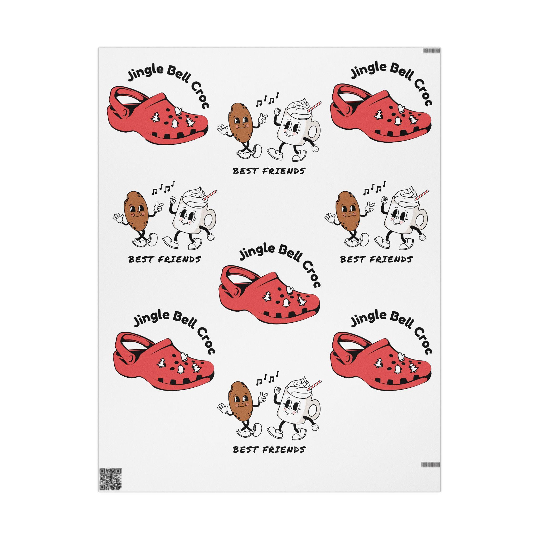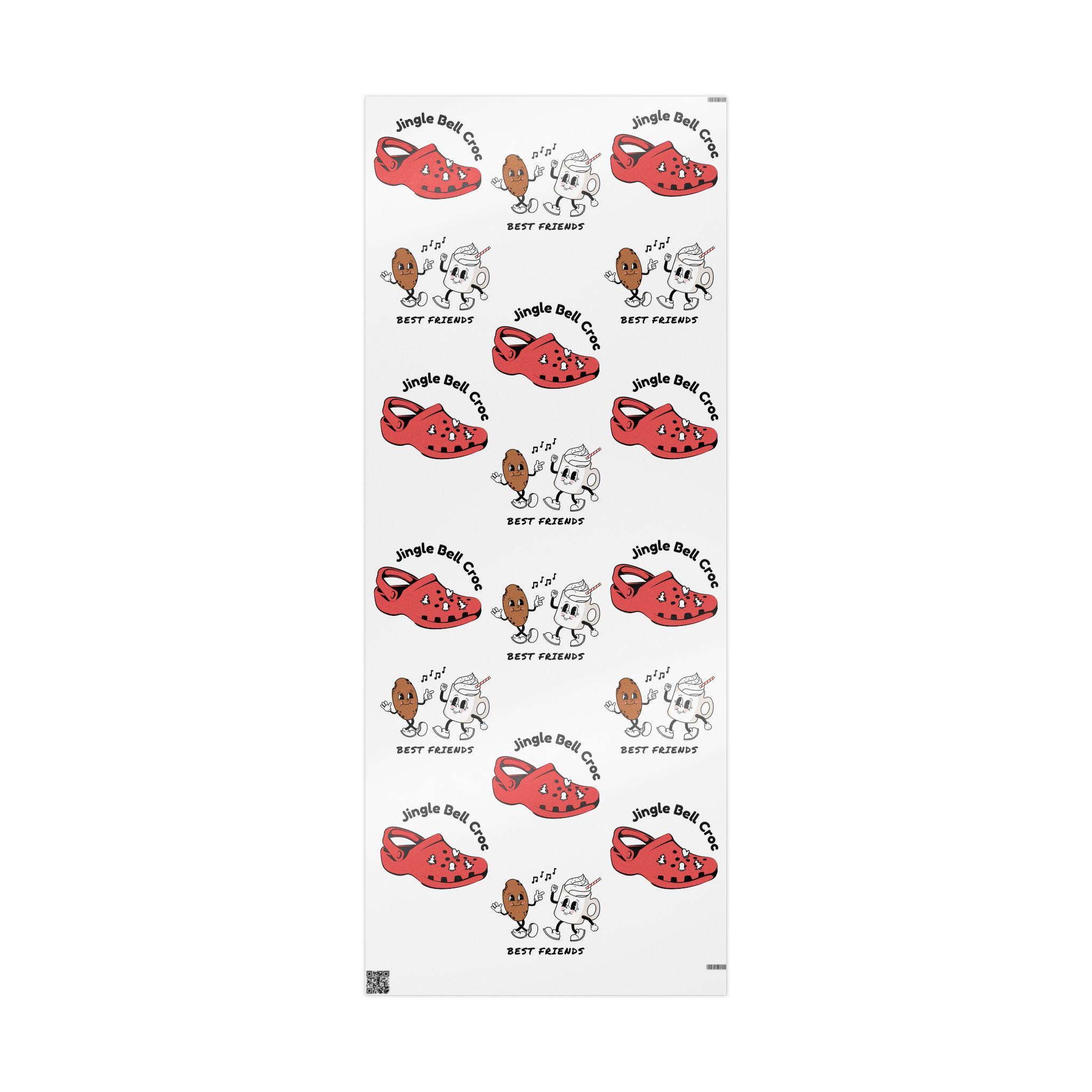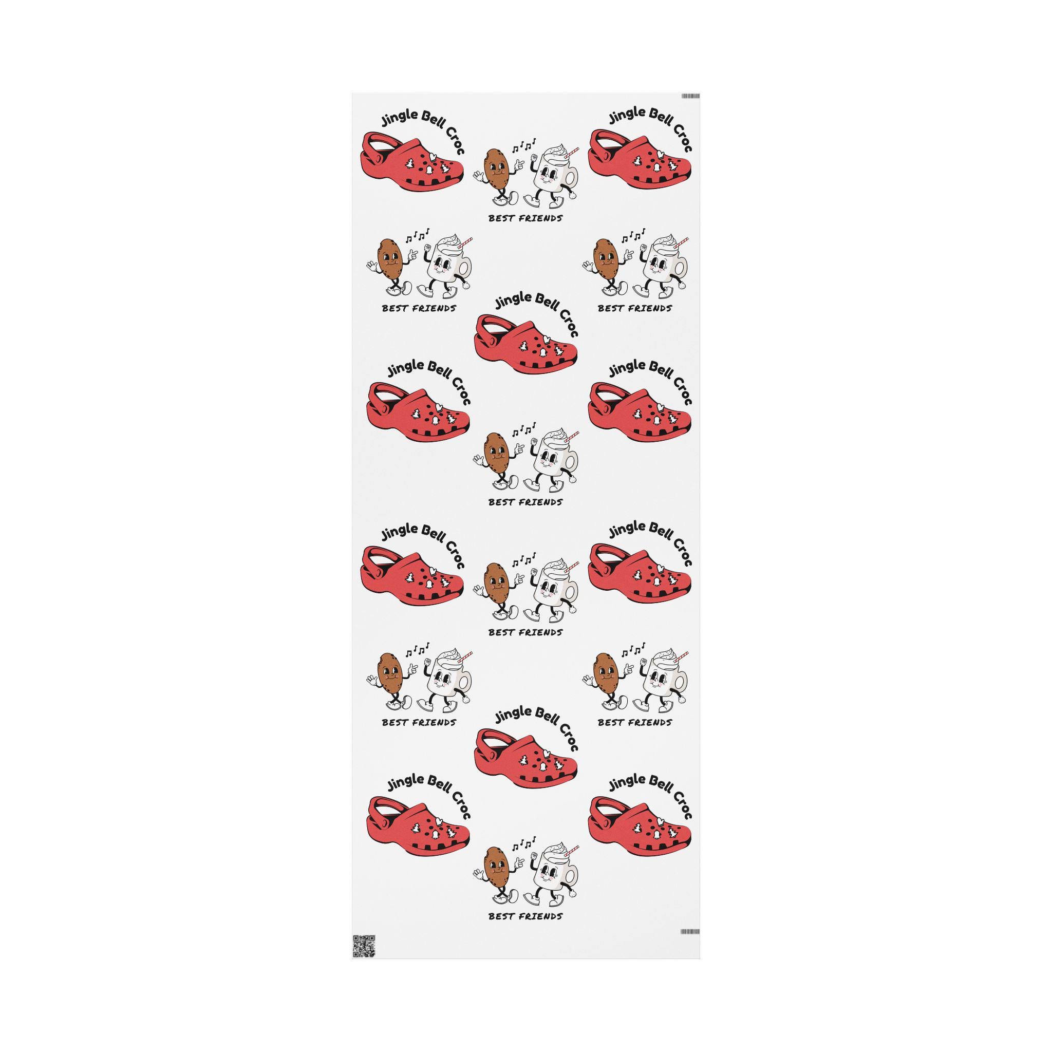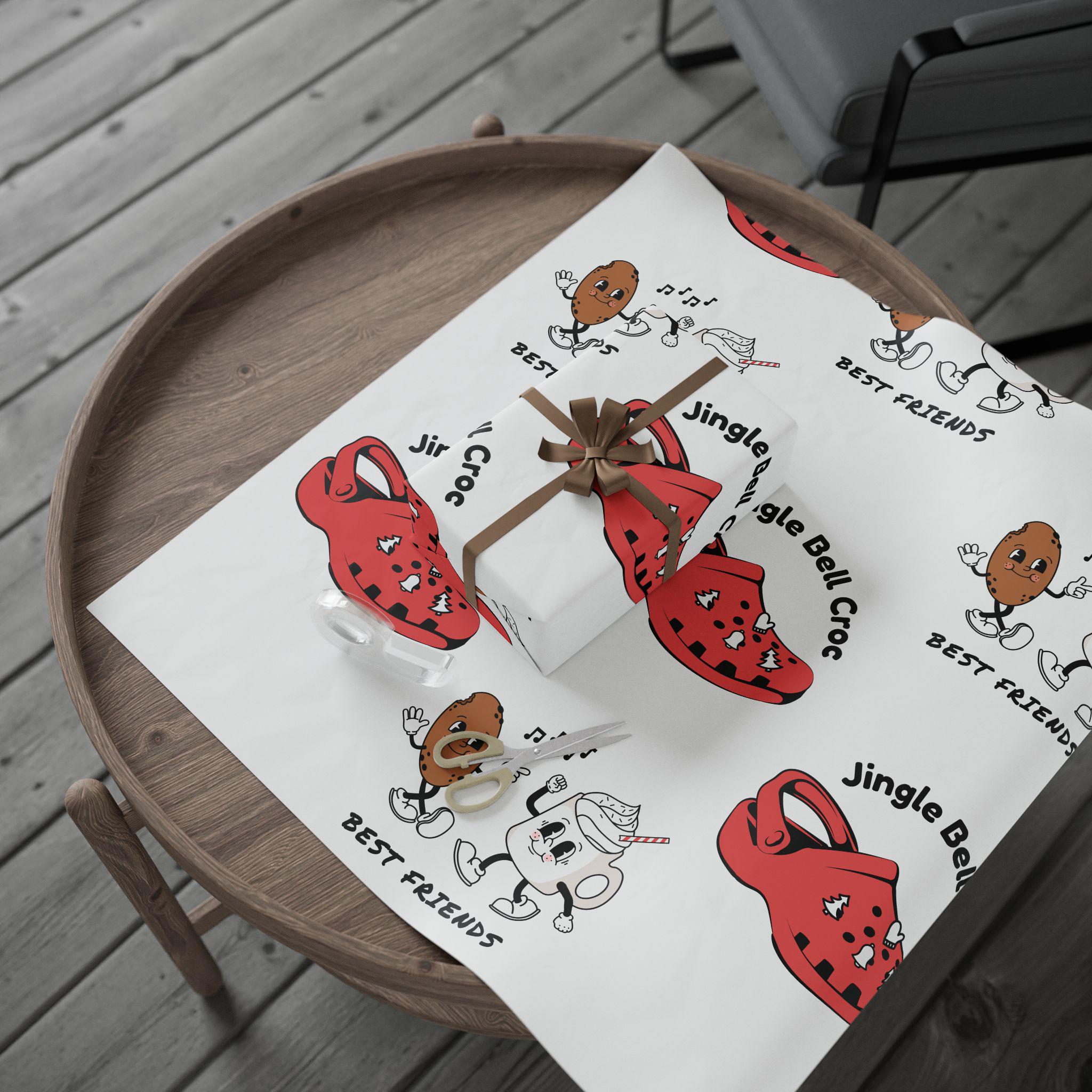 This humorous and cheerful holiday wrapping paper features a Jingle Bell Croc with Cookies and Hot Cocoa design, perfect for adding a fun touch to your gifts during the holiday season. It can bring a festive vibe to your gift-giving and is ideal for anyone looking to add some humor to their presents. Perfect for Christmas celebrations and gift-giving occasions.