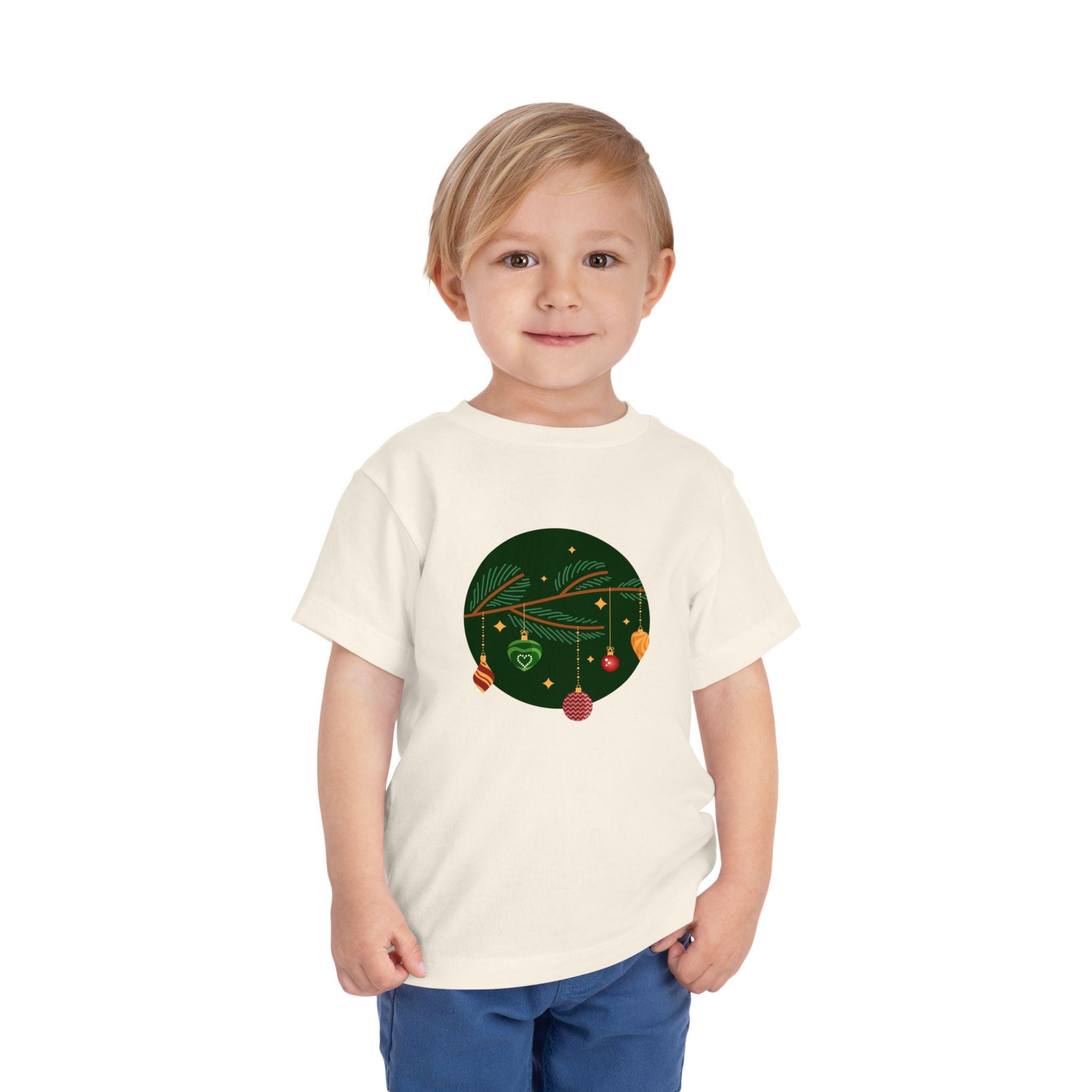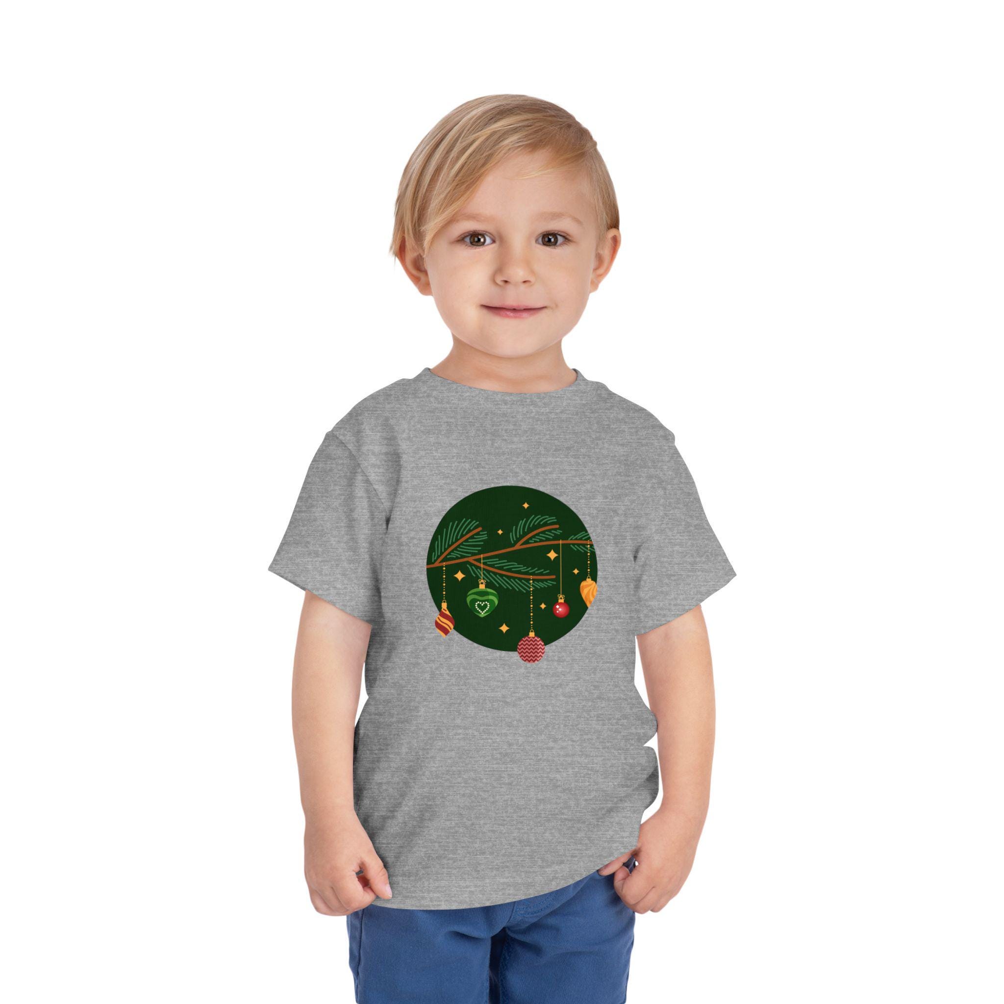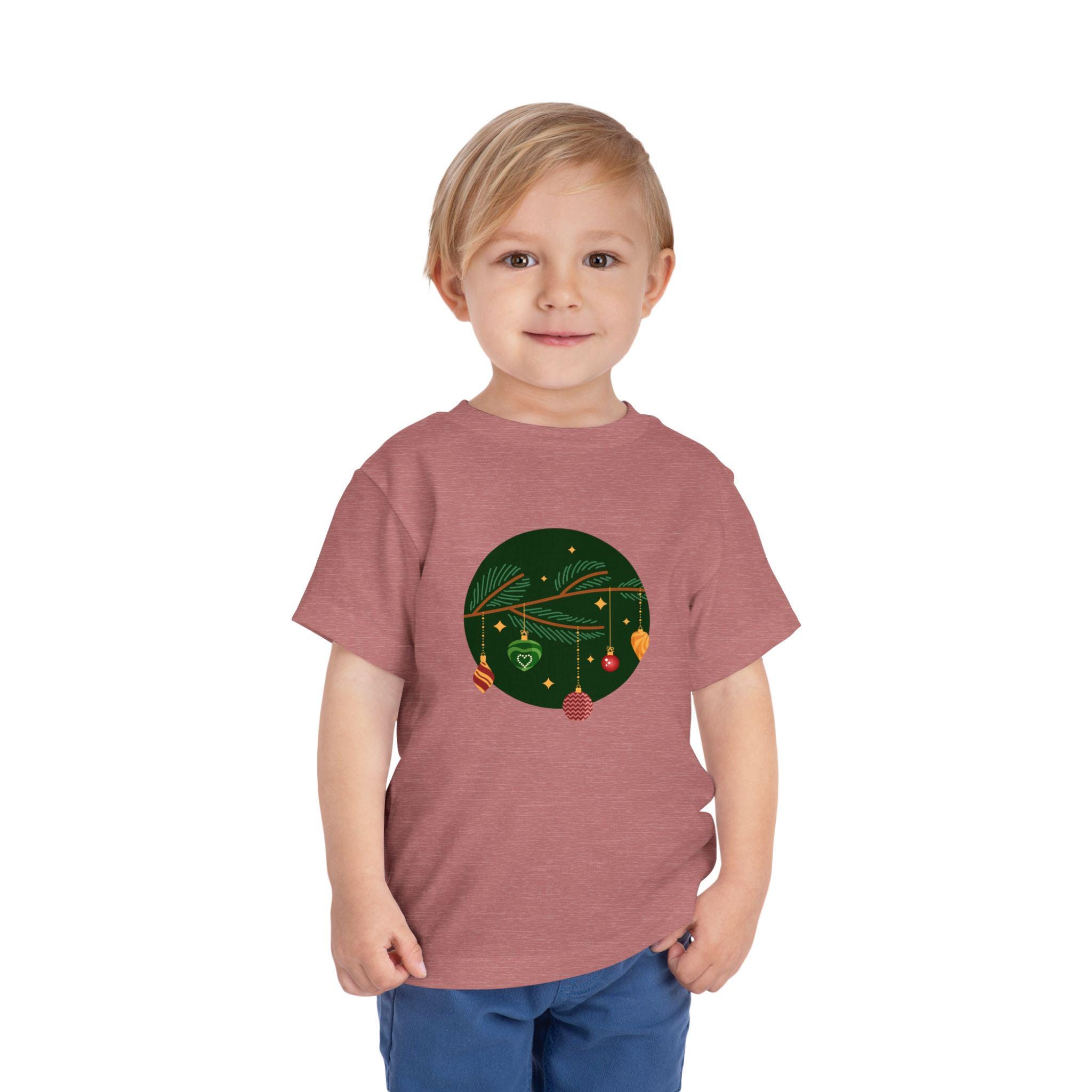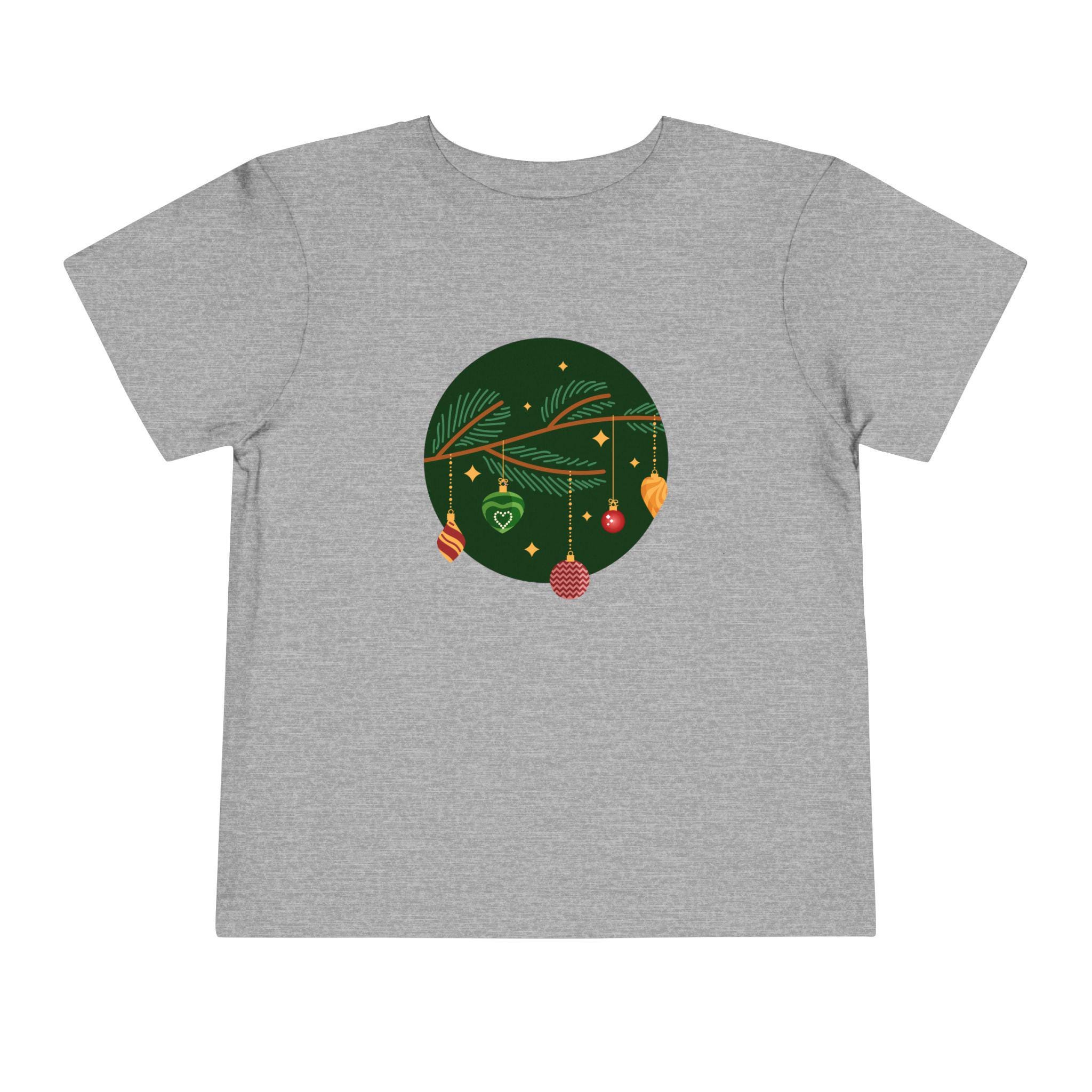 A soft, lightweight toddler tee that brings a gentle winter moment to little ones. The simple holiday emblem — a tiny pine and ornaments — feels calm and cozy against the fabric. Breathable and smooth, this shirt layers easily under jackets or pairs with playful leggings for a day of sledding, holiday photos, or warm indoor cocoa breaks. It's quiet, wintry charm that sits comfortably on a small body and lets their personality shine without fuss.