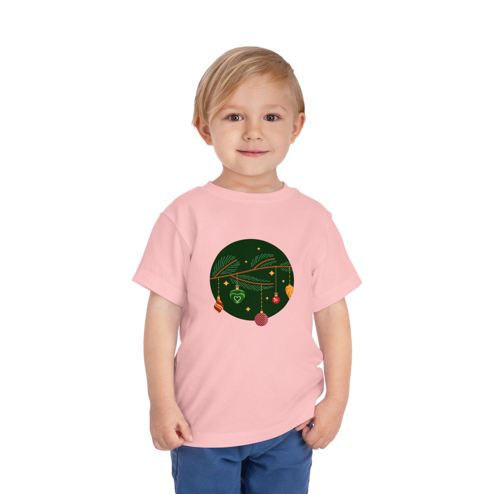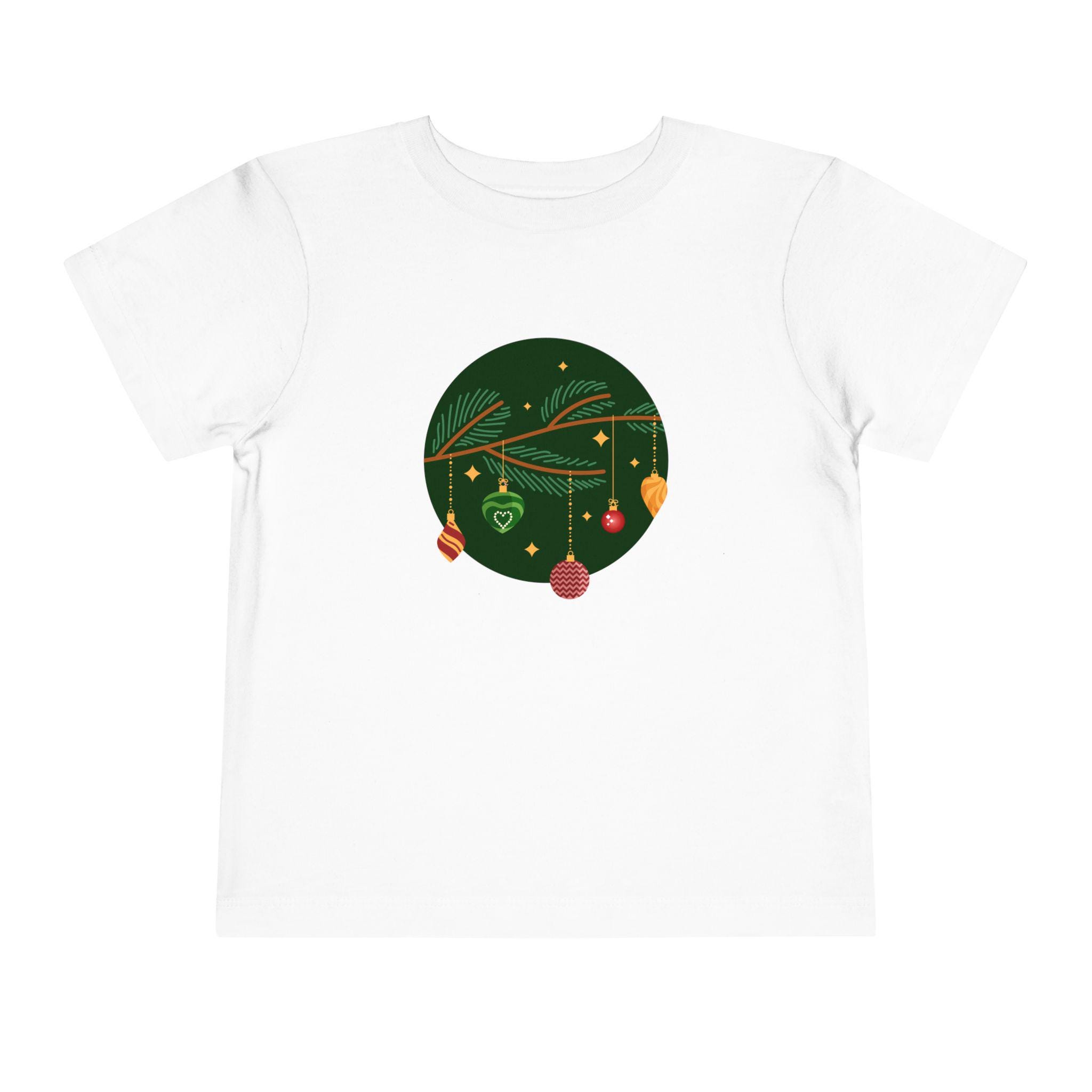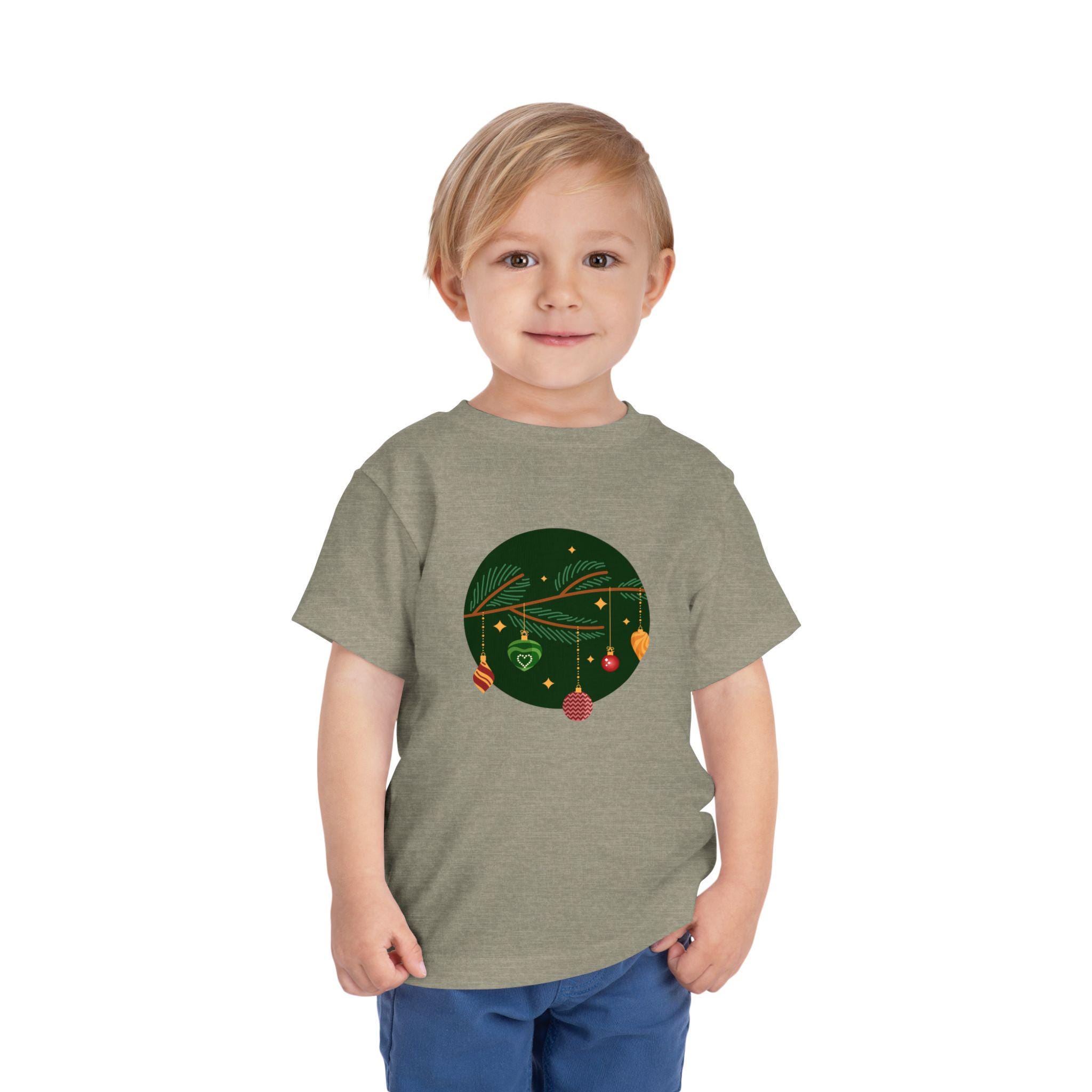 A soft, lightweight toddler tee that brings a gentle winter moment to little ones. The simple holiday emblem — a tiny pine and ornaments — feels calm and cozy against the fabric. Breathable and smooth, this shirt layers easily under jackets or pairs with playful leggings for a day of sledding, holiday photos, or warm indoor cocoa breaks. It's quiet, wintry charm that sits comfortably on a small body and lets their personality shine without fuss.