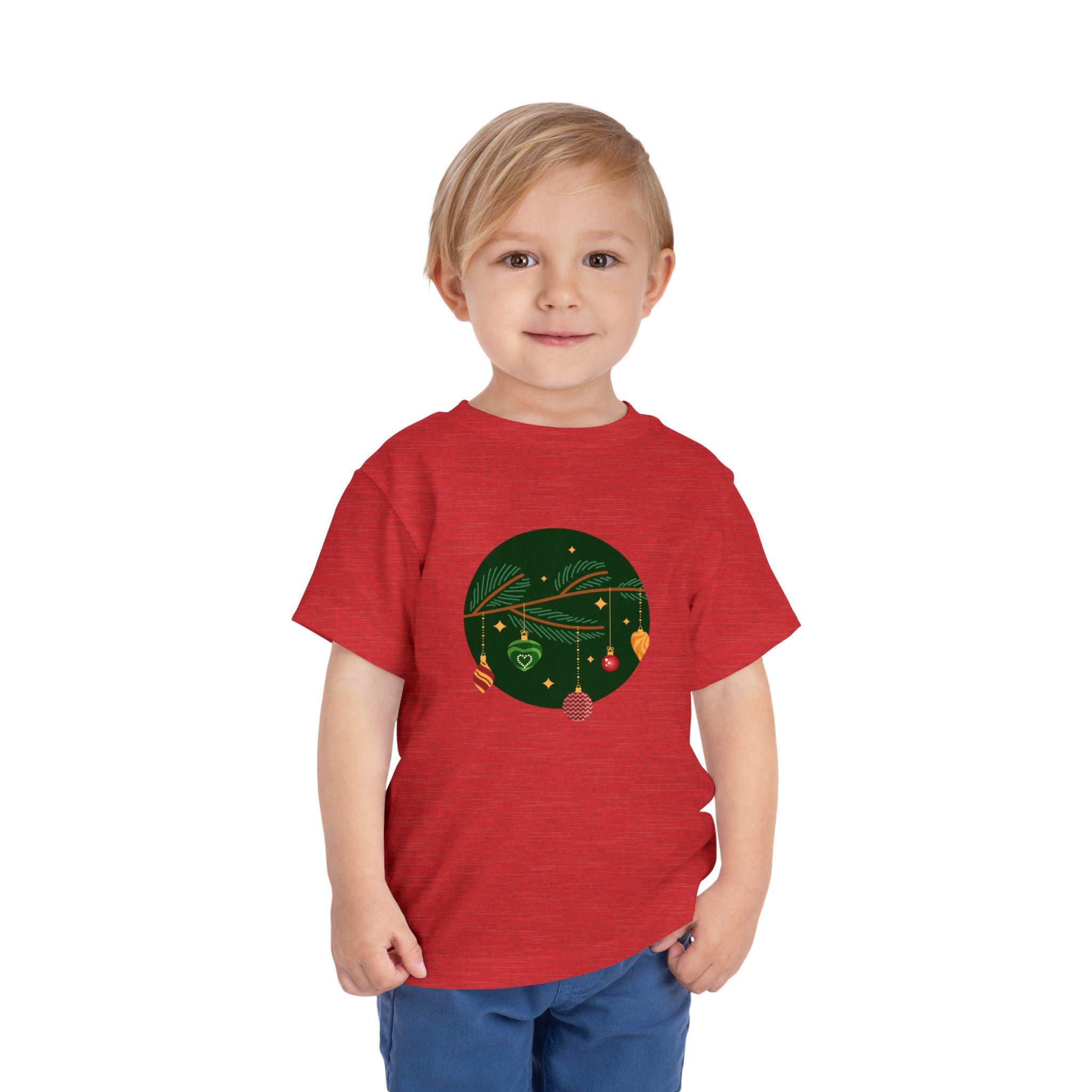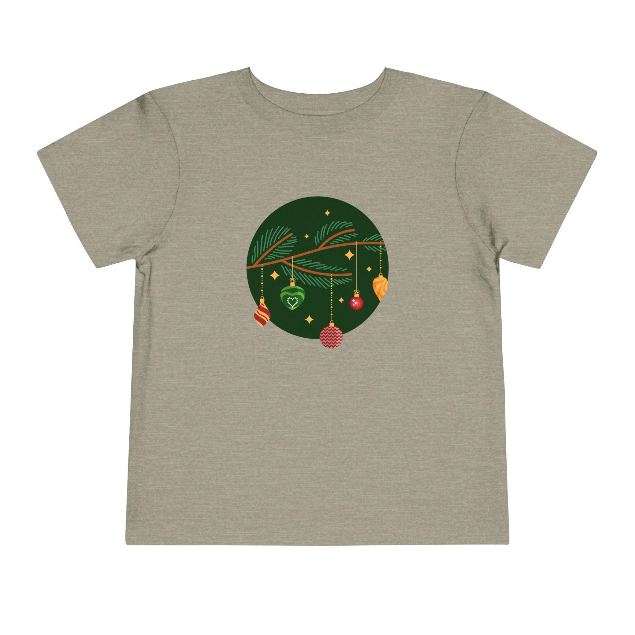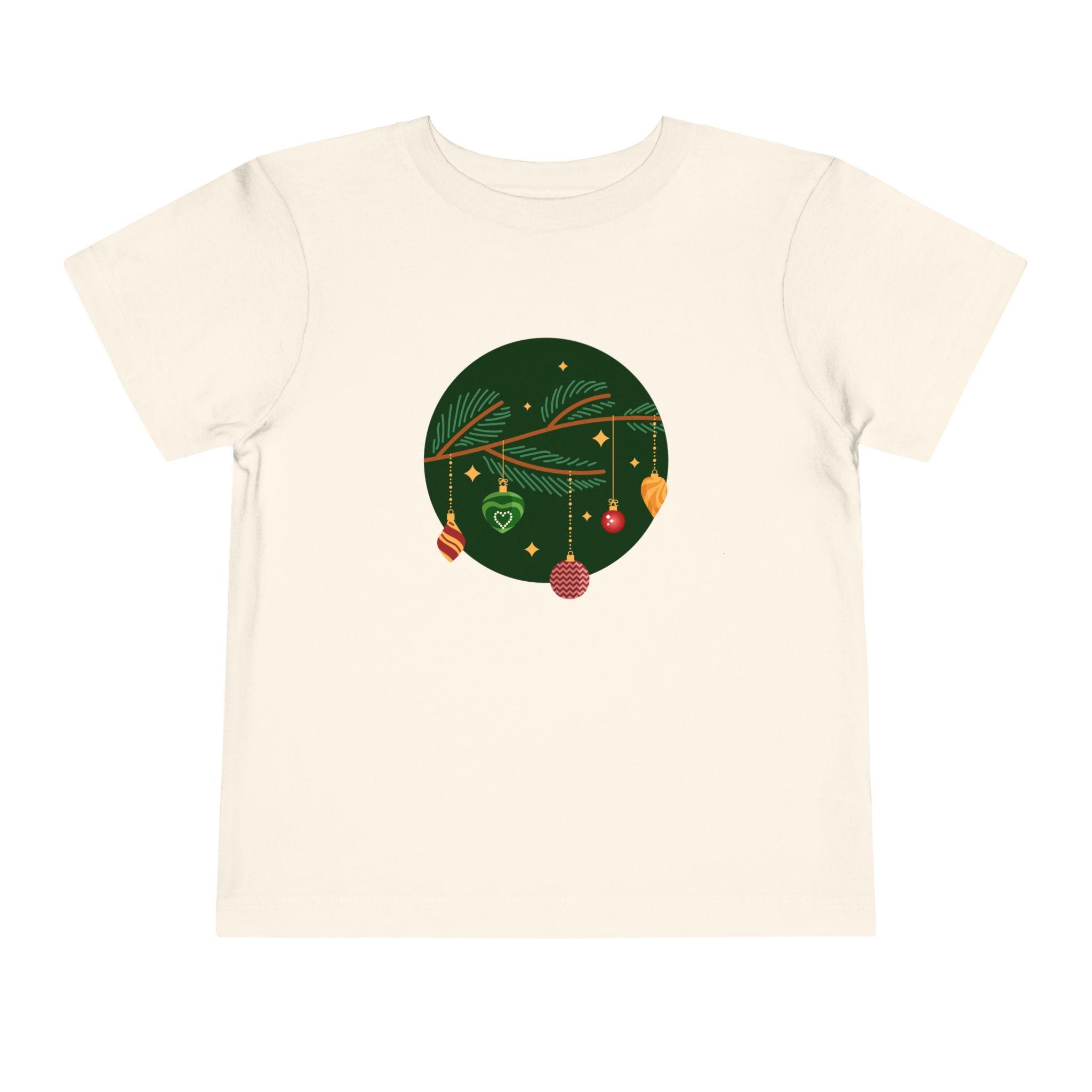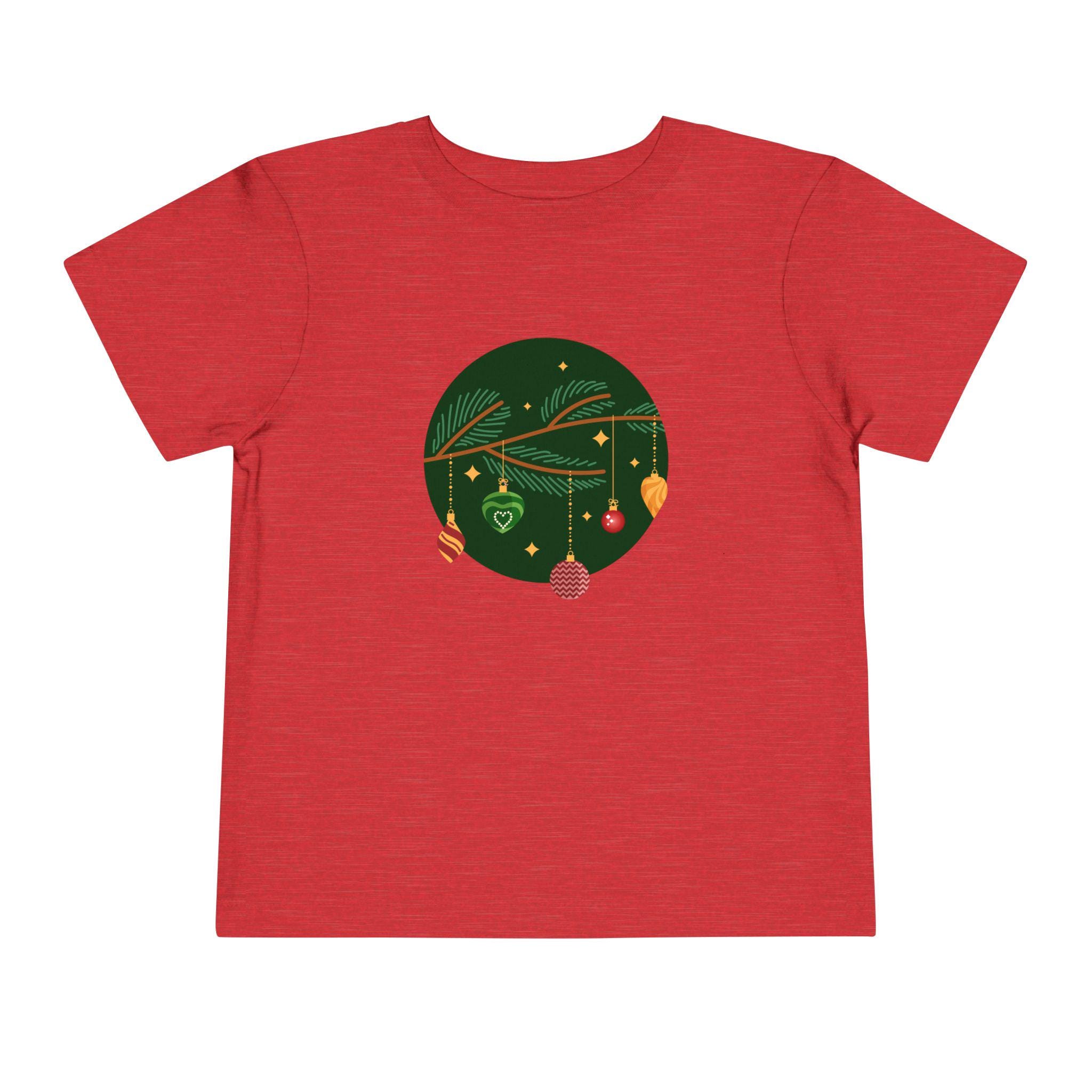 A soft, lightweight toddler tee that brings a gentle winter moment to little ones. The simple holiday emblem — a tiny pine and ornaments — feels calm and cozy against the fabric. Breathable and smooth, this shirt layers easily under jackets or pairs with playful leggings for a day of sledding, holiday photos, or warm indoor cocoa breaks. It's quiet, wintry charm that sits comfortably on a small body and lets their personality shine without fuss.