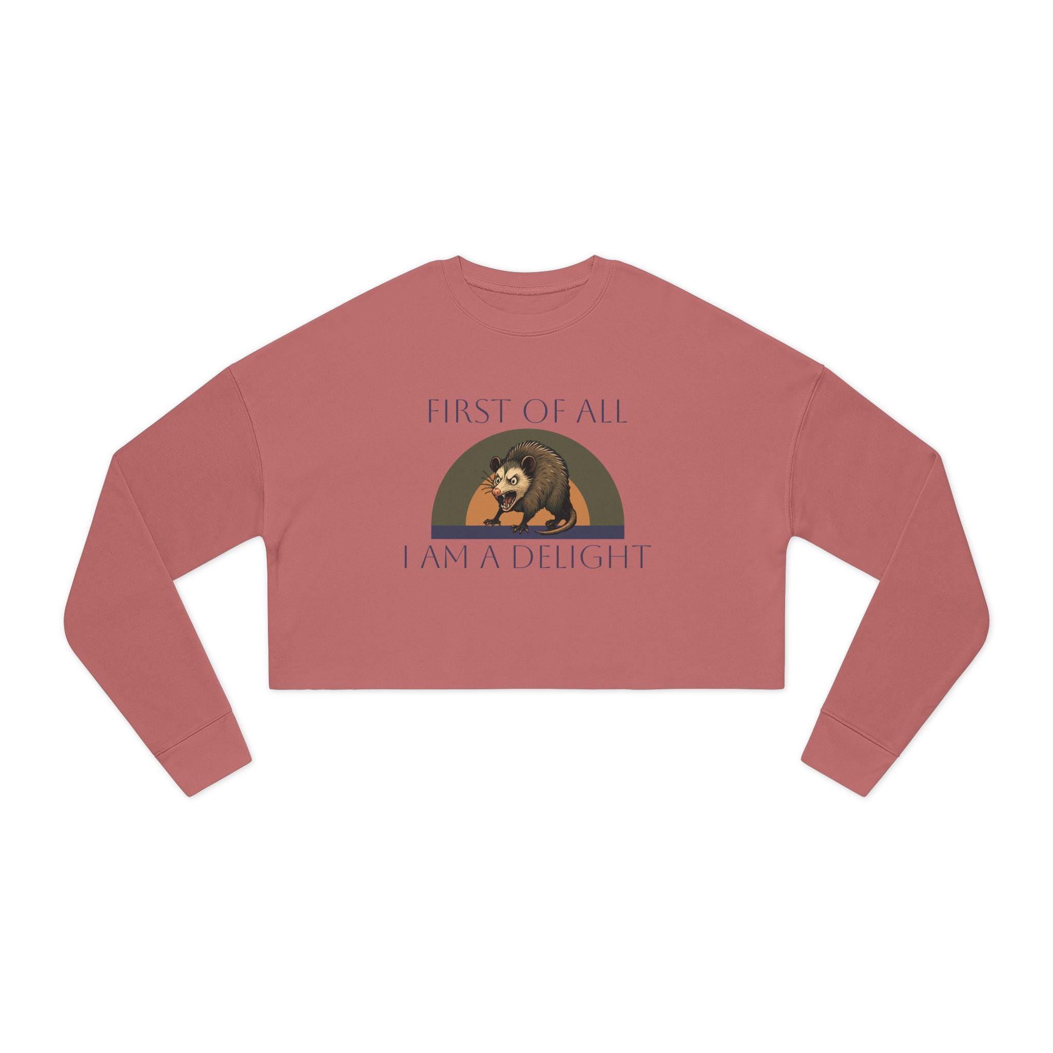 This cropped sweatshirt is soft, relaxed, and quietly playful — a cropped silhouette in a warm rose tone with a vintage-style sloth graphic framed by a muted rainbow. It feels lived-in from the first wear: the medium-weight, combed ring-spun cotton blend has a smooth, slightly luxurious hand while the dropped shoulders and raw hem give it an easy, off-duty edge. Wear it with high-waisted jeans, layered over a slip dress, or tossed on for slow, cozy mornings. The sloth artwork and subtle lettering create a slow-living vibe that speaks to people who favor comfort, humor, and laid-back style.