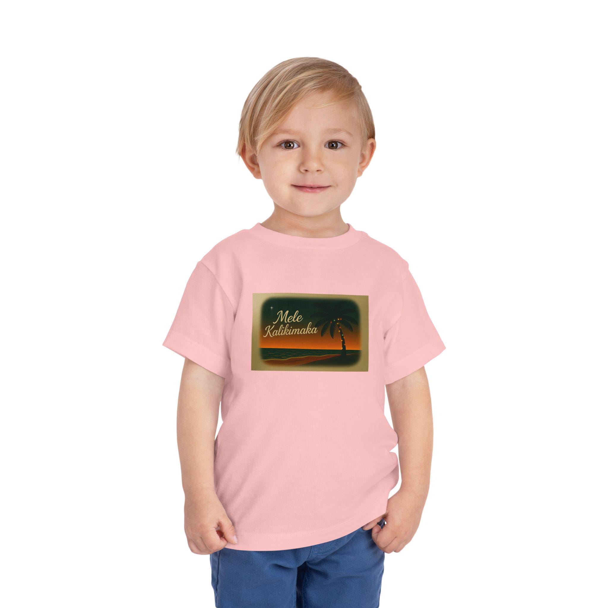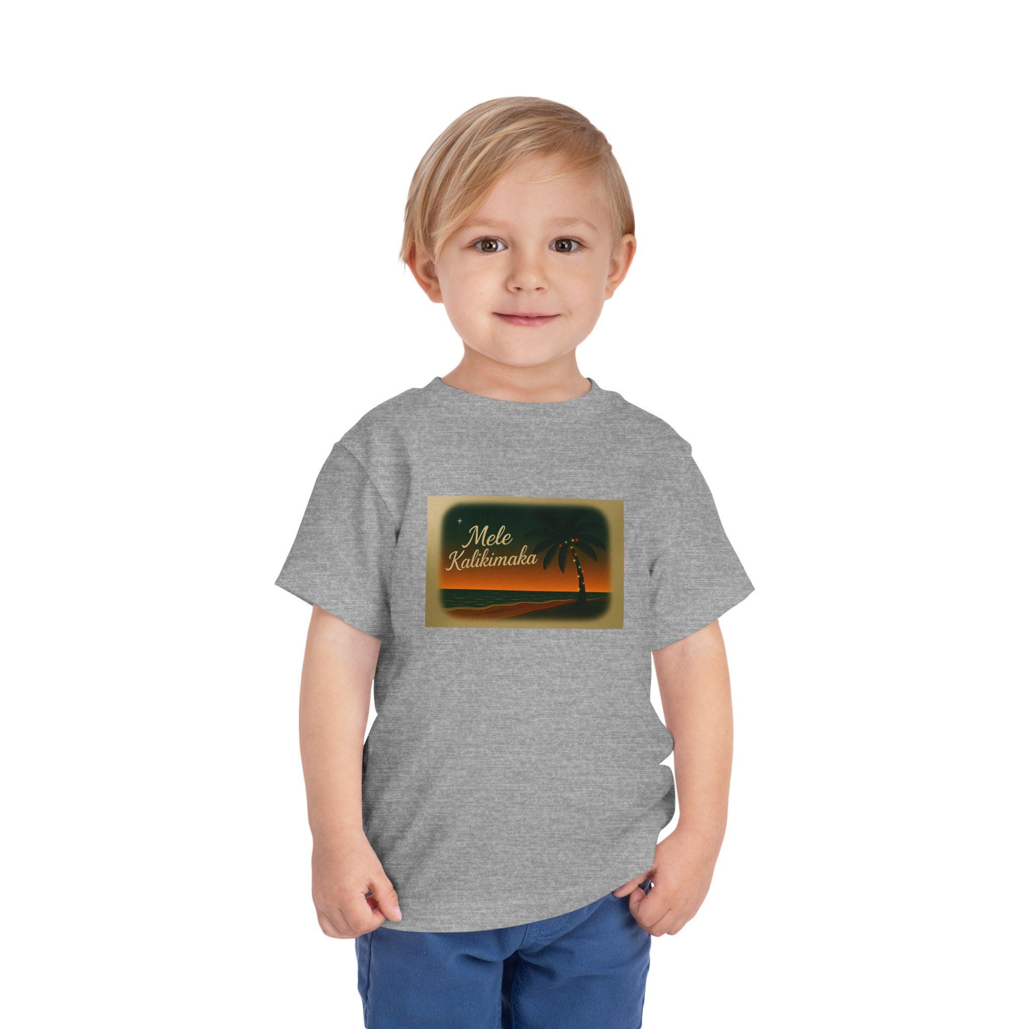 This Mele Kalikimaka Christmas Toddler Tee is perfect for the holiday season, featuring a cute holiday design. It gives off a festive and cheerful vibe, making it ideal for toddlers to wear during Christmas celebrations. The lightweight fabric and tear-away label ensure comfort for your little one throughout the day. A great addition to any toddler's holiday wardrobe.