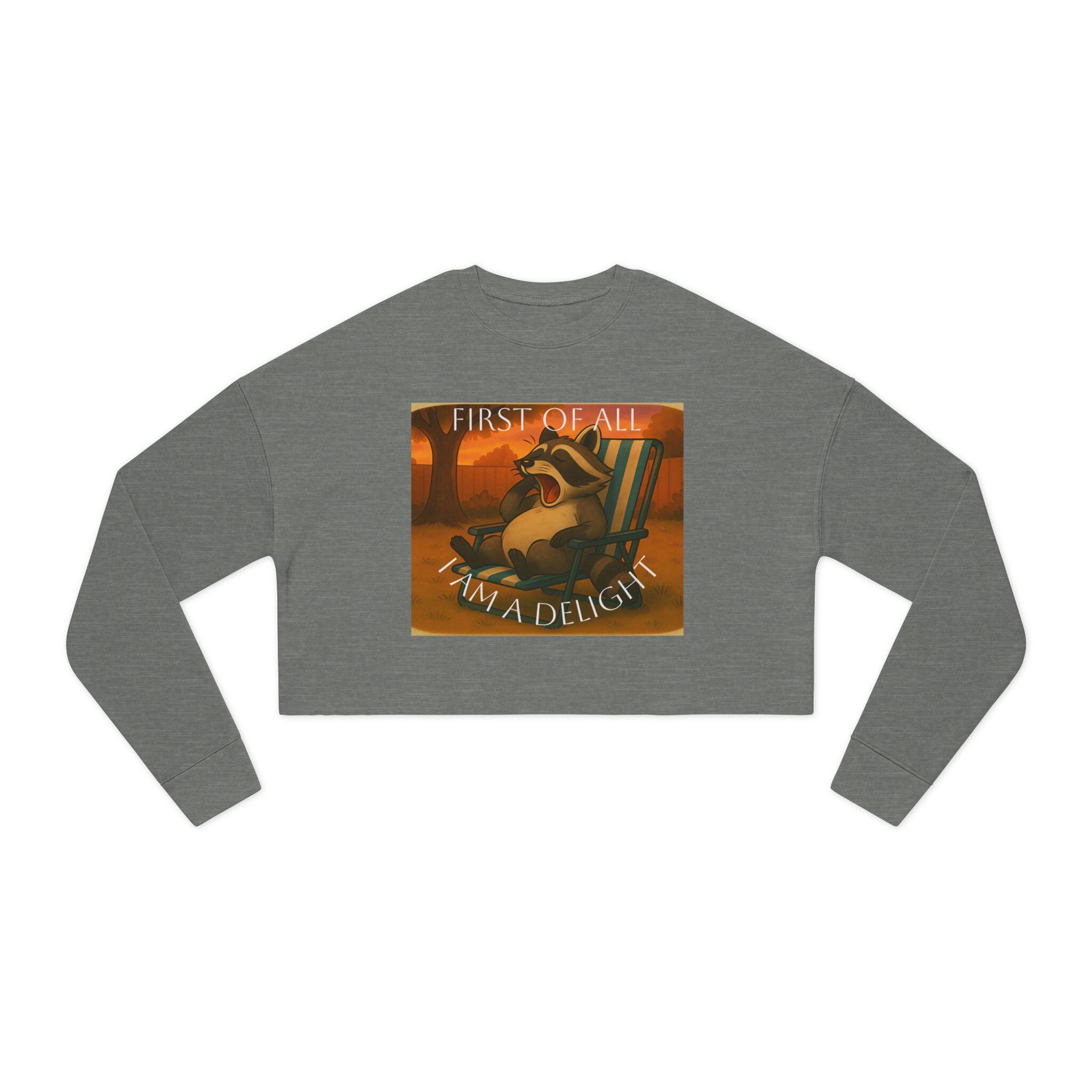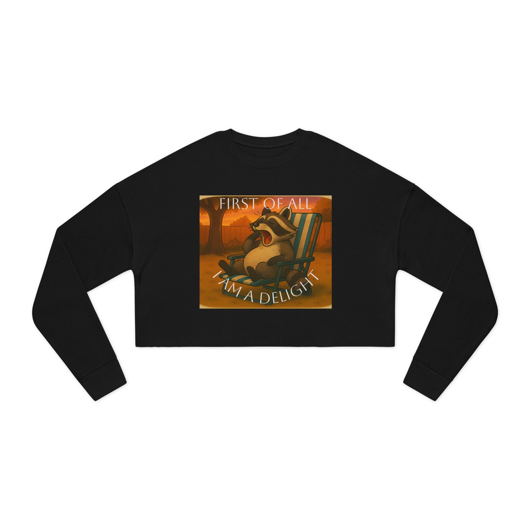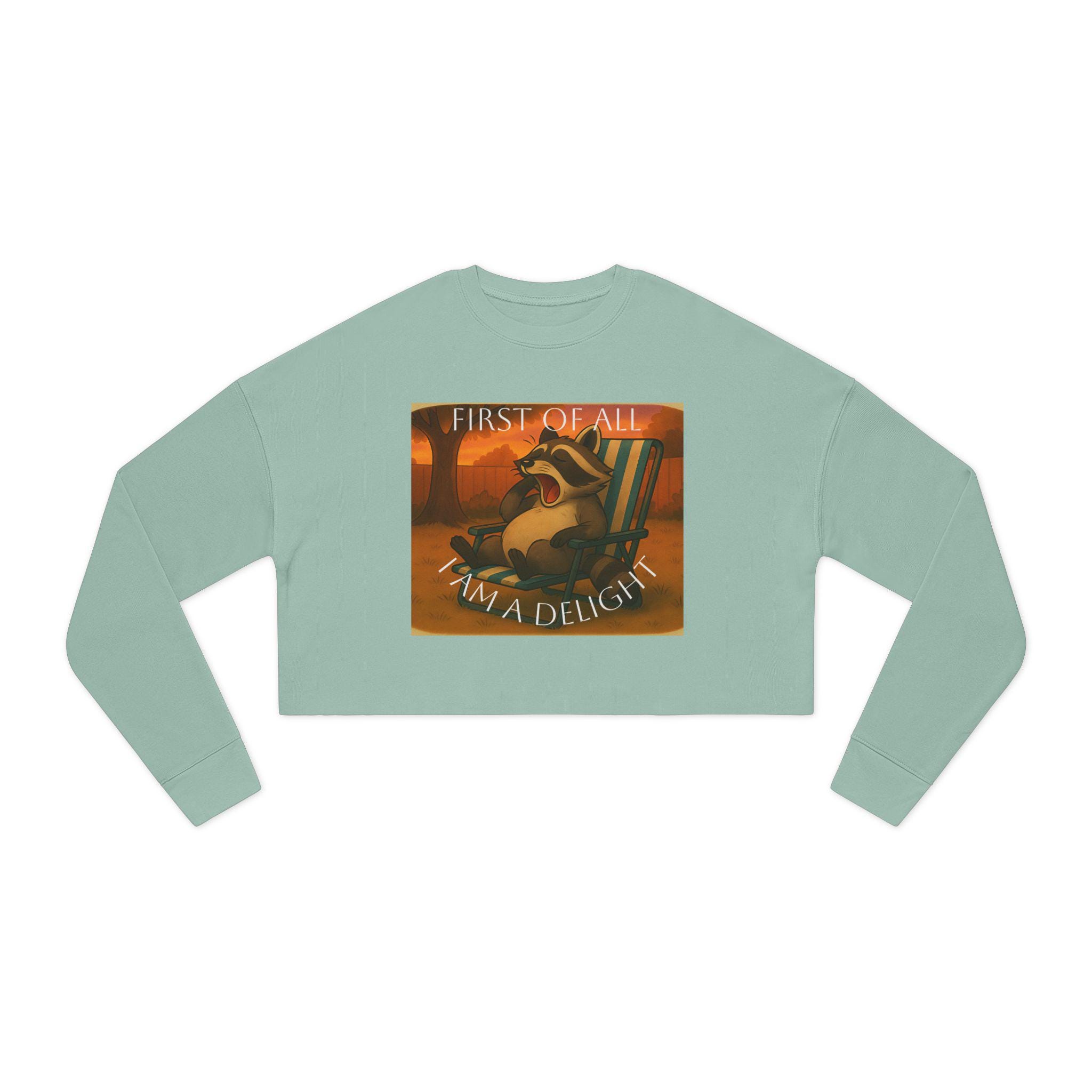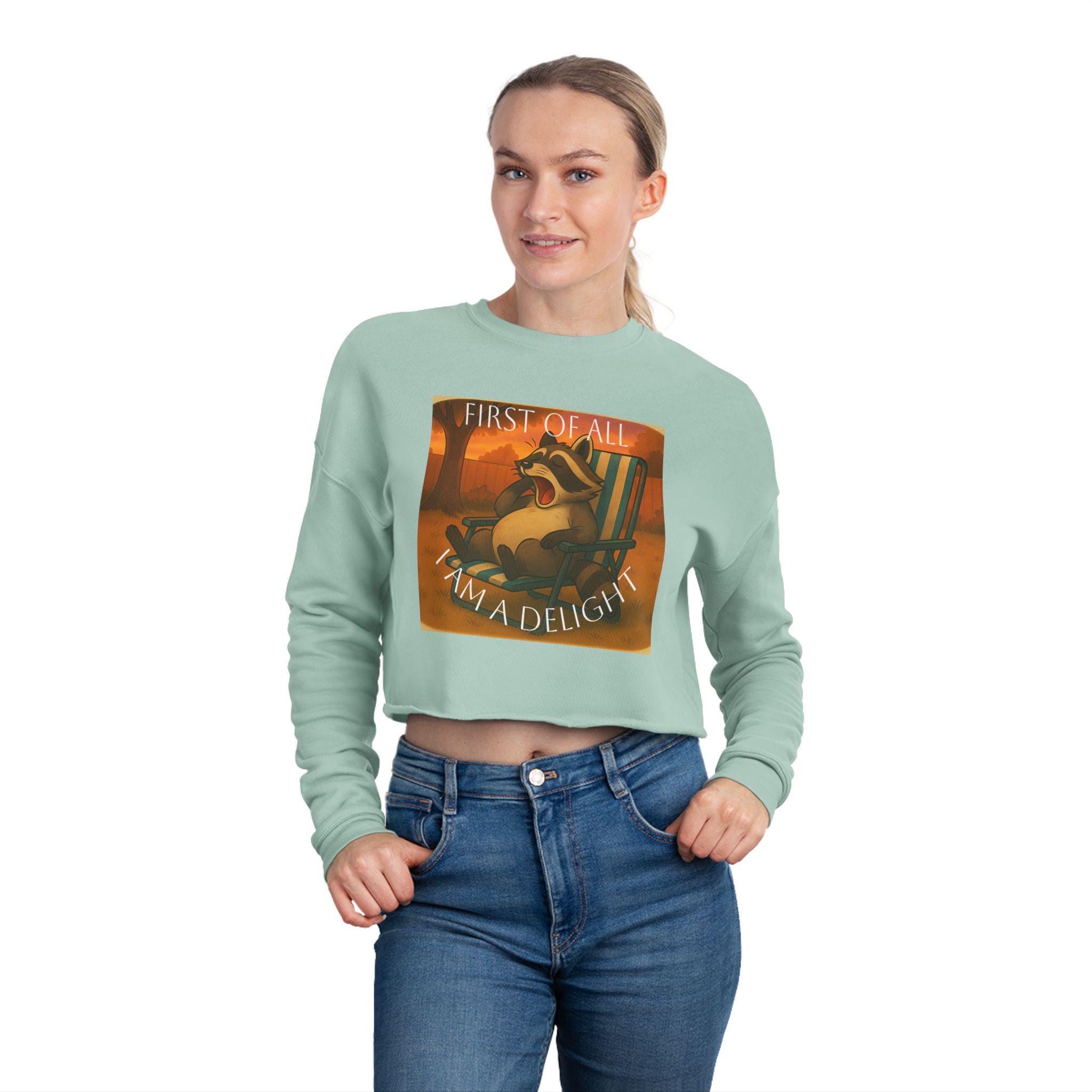 This cropped sweatshirt is soft, relaxed, and quietly playful — a cropped silhouette in a warm rose tone with a lounging racoon during sunset graphic. It feels lived-in from the first wear: the medium-weight, combed ring-spun cotton blend has a smooth, slightly luxurious hand while the dropped shoulders and raw hem give it an easy, off-duty edge. Wear it with high-waisted jeans, layered over a slip dress, or tossed on for slow, cozy mornings. The sloth artwork and subtle lettering create a slow-living vibe that speaks to people who favor comfort, humor, and laid-back style.