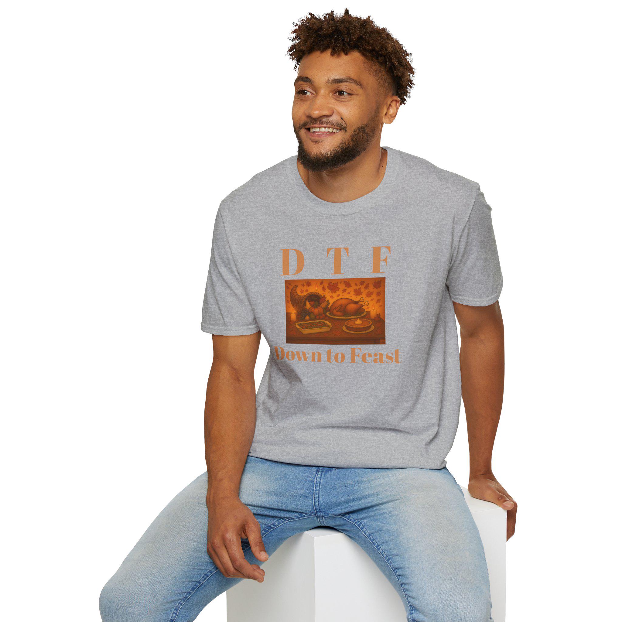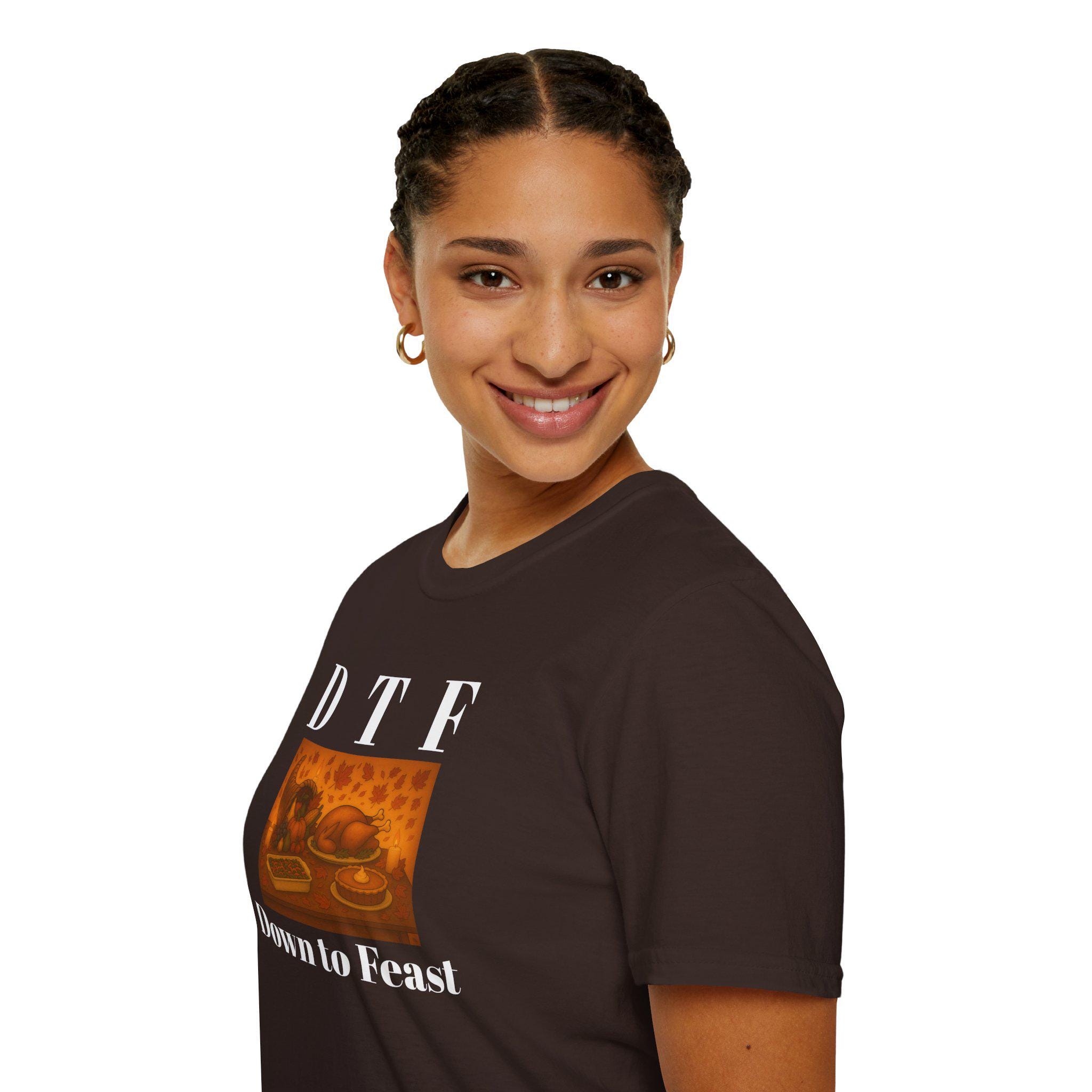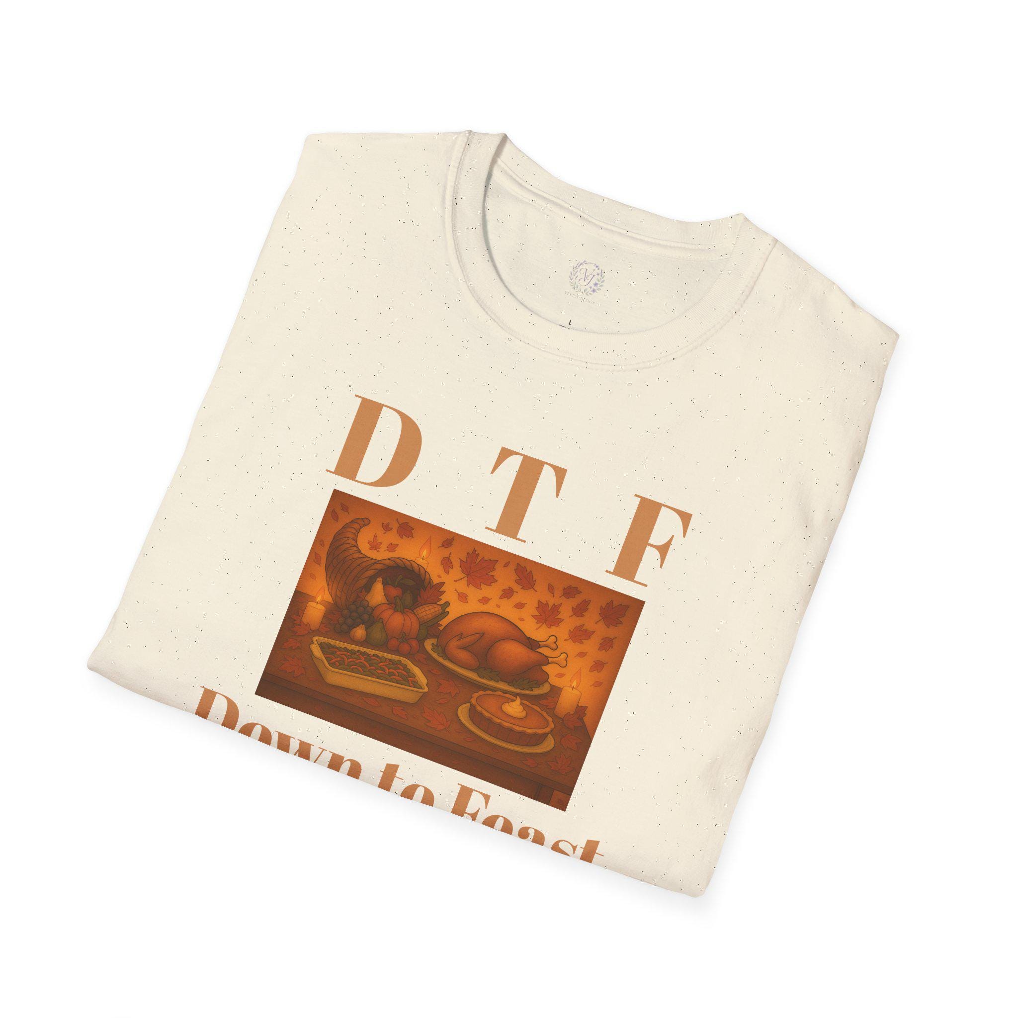 A lightweight, soft cotton tee with a warm, playful design that celebrates food, friends, and cozy gatherings. The front print features a vintage-styled still life and the cheeky lettering “DTF - Down to Feast,” giving the shirt a tongue-in-cheek personality that reads as both nostalgic and food-obsessed. It drapes cleanly with a classic crew neckline and a smooth finish that keeps the artwork front-and-center. Wear it to casual dinners, weekend markets, or when you want to say loud and clear that you’re coming for the good food and good company. The neutral base and subtle distressed tones in the print make it easy to pair with jeans, an apron, or a favorite cardigan.