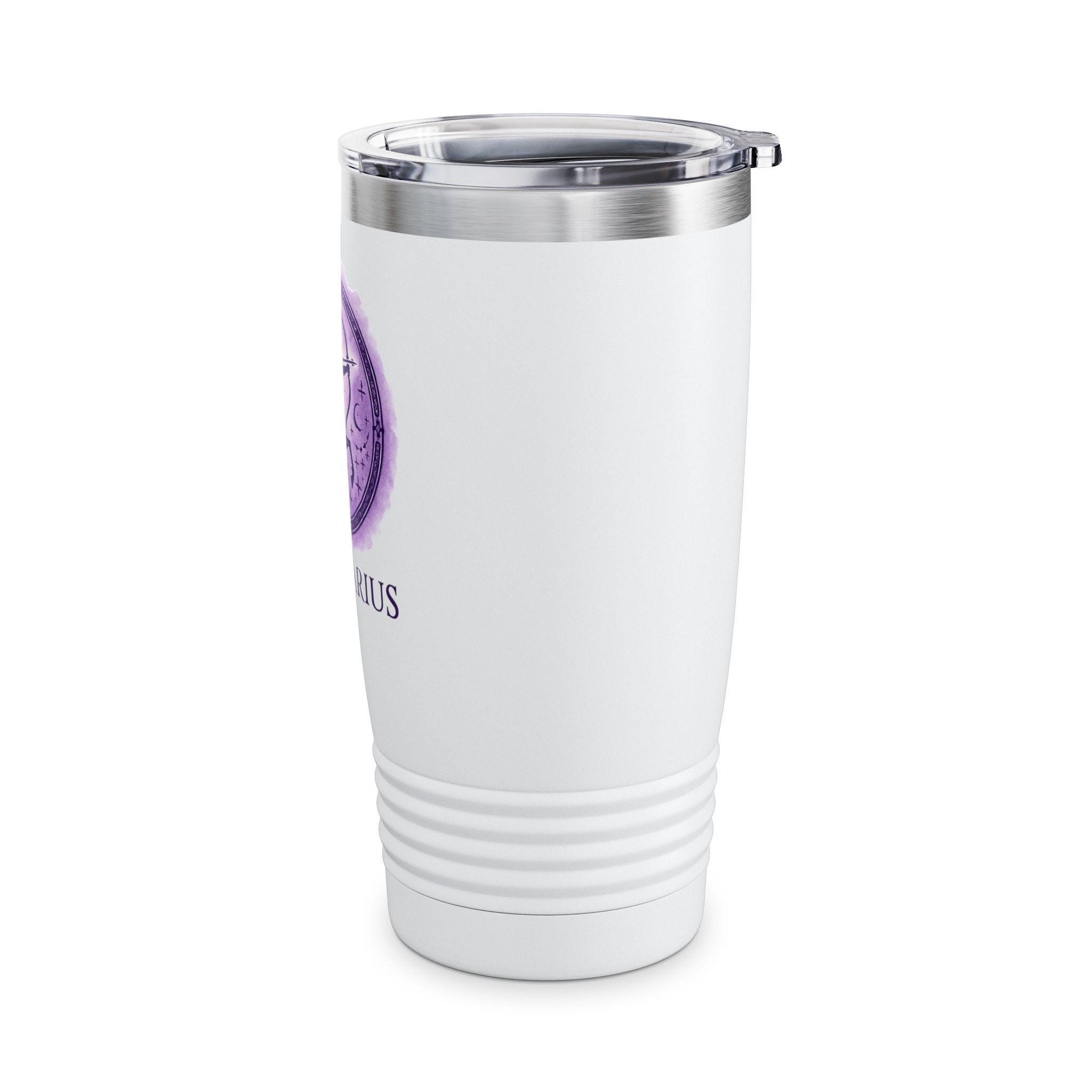 A 20oz ringneck tumbler designed for everyday rituals and slow mornings. The sleek double-wall stainless steel keeps coffee steaming or iced drinks chilled — long enough to carry you through a commute, a studio session, or a desk day. The narrow mouth and clear push-on lid make sipping easy and spill-resistant while the ribbed base keeps the cup steady in your hand or cupholder. A subtle, glossy-printed Zodiac emblem gives this tumbler a calm, thoughtful aesthetic that nods to personal identity without shouting. Available in three base colors, it’s finished with bright, crisp printing that holds its color and shine; hand wash to keep the varnish looking fresh.