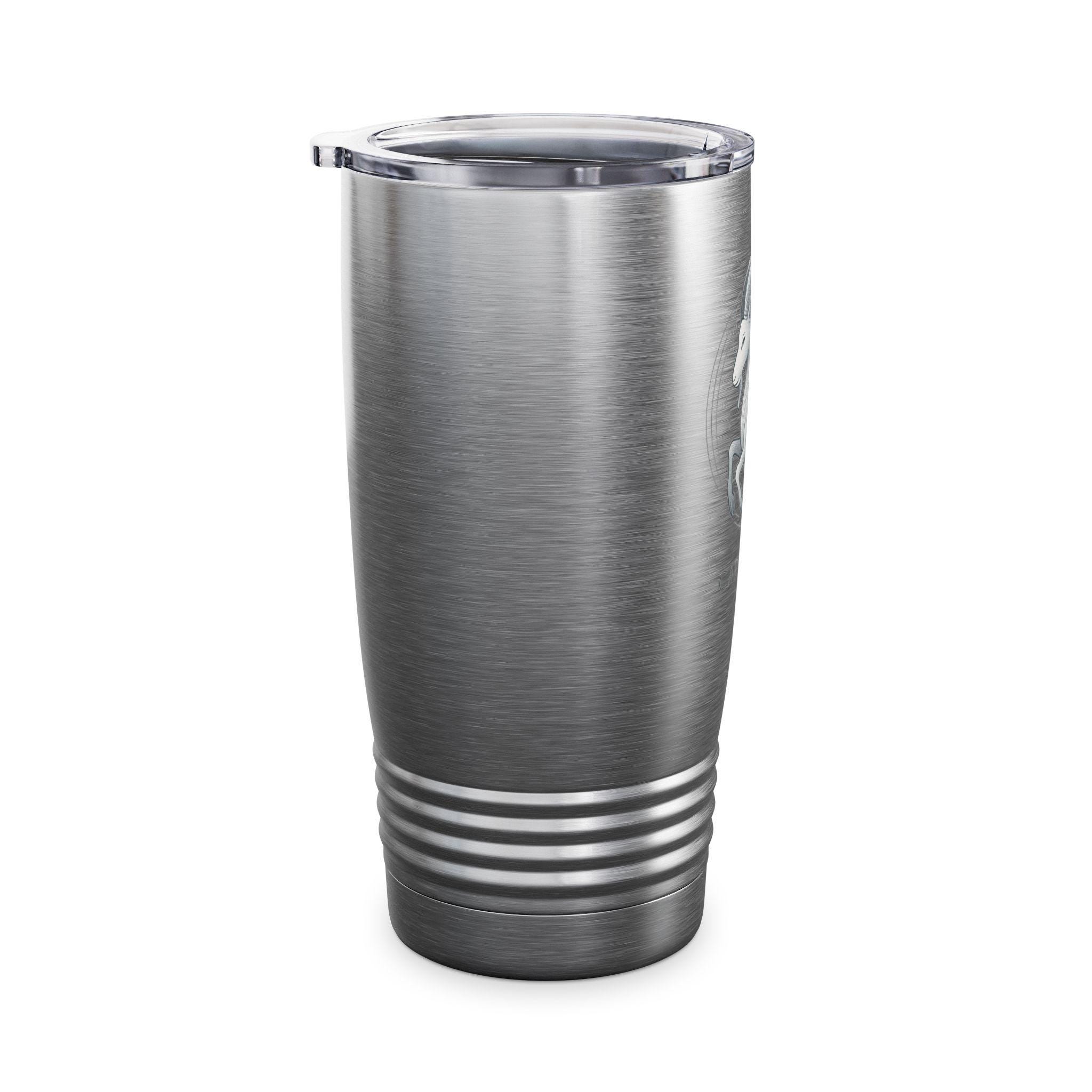 A 20oz ringneck tumbler designed for everyday rituals and slow mornings. The sleek double-wall stainless steel keeps coffee steaming or iced drinks chilled — long enough to carry you through a commute, a studio session, or a desk day. The narrow mouth and clear push-on lid make sipping easy and spill-resistant while the ribbed base keeps the cup steady in your hand or cupholder. A subtle, glossy-printed Zodiac emblem gives this tumbler a calm, thoughtful aesthetic that nods to personal identity without shouting. Available in three base colors, it’s finished with bright, crisp printing that holds its color and shine; hand wash to keep the varnish looking fresh.