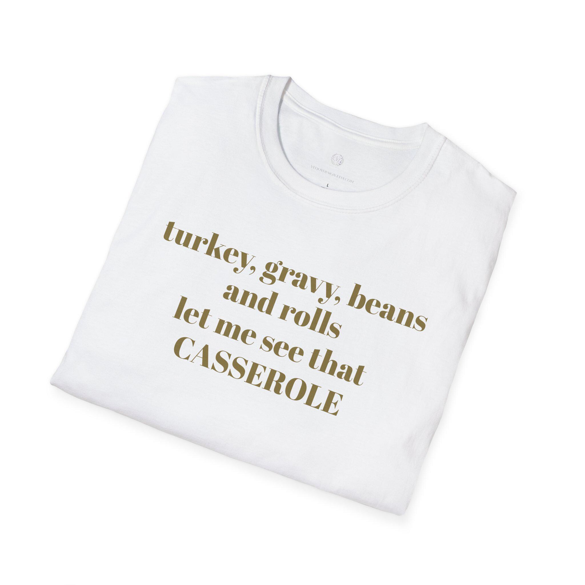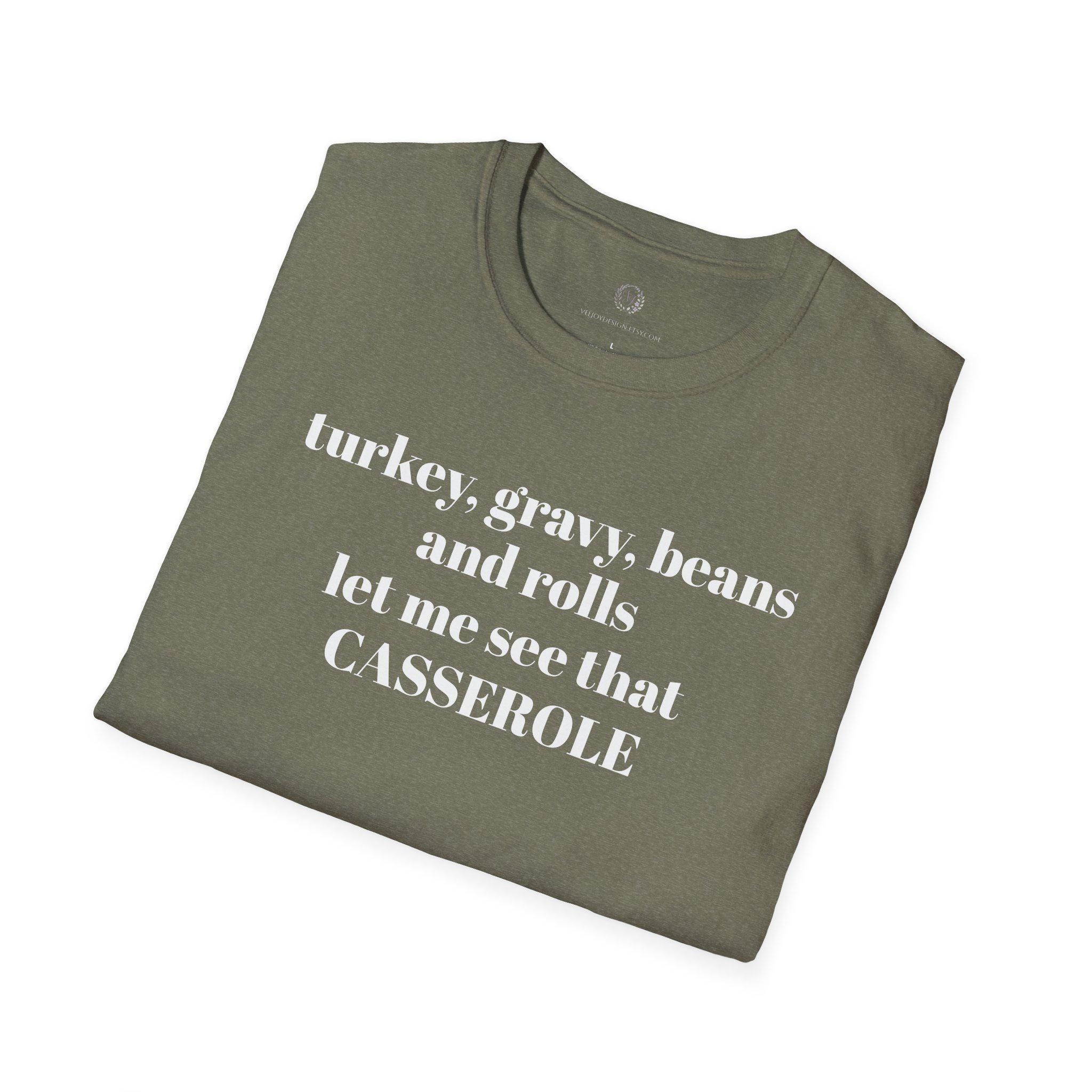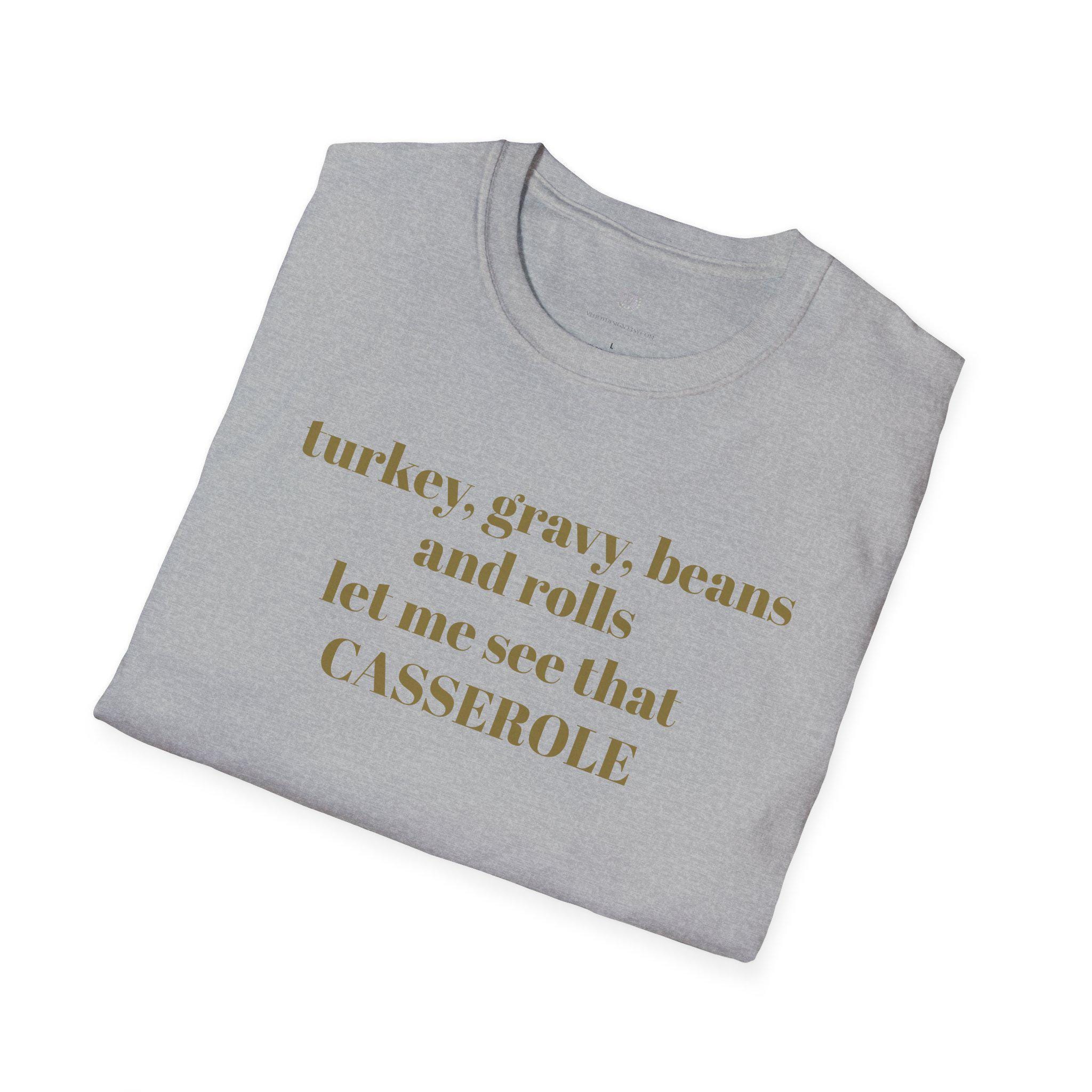 A lightweight, comfortable tee that speaks directly to makers who savor every scrap. The soft, ring-spun cotton drapes easily and the clean crew neck keeps the focus on the gentle, gold-toned lettering across the chest: “turkey, beans, gravy, rolls, let me see that CASSEROLE” Wear it during late-night sewing sessions, fabric runs, or at the next quilting circle to share a wink with fellow stitchers. Breathable and smooth, this shirt ages into a lived-in favorite — the kind you reach for when you want to feel seen and a little cheeky while you work. Subtle and resilient, it blends responsibly sourced cotton with print methods that keep your design crisp without adding bulk.