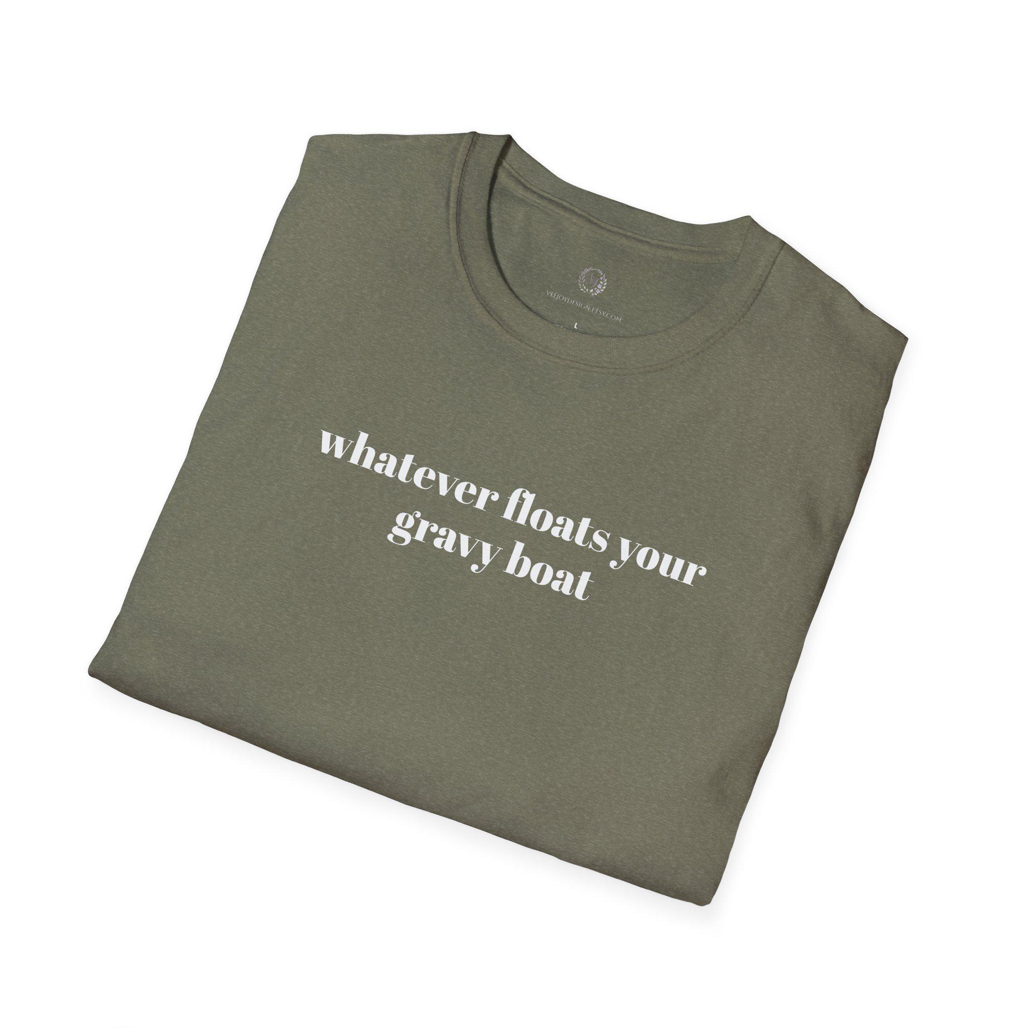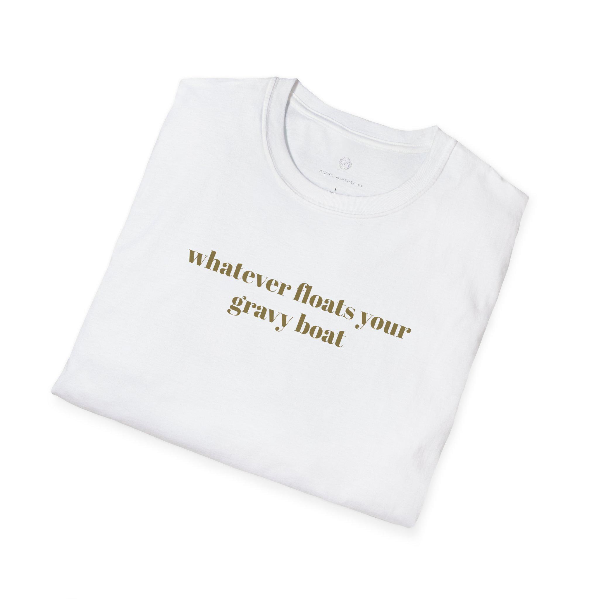A lightweight, comfortable tee that speaks directly to makers who savor every scrap. The soft, ring-spun cotton drapes easily and the clean crew neck keeps the focus on the gentle, gold-toned lettering across the chest: “whatever floats your gravy boat.” Wear it during late-night sewing sessions, fabric runs, or at the next quilting circle to share a wink with fellow stitchers. Breathable and smooth, this shirt ages into a lived-in favorite — the kind you reach for when you want to feel seen and a little cheeky while you work. Subtle and resilient, it blends responsibly sourced cotton with print methods that keep your design crisp without adding bulk.