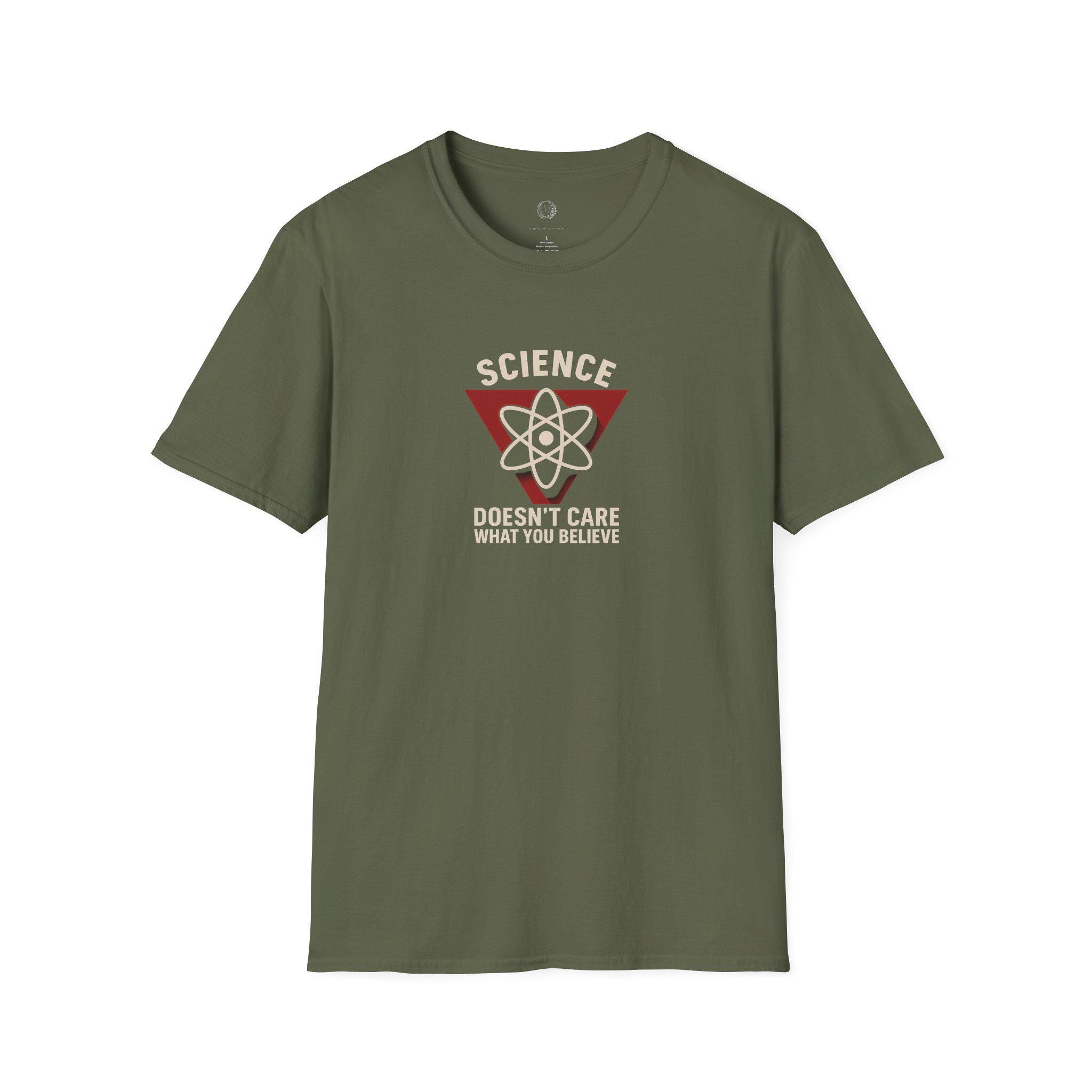 This Science Doesn't Care What You Believe T-Shirt featuring an Atom Graphic is perfect for those who appreciate science and logic. It offers a casual and comfortable style that can be worn for everyday occasions or to express one's love for science. This unisex softstyle T-shirt is ideal for adults and is made with durable and smooth fabric for printing. It is a great gift for science enthusiasts and can be worn during science-related events or celebrations.