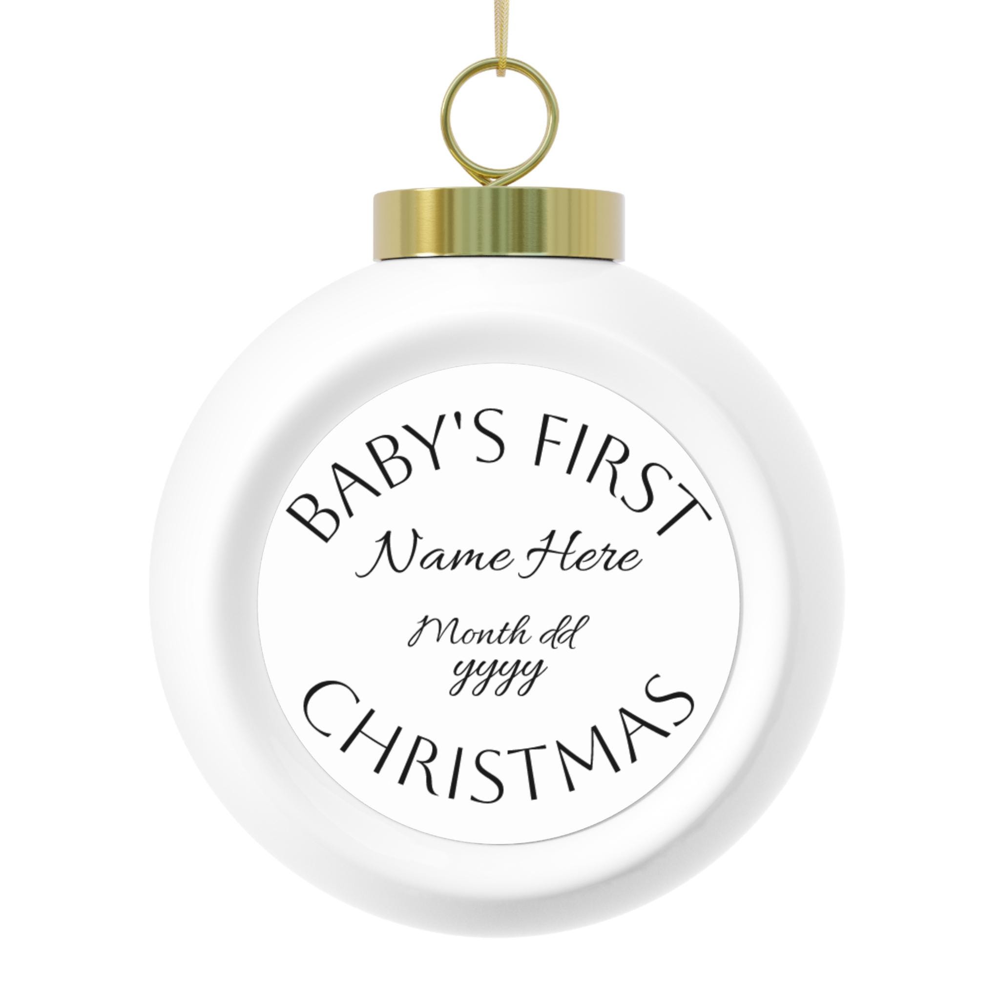 A glossy ceramic Christmas ball that holds a small, heartfelt tradition. The front features a delicate circular aluminum insert where a name and date can be printed in elegant script — a quiet way to mark a baby’s first holiday or a treasured family moment. The vintage-inspired back shows a watercolor poinsettia and candle motif in warm reds and golds, giving the ornament an old-fashioned, hand-painted feel. A gold ribbon threads through the hanging hole, ready to drape from a branch or wreath. Lightweight but substantial in finish, this ornament reads as both keepsake and seasonal decoration — something that sits gently among twinkling lights and brings back one particular evening every time it’s unwrapped.