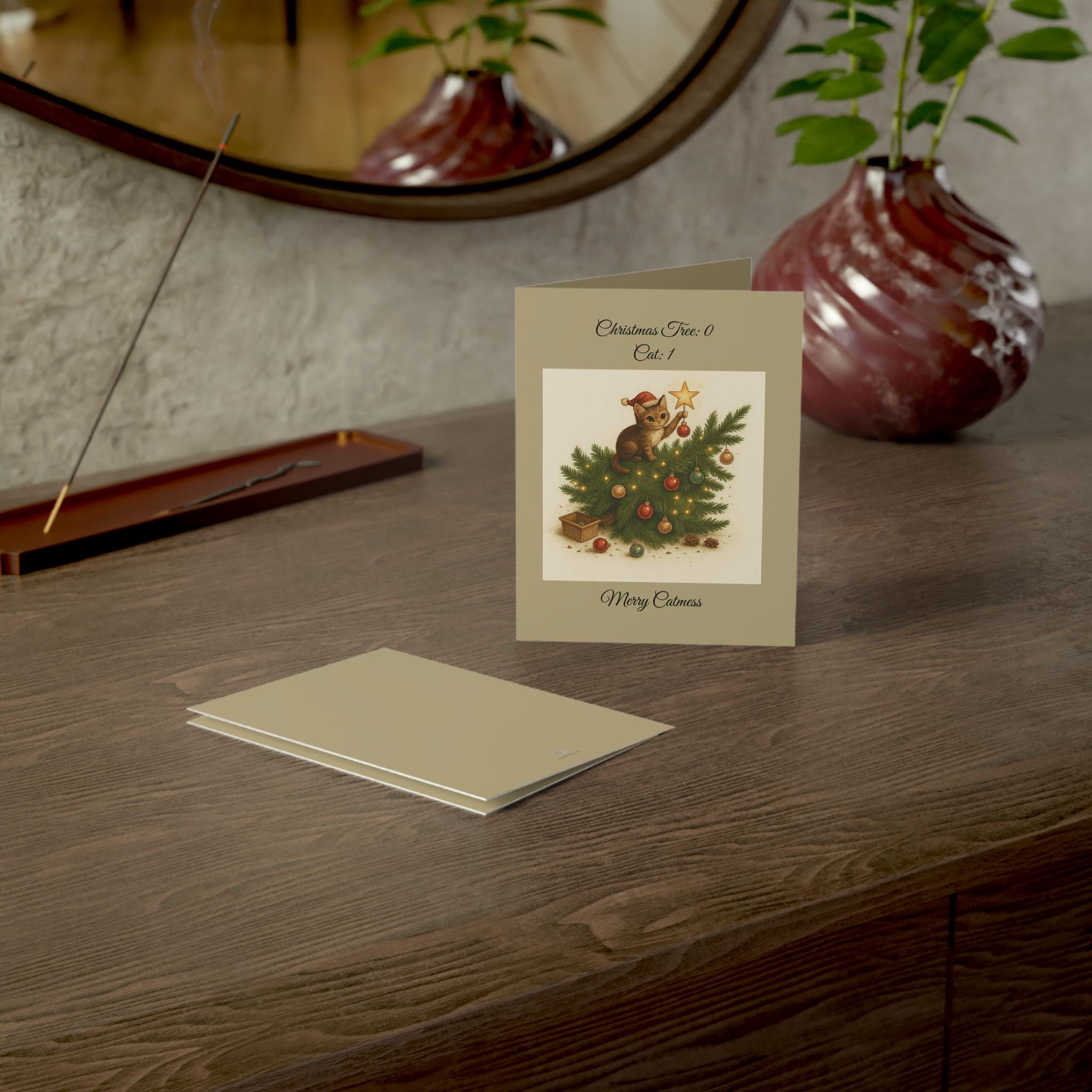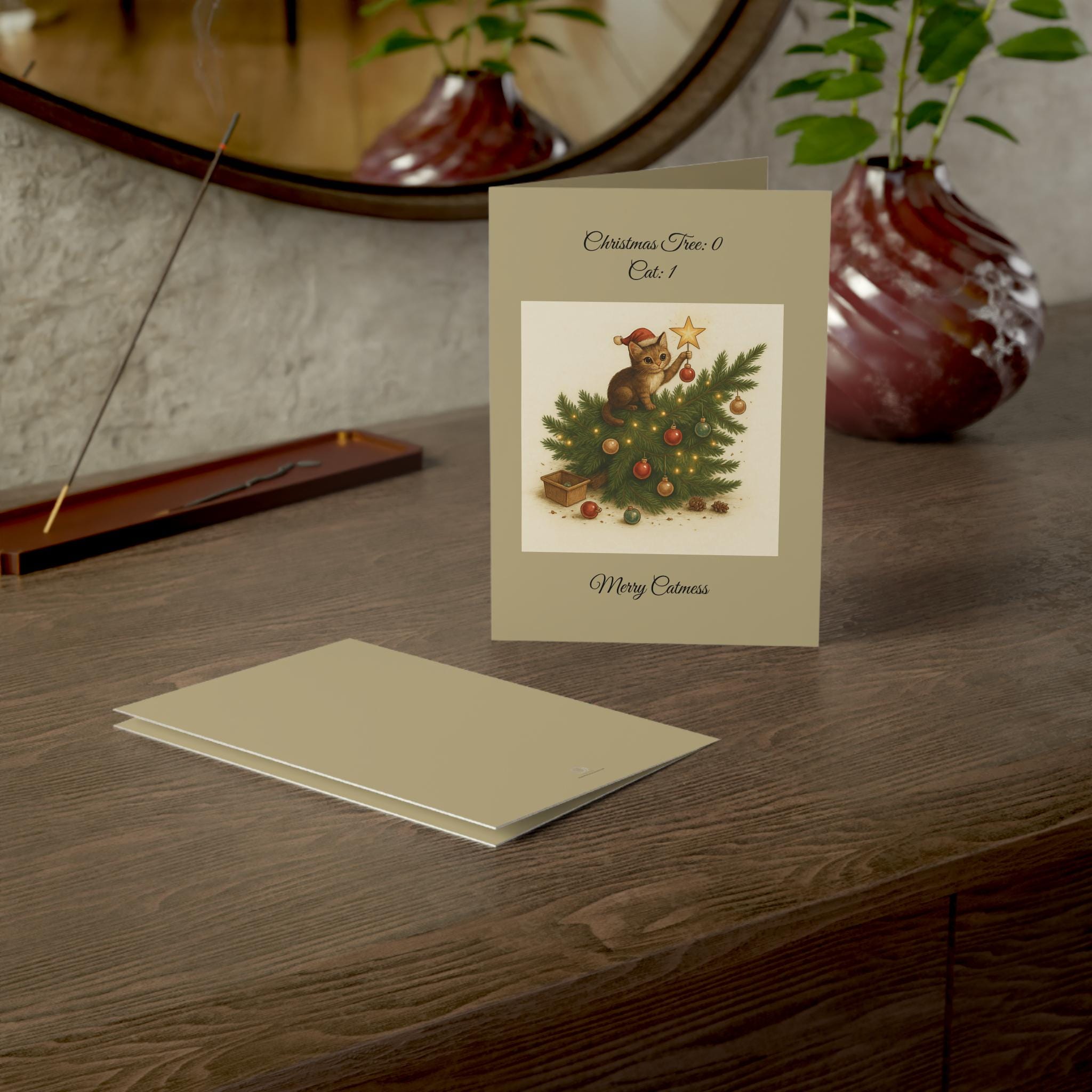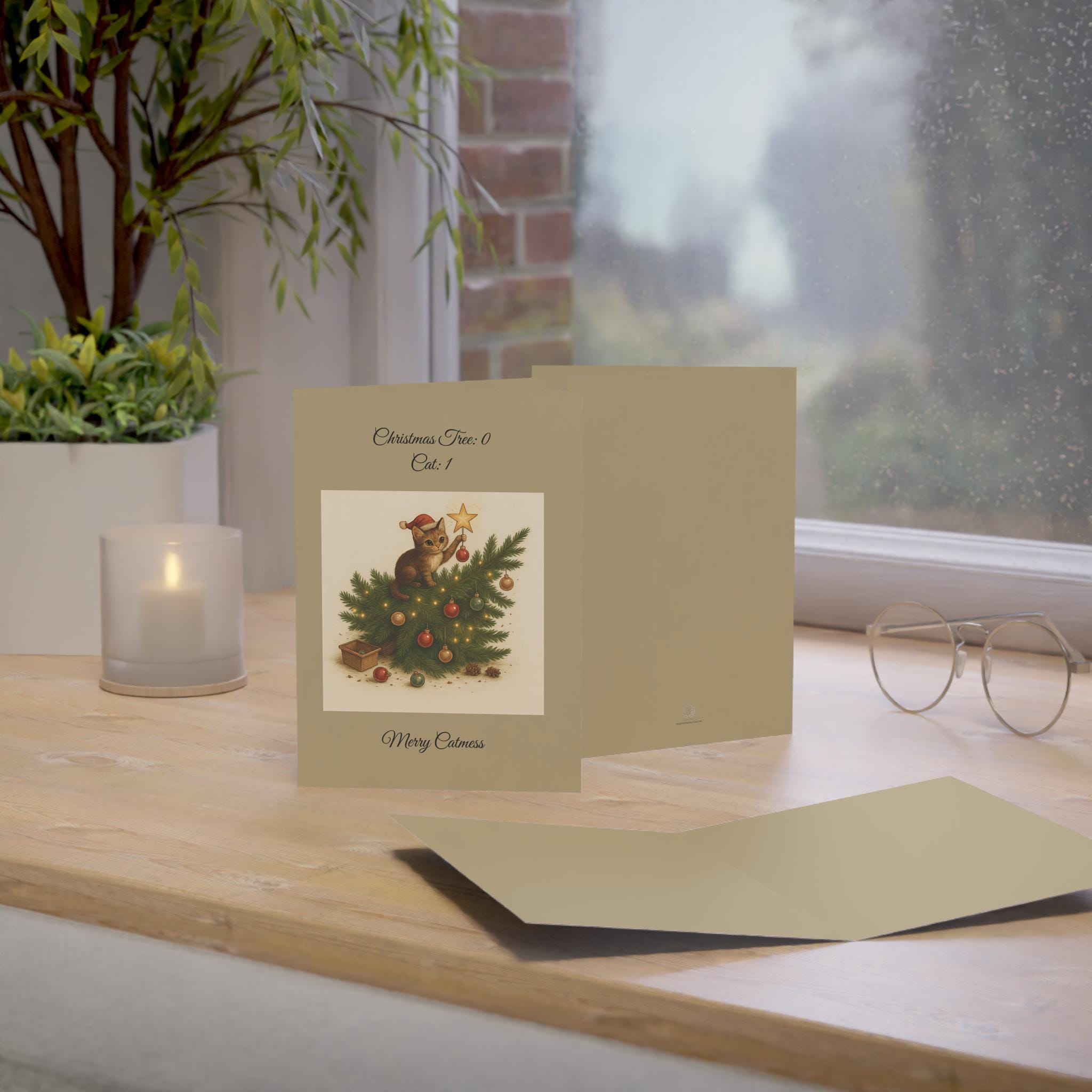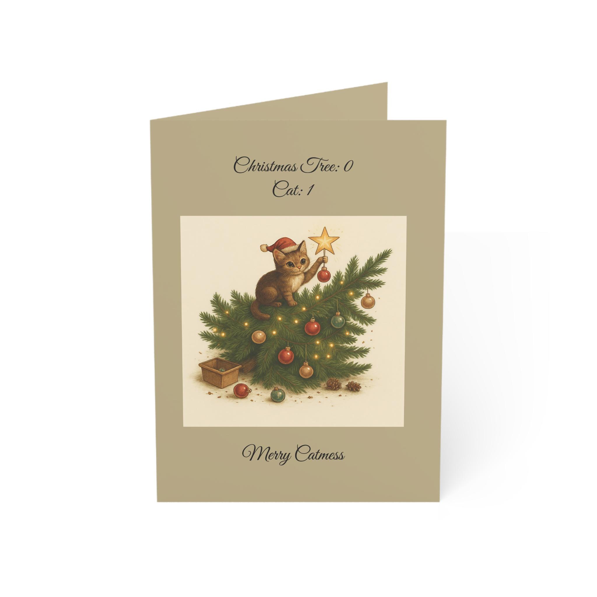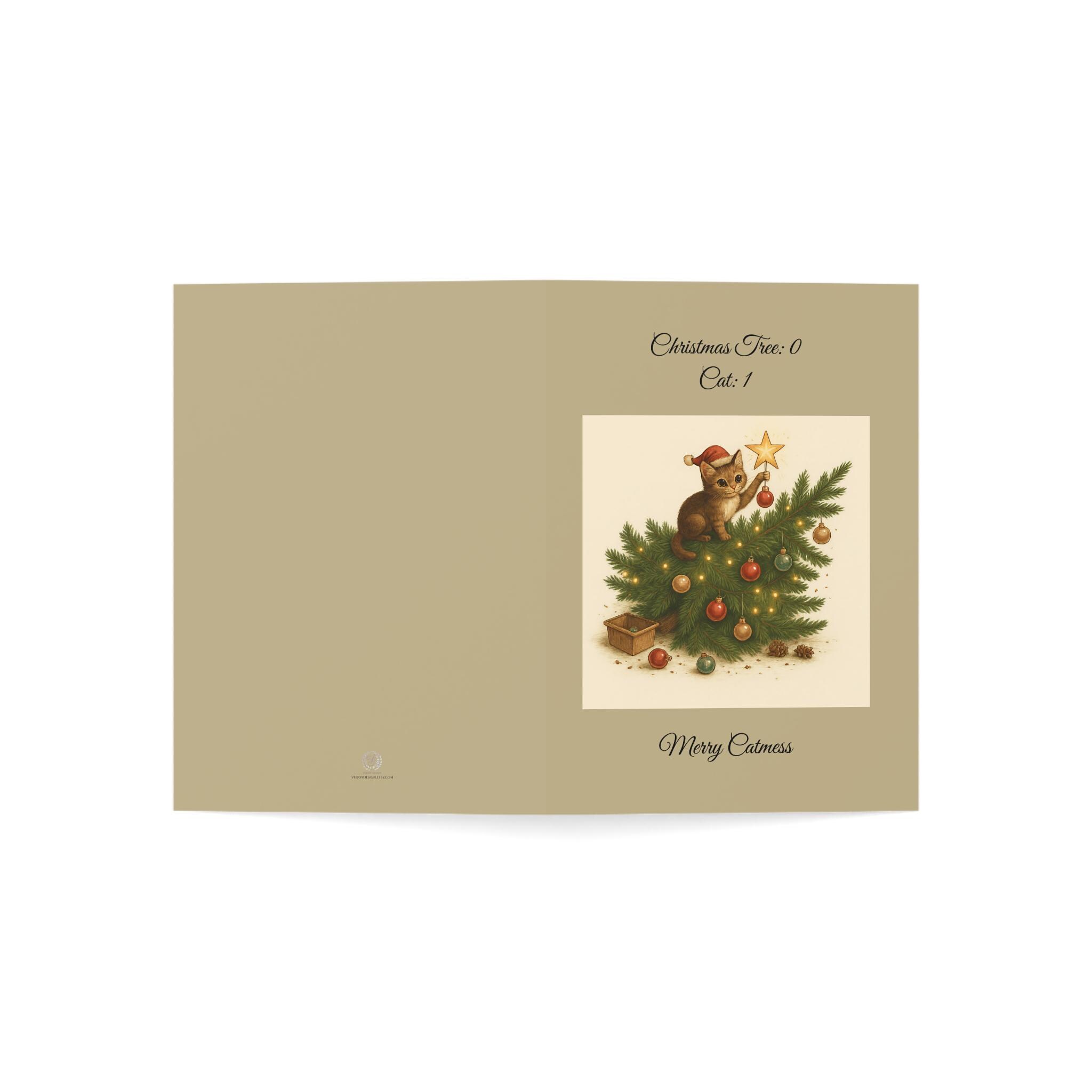 Merry Catmess Christmas Card with vibrant colors and premium quality paper. Perfect for sending holiday wishes to cat lovers and anyone who enjoys playful and colorful designs. Ideal for Christmas and cat-themed celebrations.
