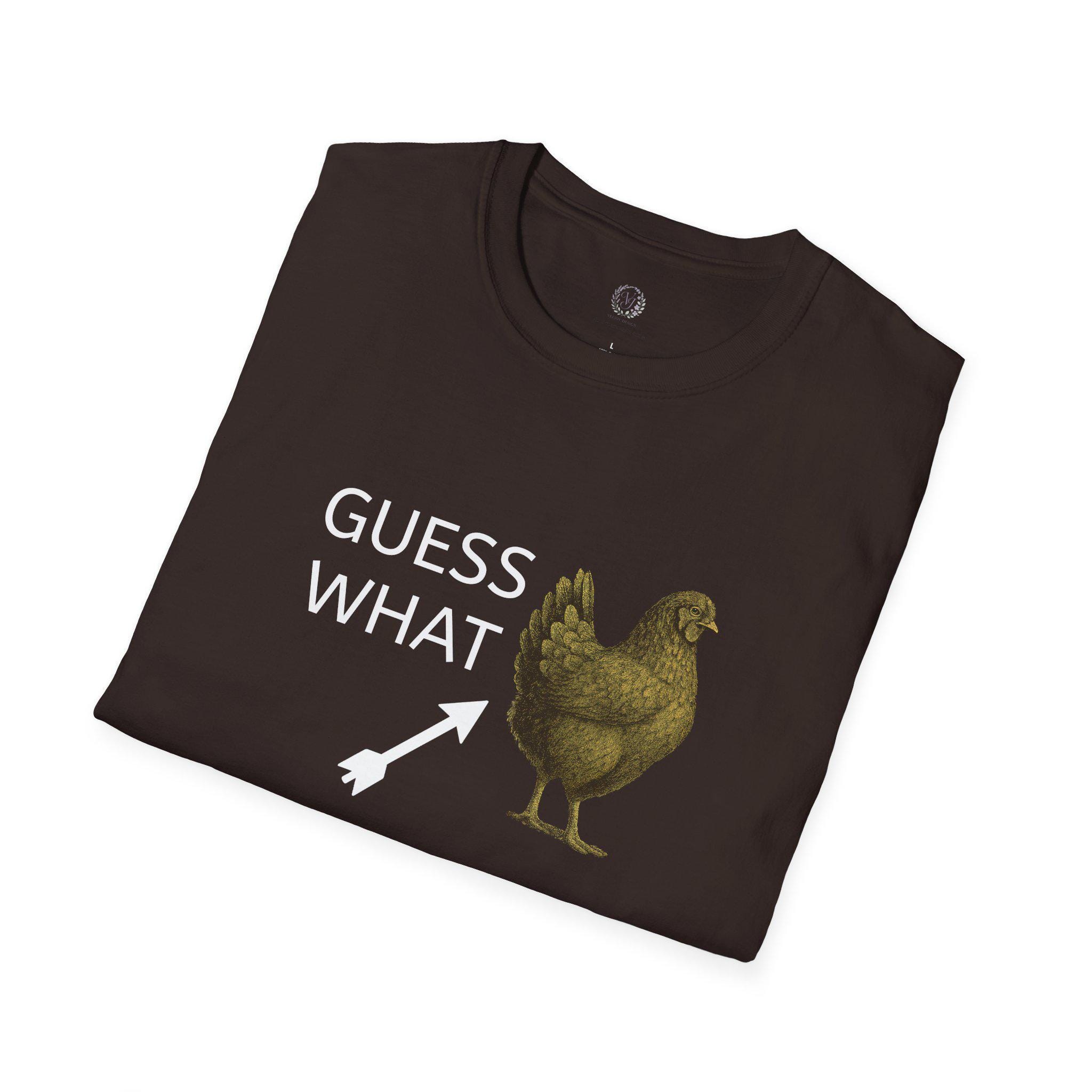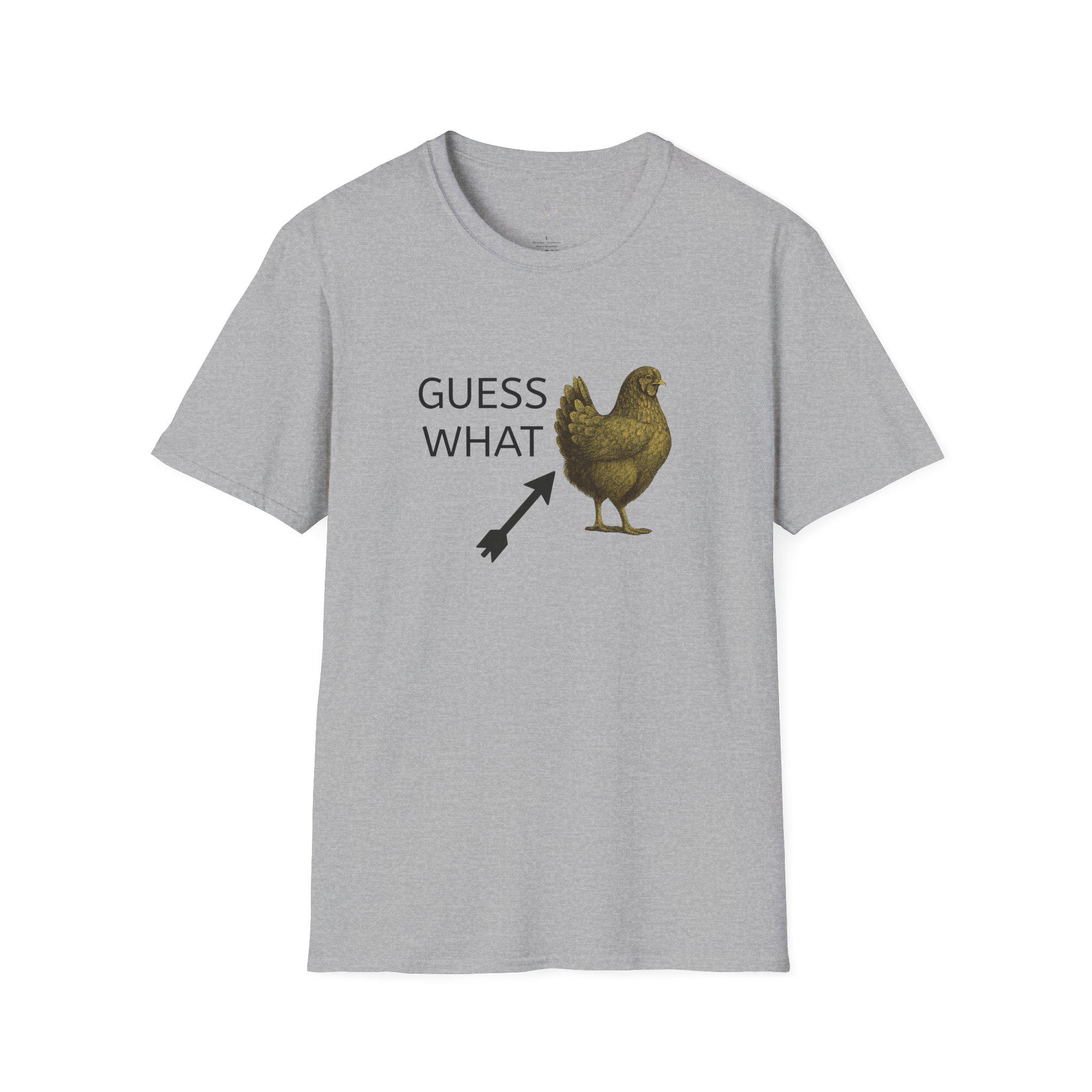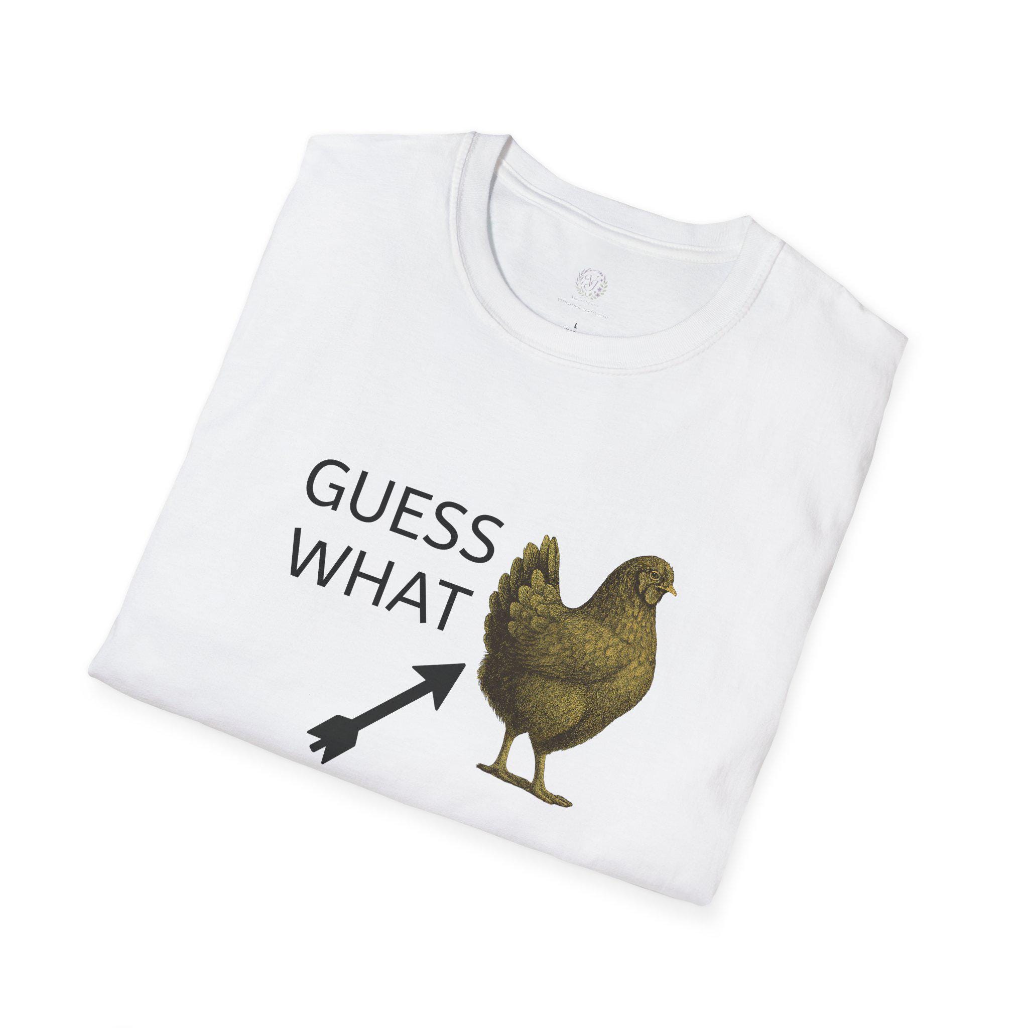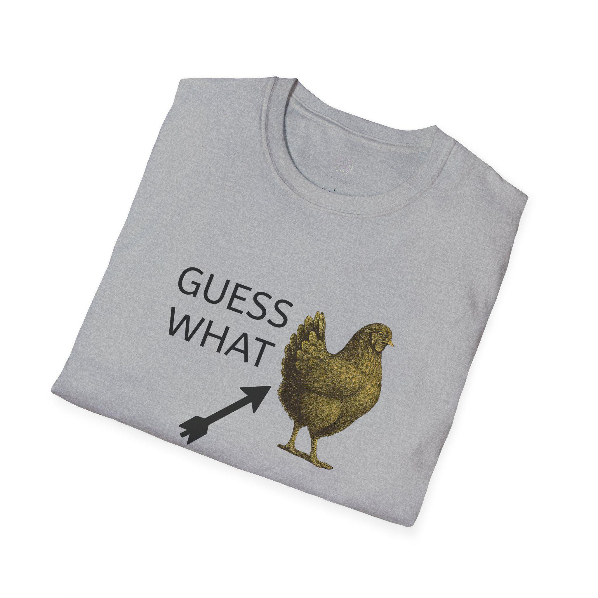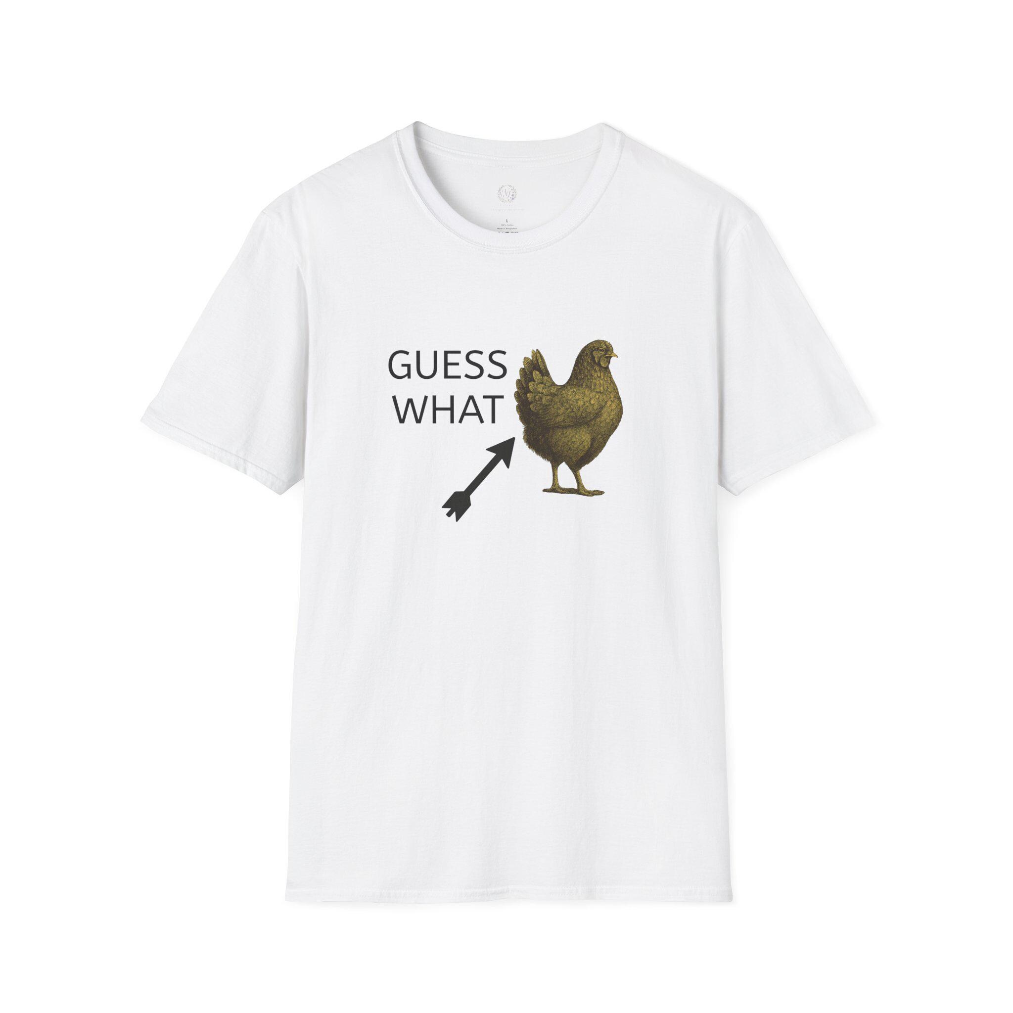 A humorous Guess What Chicken Butt T-Shirt perfect for those who enjoy funny jokes and light-hearted humor. This softstyle T-Shirt offers a comfortable fit for adults and is made from durable, smooth fabric. It is ideal for casual wear and can add a touch of fun to everyday outfits. Perfect for gifting on birthdays, holidays, or any other special occasion.