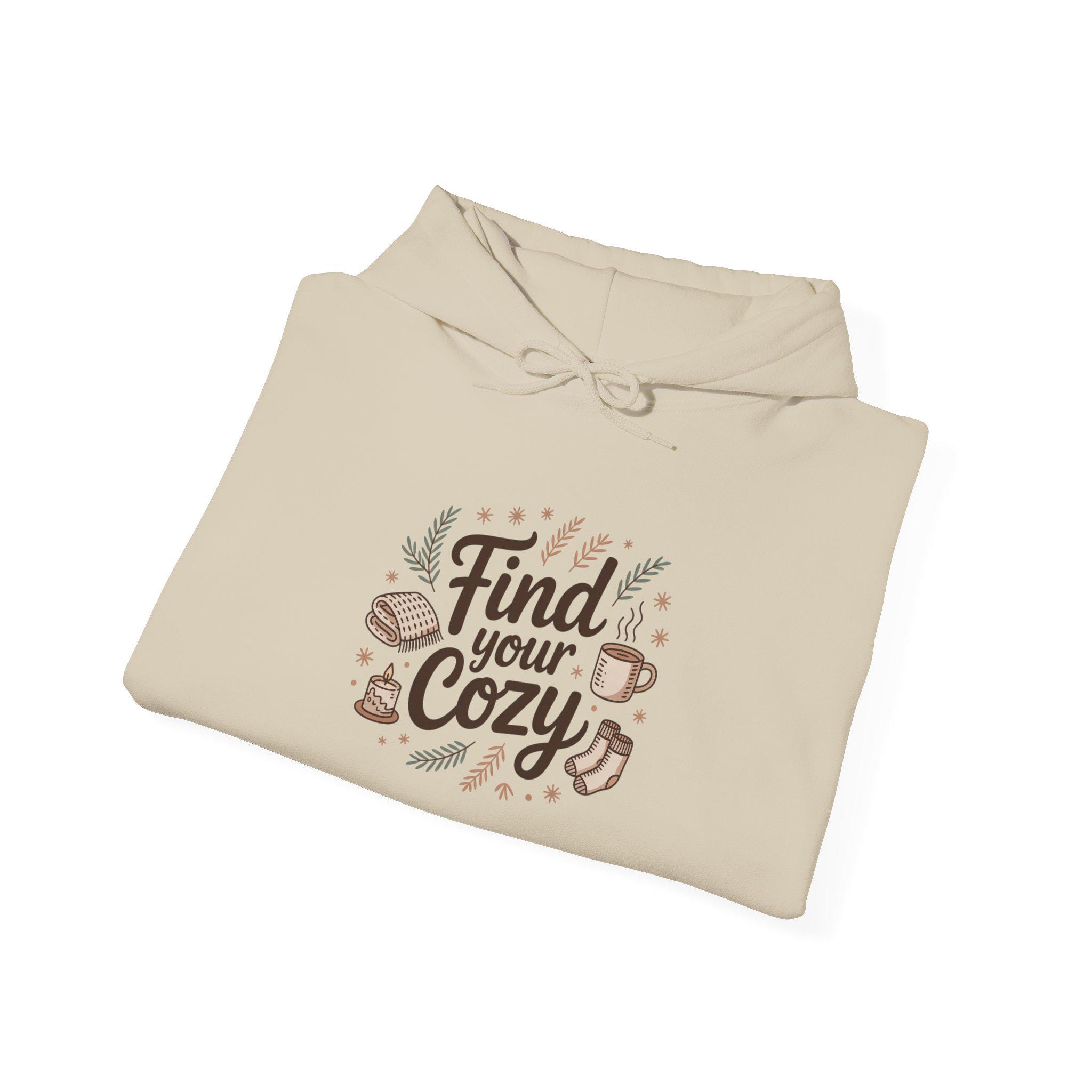 A soft, comforting hoodie that wraps you in slow-morning vibes. The small, centered artwork reads “Find your Cozy” surrounded by steaming mugs, warm knit textures, and gentle leaves—simple art that nudges you to slow down. Wear it at the kitchen table with a mug, layered for an autumn walk, or curled up with a book by the window. The medium-heavy 50/50 cotton-poly blend gives steady warmth without feeling bulky. Classic fit, double-lined hood, and a roomy kangaroo pocket keep hands warm and wrists free. Subtle, neutral tones let the print sit quietly on crisp backgrounds, so the message feels like a private invitation to rest.