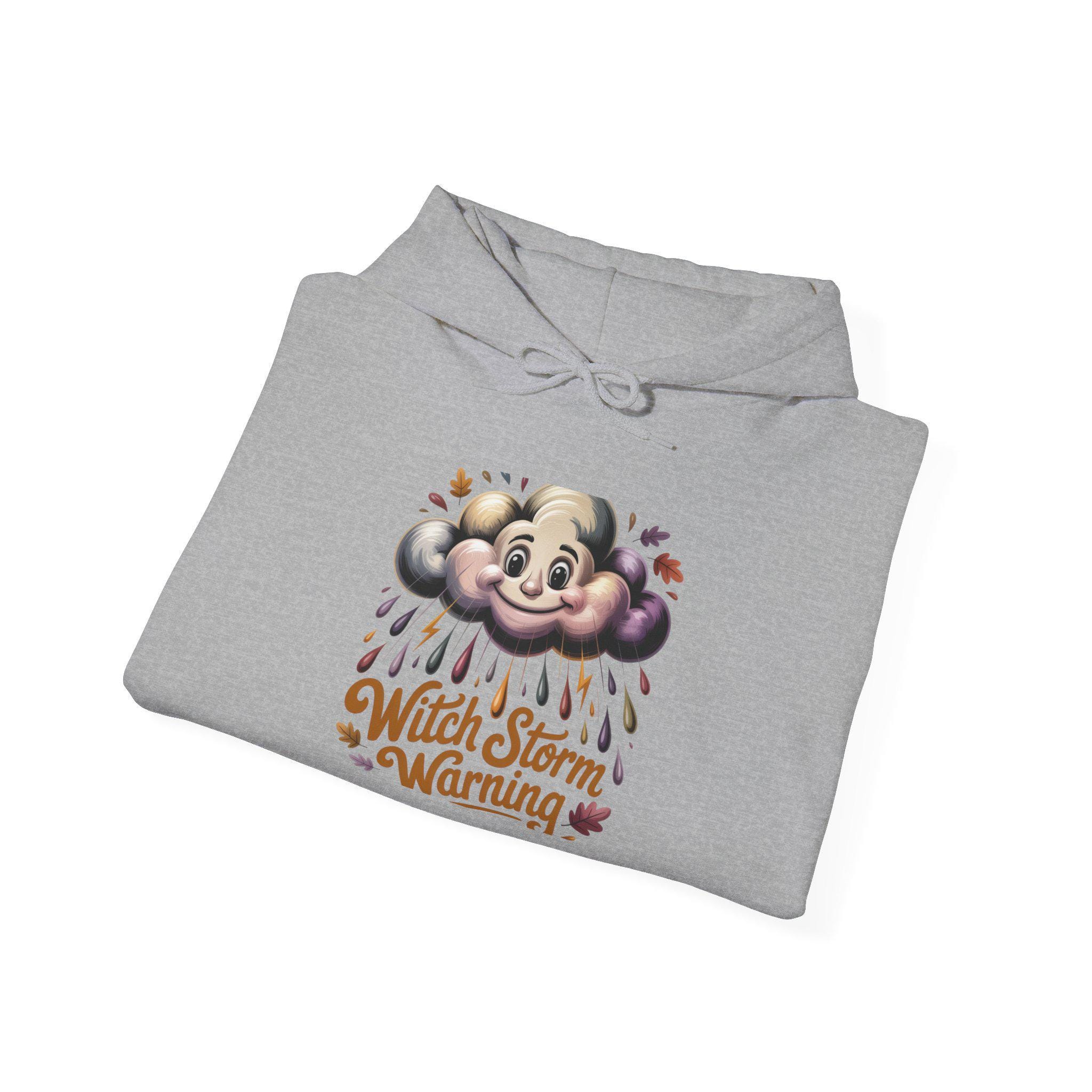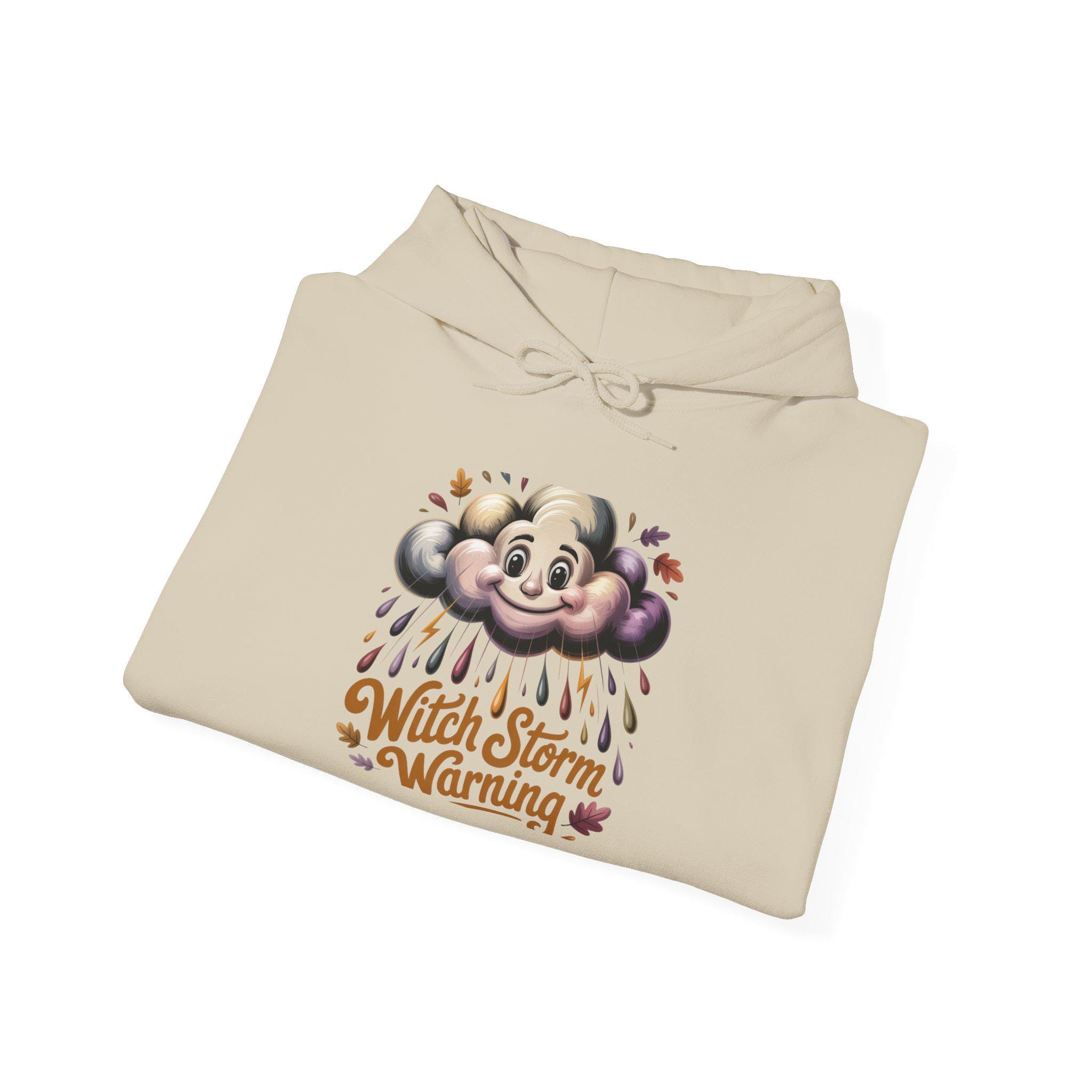 Soft, cozy hoodie with a playful autumn witch motif that feels like a warm, mischievous hug. The design centers on a smiling cloud with crescent eyes, raindrops, and falling leaves around the phrase “Witch Storm Warning,” giving the piece a nostalgic, slightly spooky vibe without being scary. Lightweight warmth and a roomy kangaroo pocket make it a go-to layer for crisp walks, pumpkin patch runs, and low-key gatherings. The double-lined hood and color-matched drawcord add subtle polish, while the tear-away label keeps the neck comfortable for all-day wear. This hoodie settles into your wardrobe like an inside joke with the season — familiar, charming, and quietly witchy.