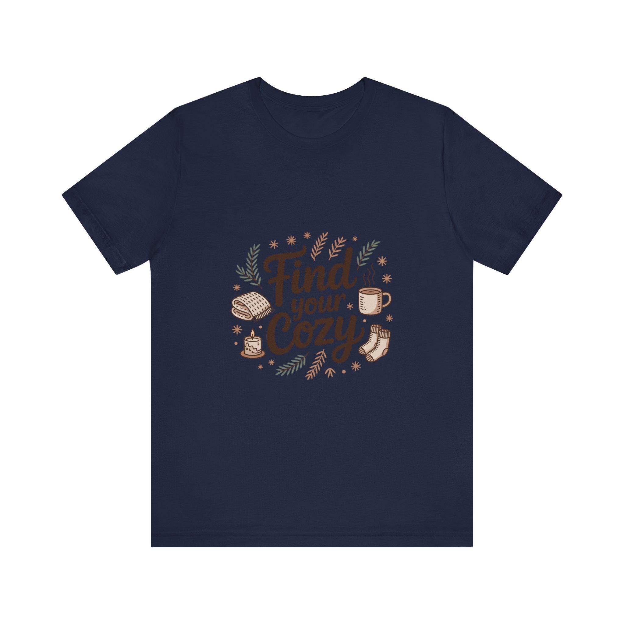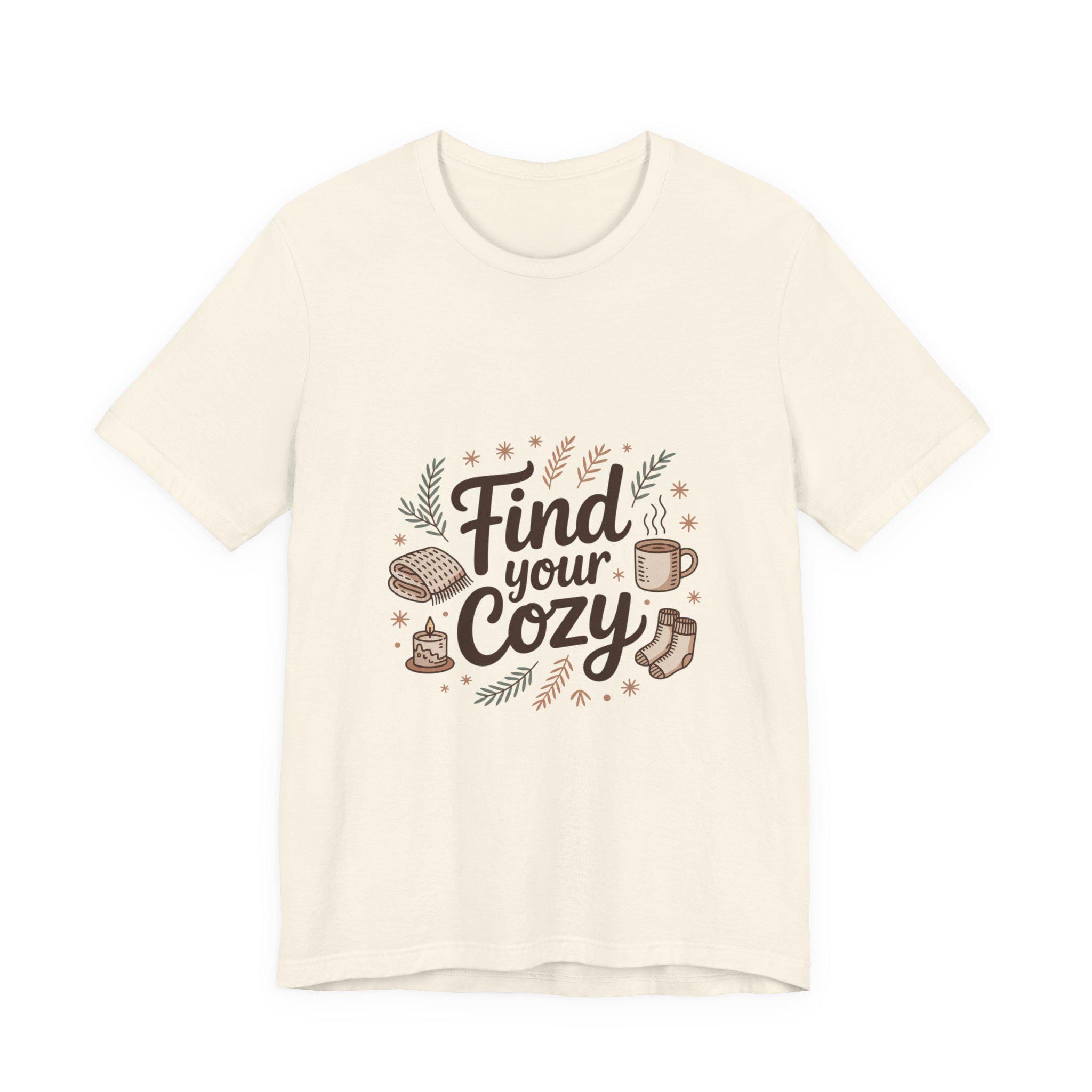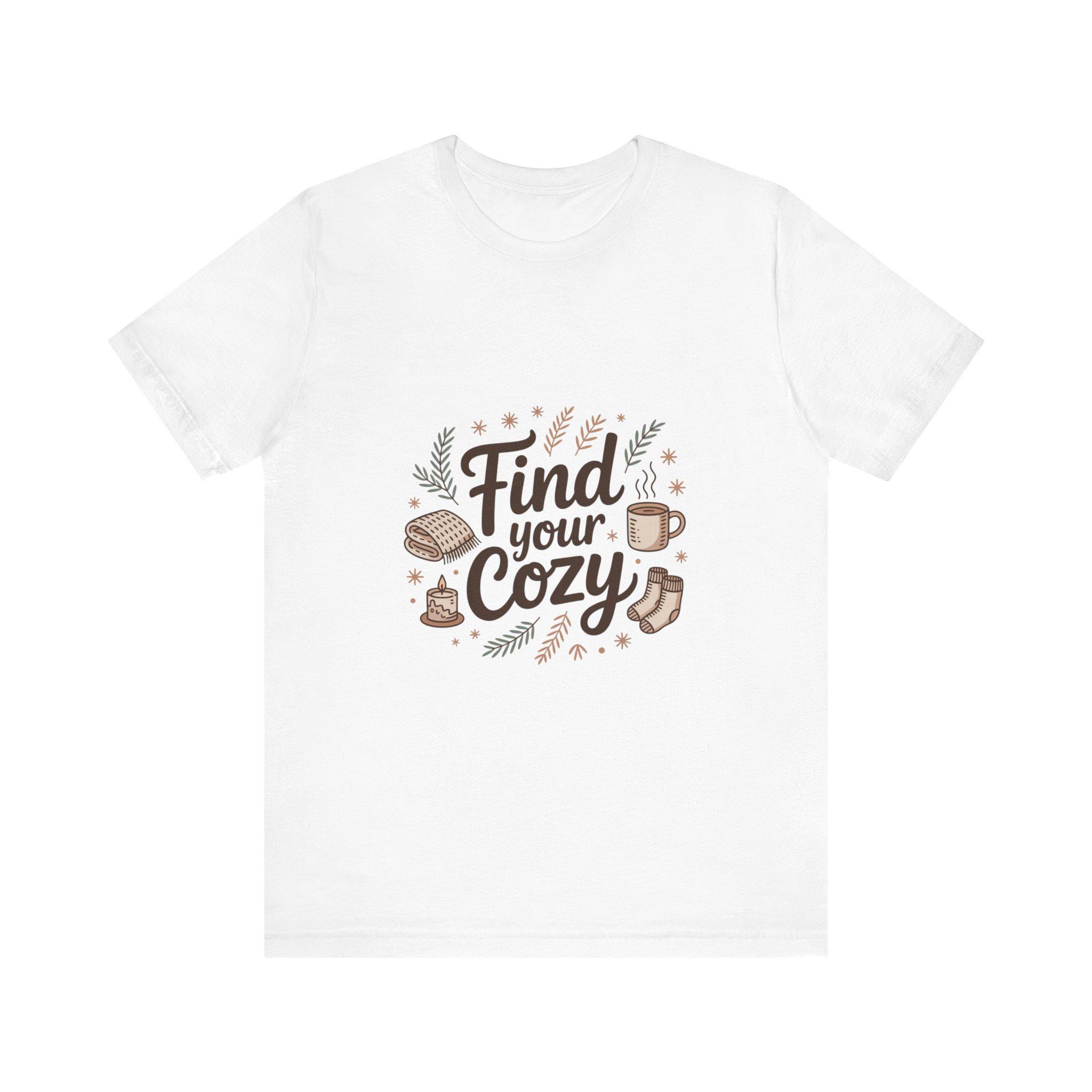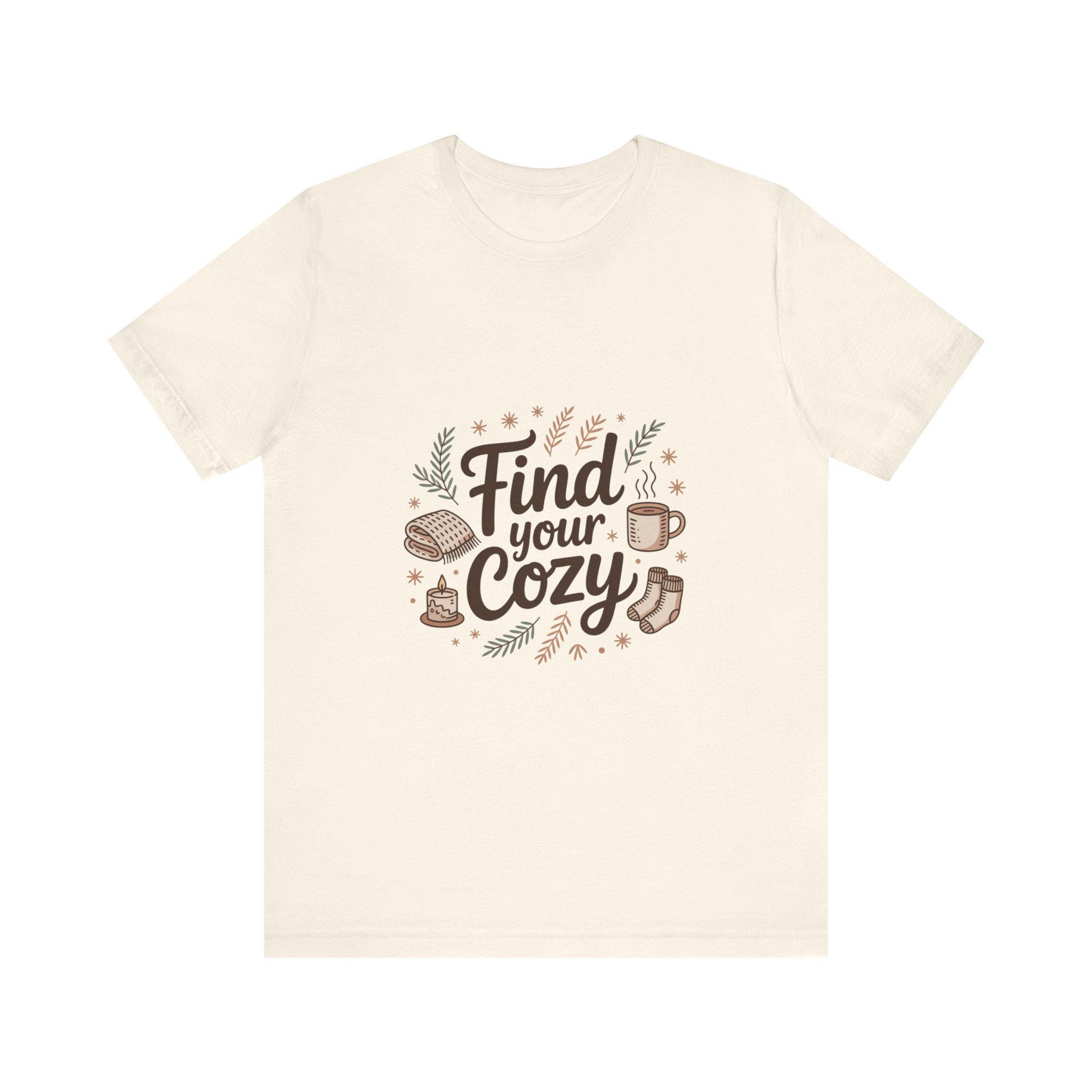 Light, soft, and quietly warm — this tee reads like a gentle nudge to slow down. The centered “Find Your Cozy” design is hand-lettered with tiny illustrations of a steaming mug, warm socks, and a book, all in muted autumn tones. Wear it at home with your favorite loungewear, layer it under a cardigan for a chilly coffee run, or pack it for a weekend cabin stay. The shirt’s breathable, lightweight cotton feels familiar the moment you put it on and keeps its shape through washes. It’s for people who collect small comforts and cultivate slow, restorative moments.