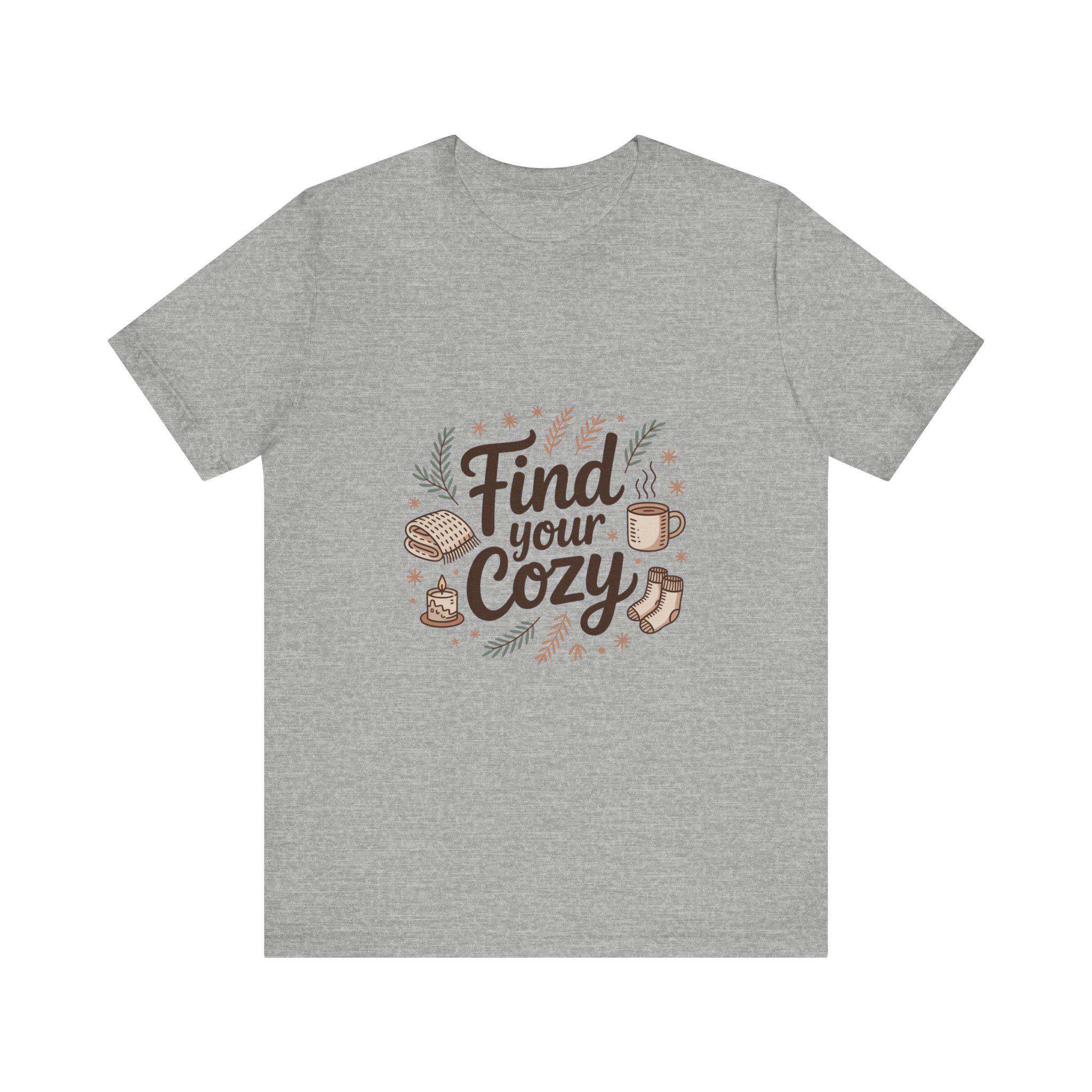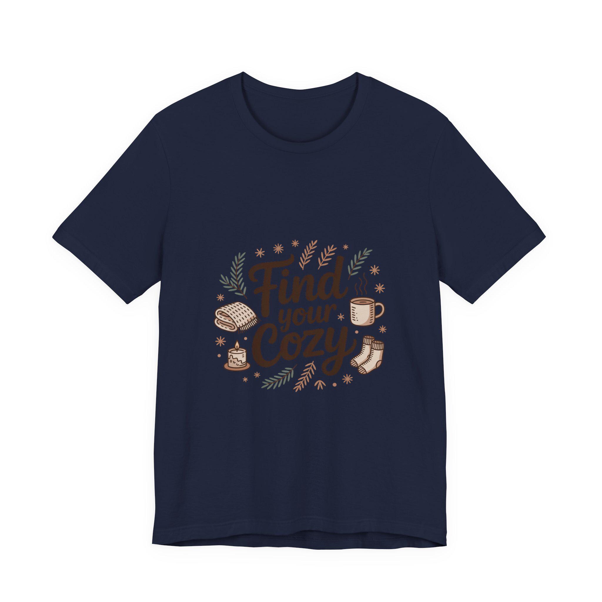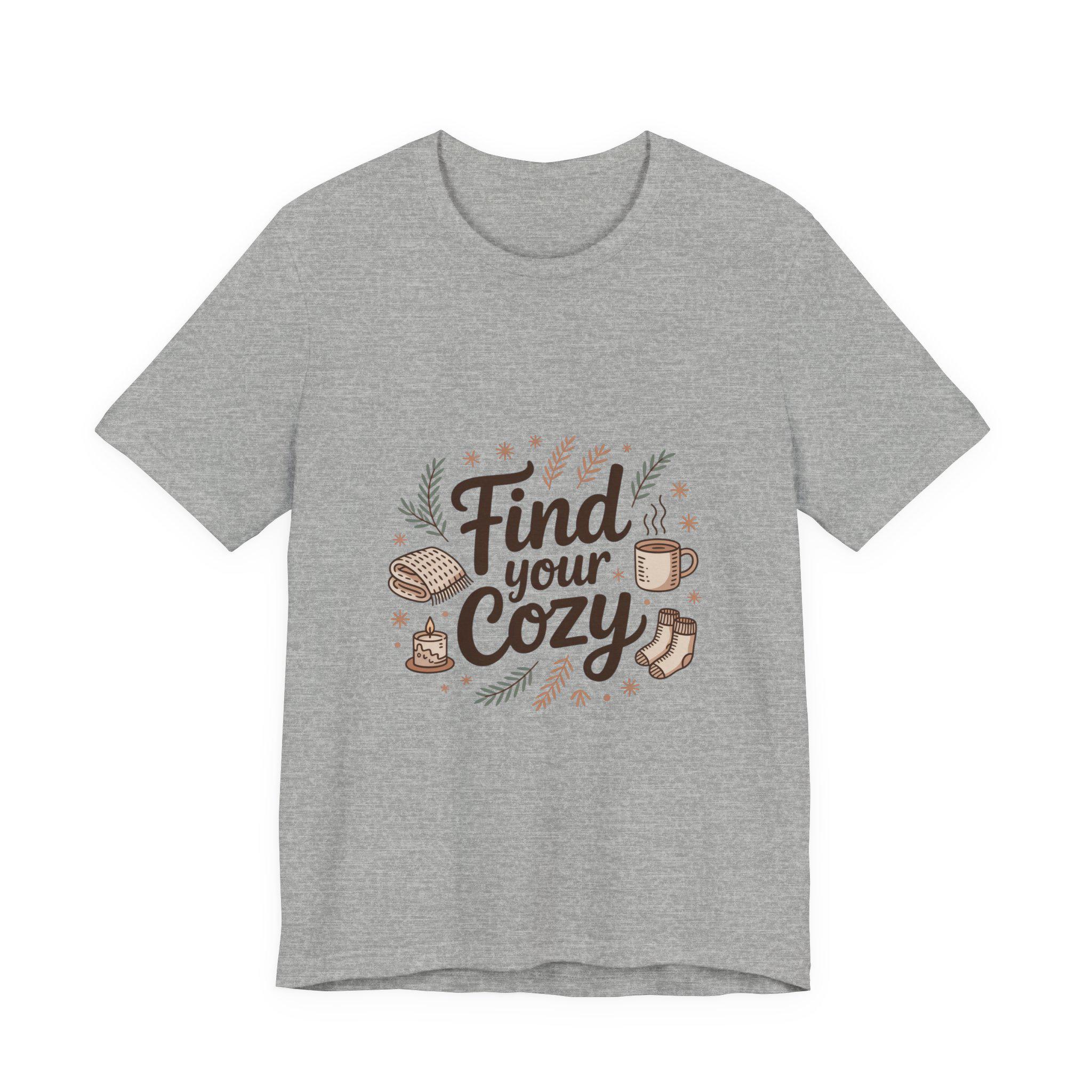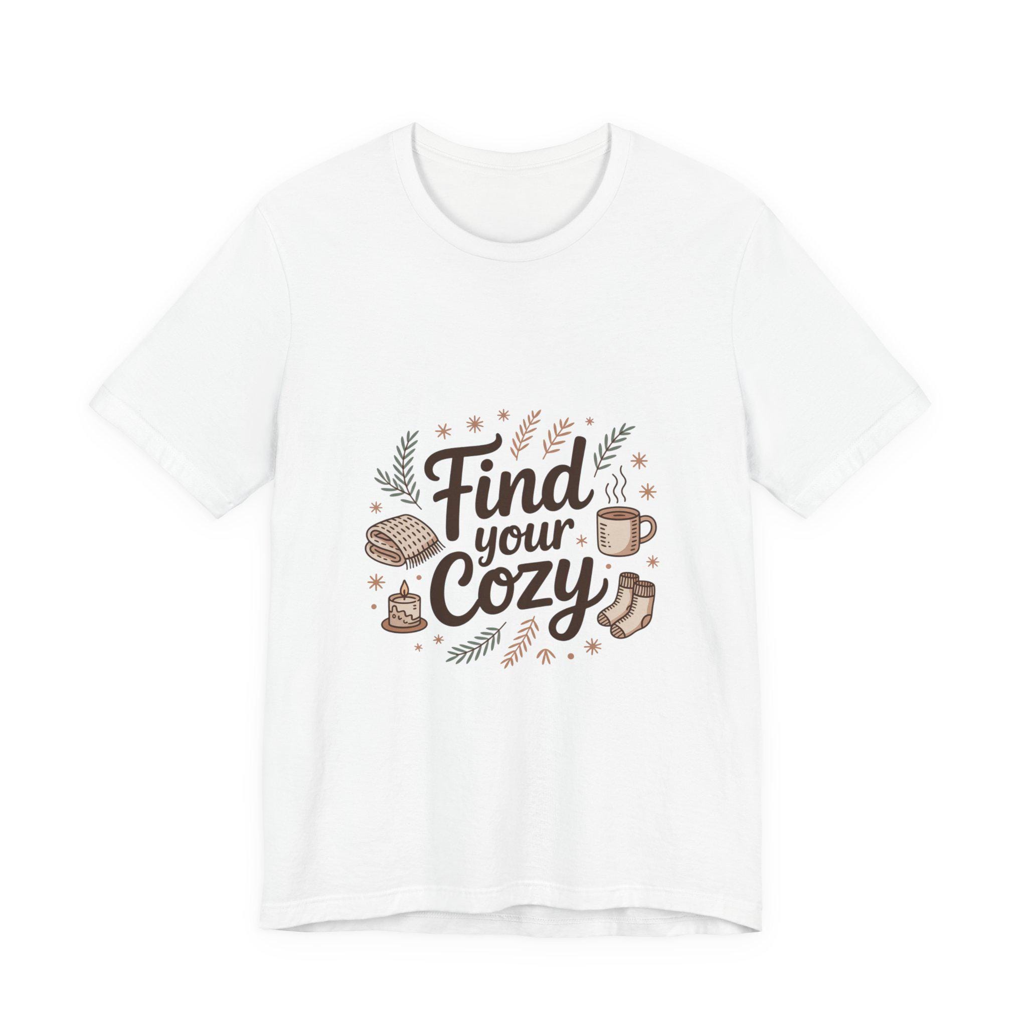 Light, soft, and quietly warm — this tee reads like a gentle nudge to slow down. The centered “Find Your Cozy” design is hand-lettered with tiny illustrations of a steaming mug, warm socks, and a book, all in muted autumn tones. Wear it at home with your favorite loungewear, layer it under a cardigan for a chilly coffee run, or pack it for a weekend cabin stay. The shirt’s breathable, lightweight cotton feels familiar the moment you put it on and keeps its shape through washes. It’s for people who collect small comforts and cultivate slow, restorative moments.