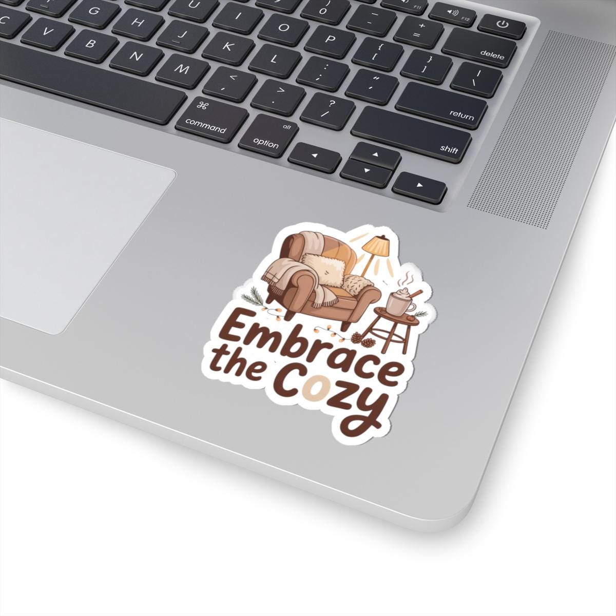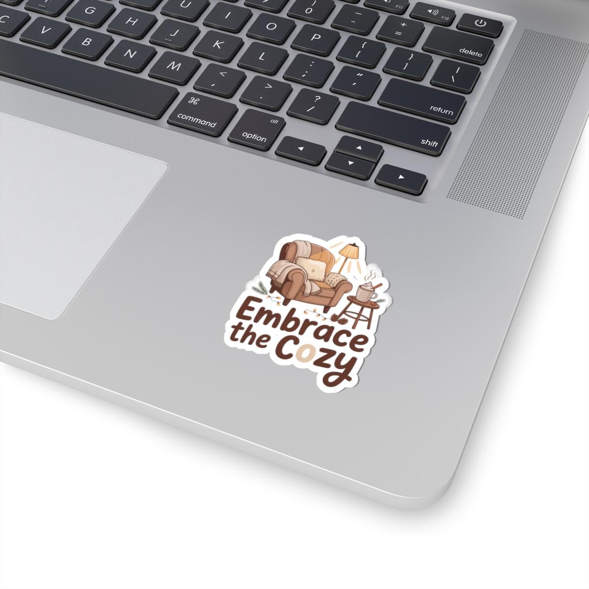 Wrap a little corner of calm around your things with this warm, illustrated sticker. A worn armchair, steaming mug, soft lamp glow and scattered pinecones form a tiny scene that invites slow afternoons and quiet comforts. The hand-lettered “Embrace the Cozy” phrase settles into the design like a whispered reminder to pause. It sticks smoothly to laptops, journals, water bottles, and windows — adding personality and a gentle mood wherever you place it.