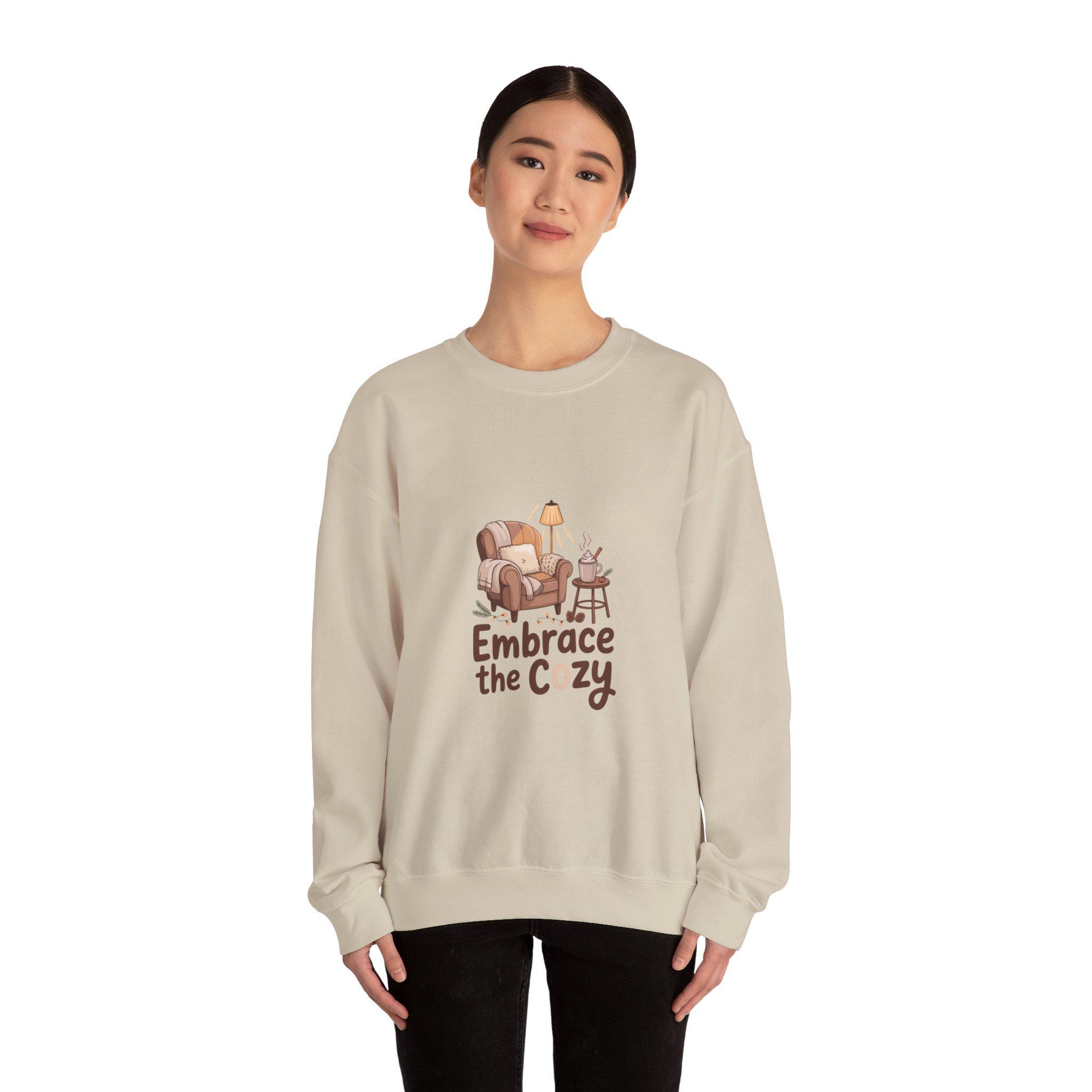 Wrap yourself in quiet comfort. This mid-weight crewneck features a soft, pill-resistant blend and a gentle, hand-drawn illustration that invites you to slow down: a plush armchair, a glowing lamp, and a steaming mug with the words “Embrace the Cozy.” It sits cleanly on the chest and reads like a tiny, wearable living room—easy to pair with jeans or lounge pants and built to last with reinforced stitching and a smooth tear-away label. Thoughtful production choices (OEKO-TEX dyes, ethically grown cotton) mean the sweatshirt feels good to wear and to support. Reach for it on chilly mornings, low-key evenings, or whenever you want to bring a little homey warmth into your day.
