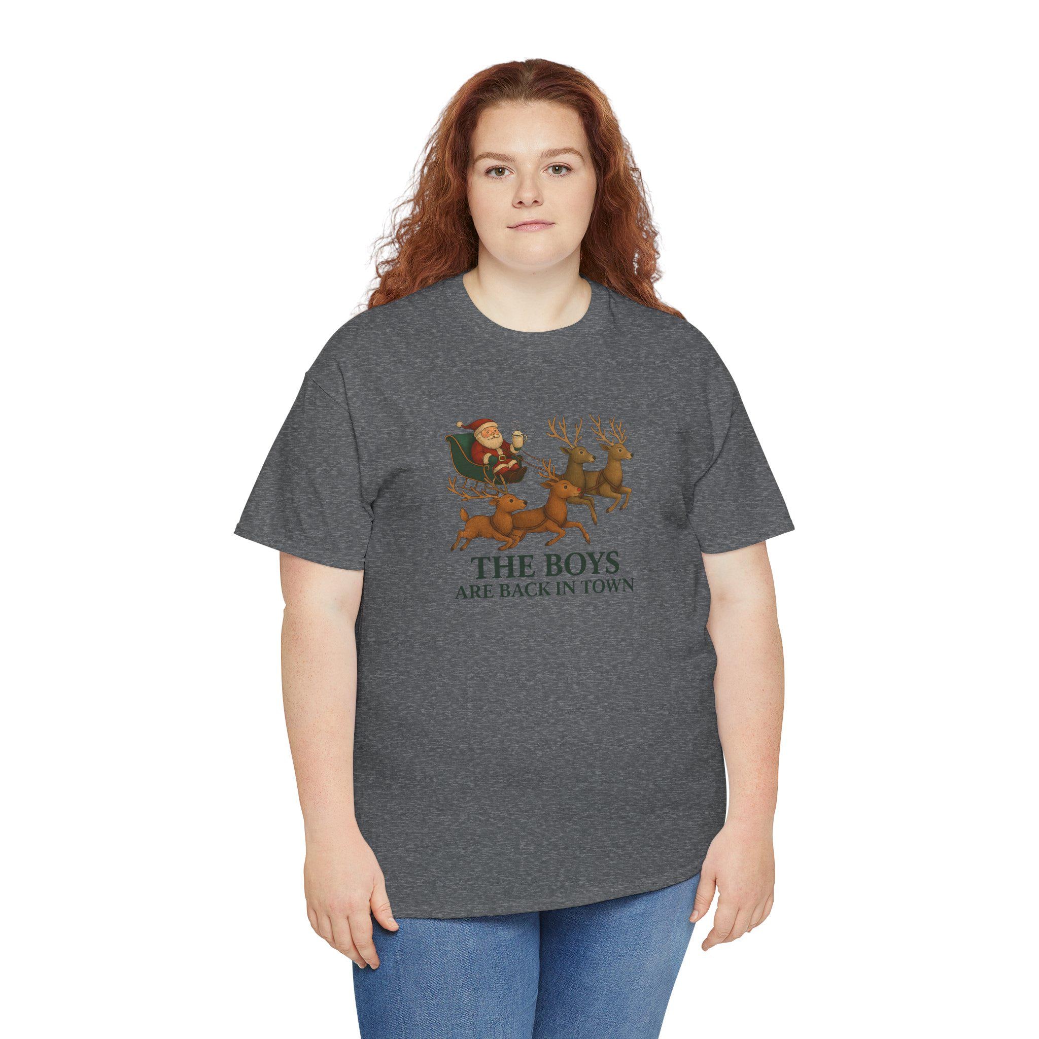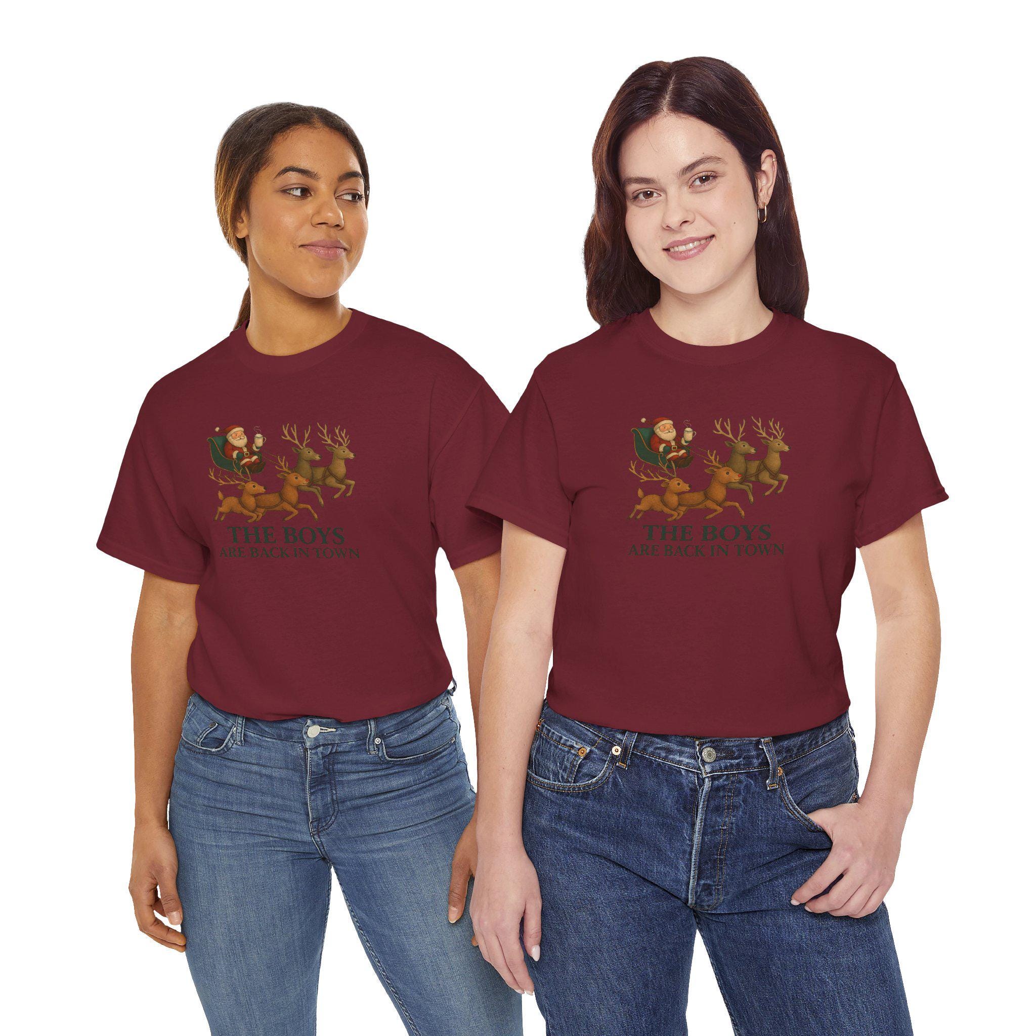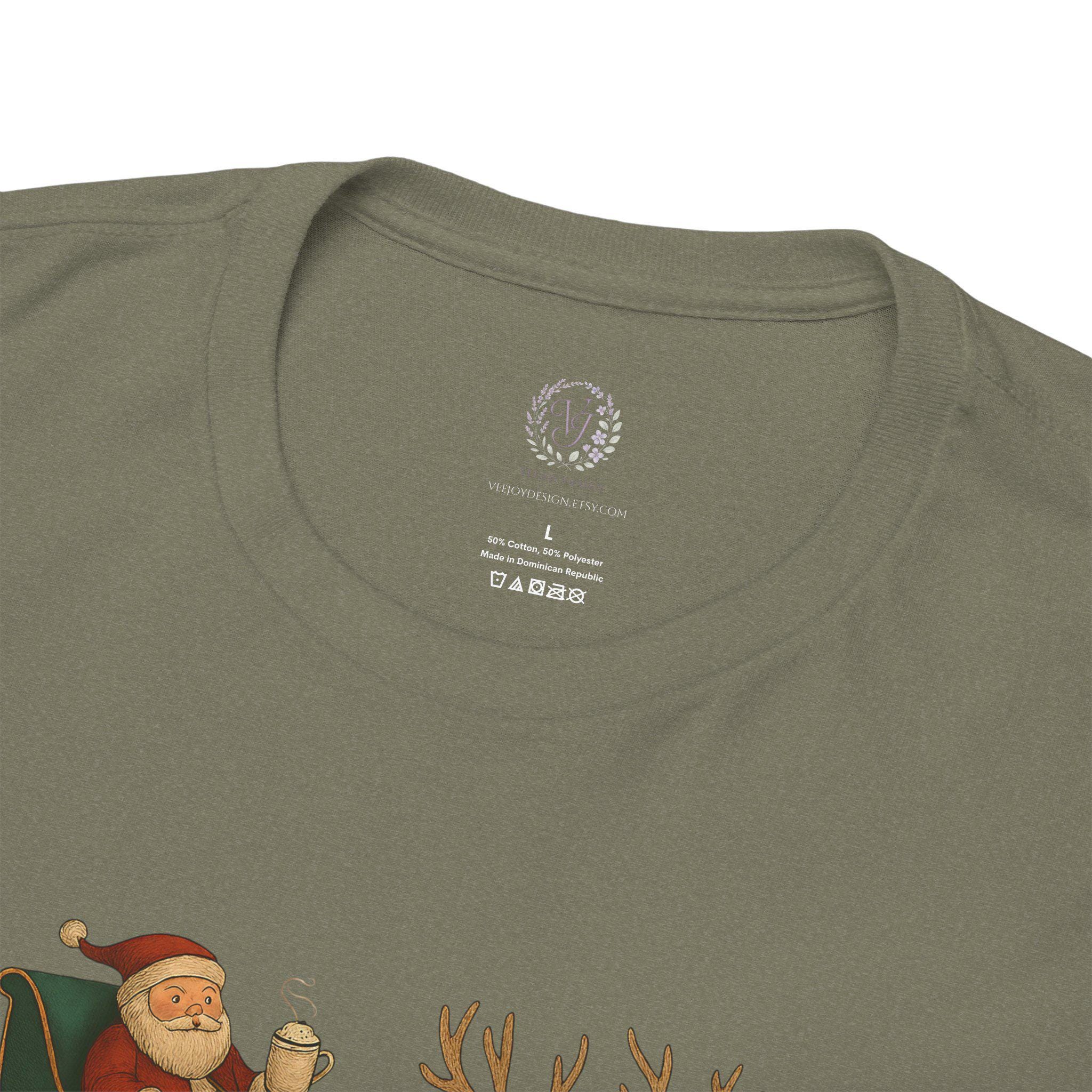 A playful, retro holiday tee that brings a wink of rock ’n’ roll to winter nights. Bright, cheeky artwork of Santa and his reindeer ready to roll evokes carols sung loud and laughter shared around string lights. Lightweight but sturdy, the shirt drapes casually for easy layering—throw it on for a tree-lighting, a cozy house party, or a late-night cookie run. It speaks to folks who love a bit of tongue-in-cheek charm in their holiday wardrobe and who treasure comfort without fuss. The natural cotton texture and crisp printing keep the design vibrant wash after wash, so the joke (and the warmth) sticks around through every season of celebration.