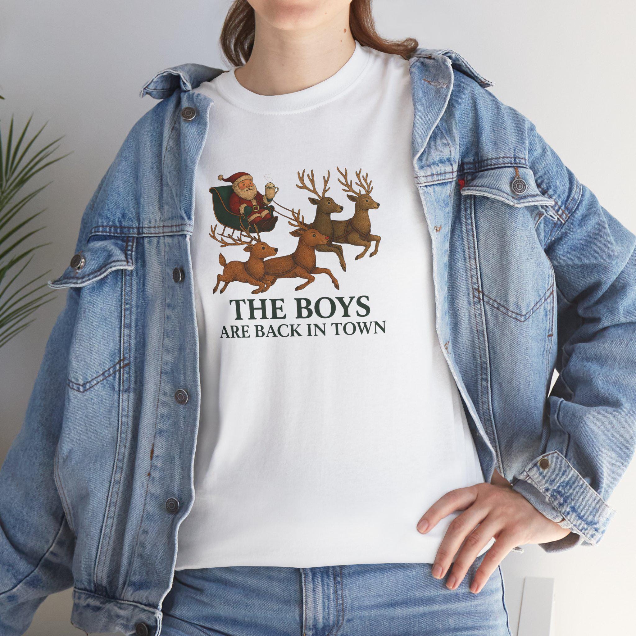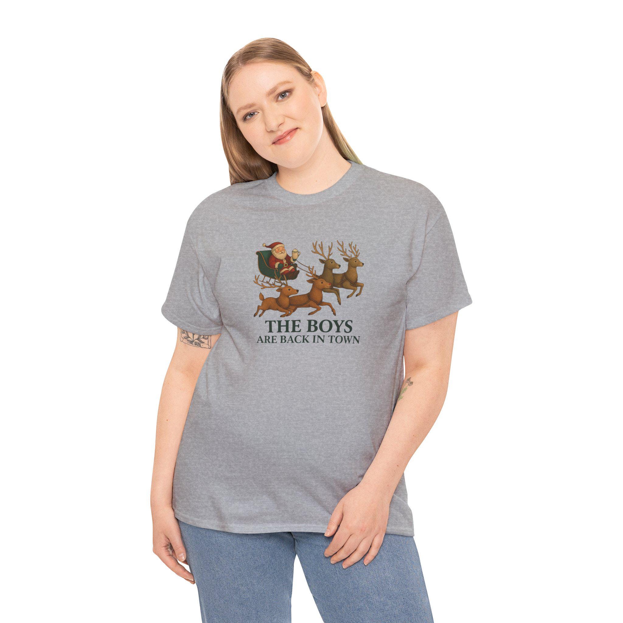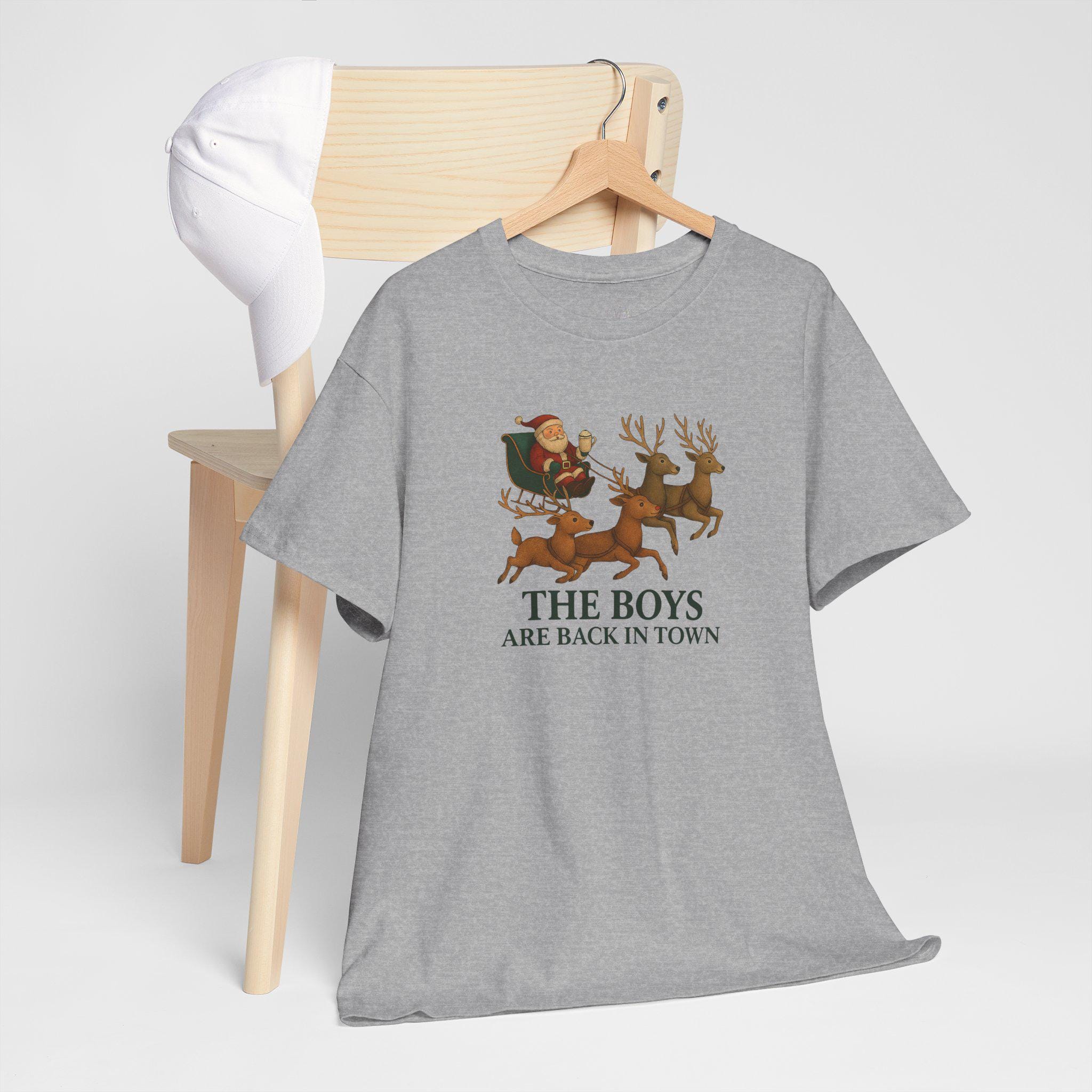 A playful, retro holiday tee that brings a wink of rock ’n’ roll to winter nights. Bright, cheeky artwork of Santa and his reindeer ready to roll evokes carols sung loud and laughter shared around string lights. Lightweight but sturdy, the shirt drapes casually for easy layering—throw it on for a tree-lighting, a cozy house party, or a late-night cookie run. It speaks to folks who love a bit of tongue-in-cheek charm in their holiday wardrobe and who treasure comfort without fuss. The natural cotton texture and crisp printing keep the design vibrant wash after wash, so the joke (and the warmth) sticks around through every season of celebration.