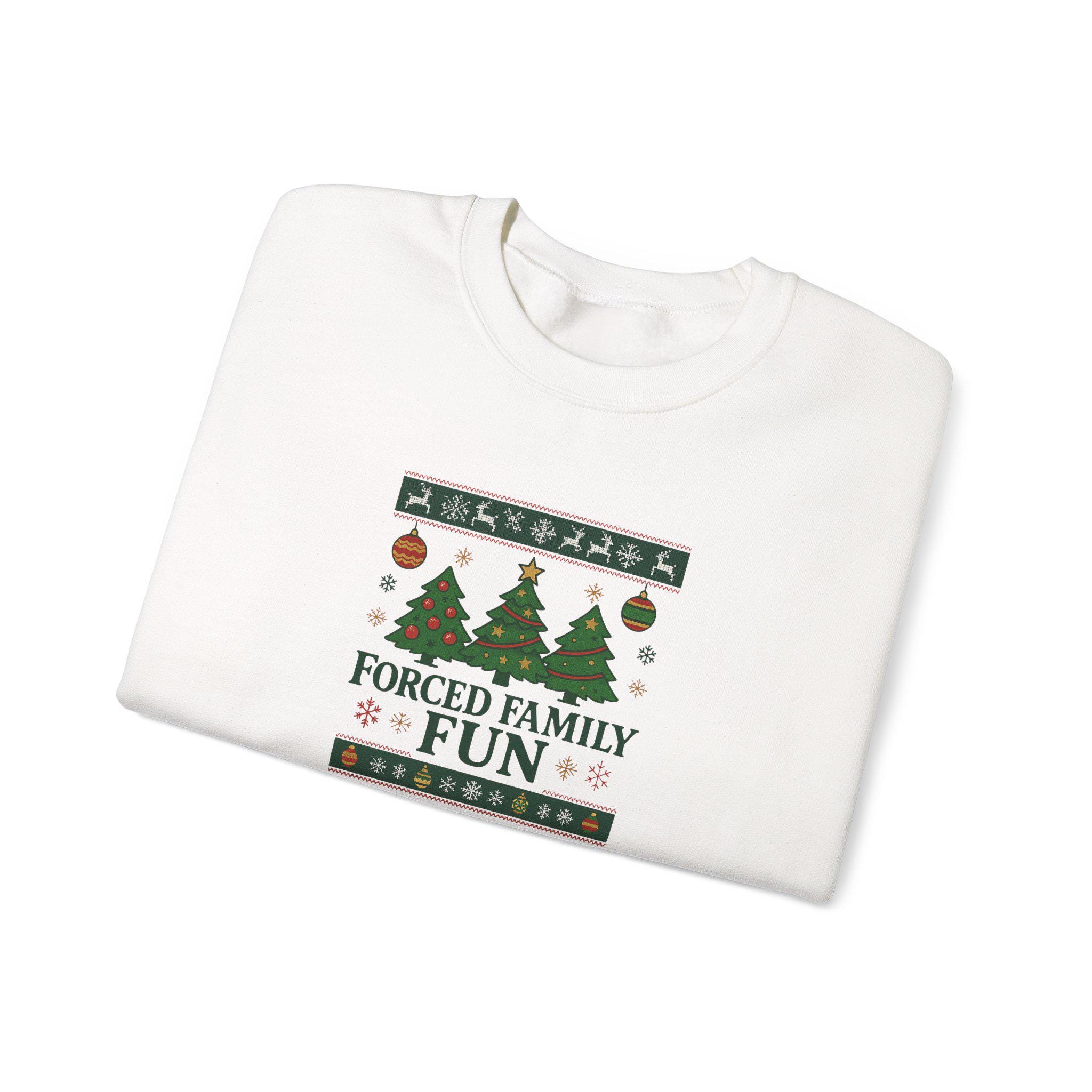 Forced Family Fun Holiday Humor Crewneck Sweatshirt | Funny Christmas Sweatshirt, Unisex Winter Pullover, Festive Xmas Top, Humorous