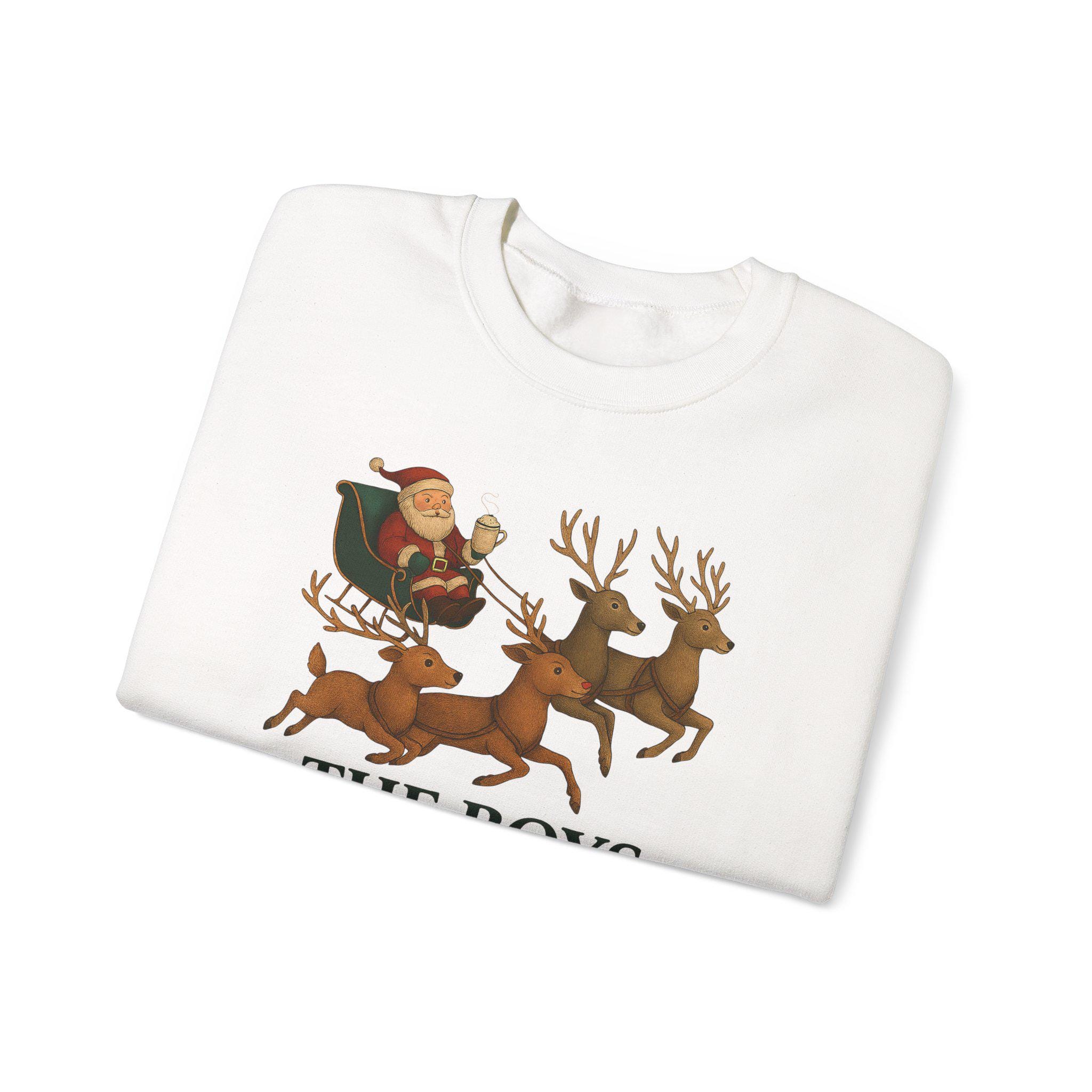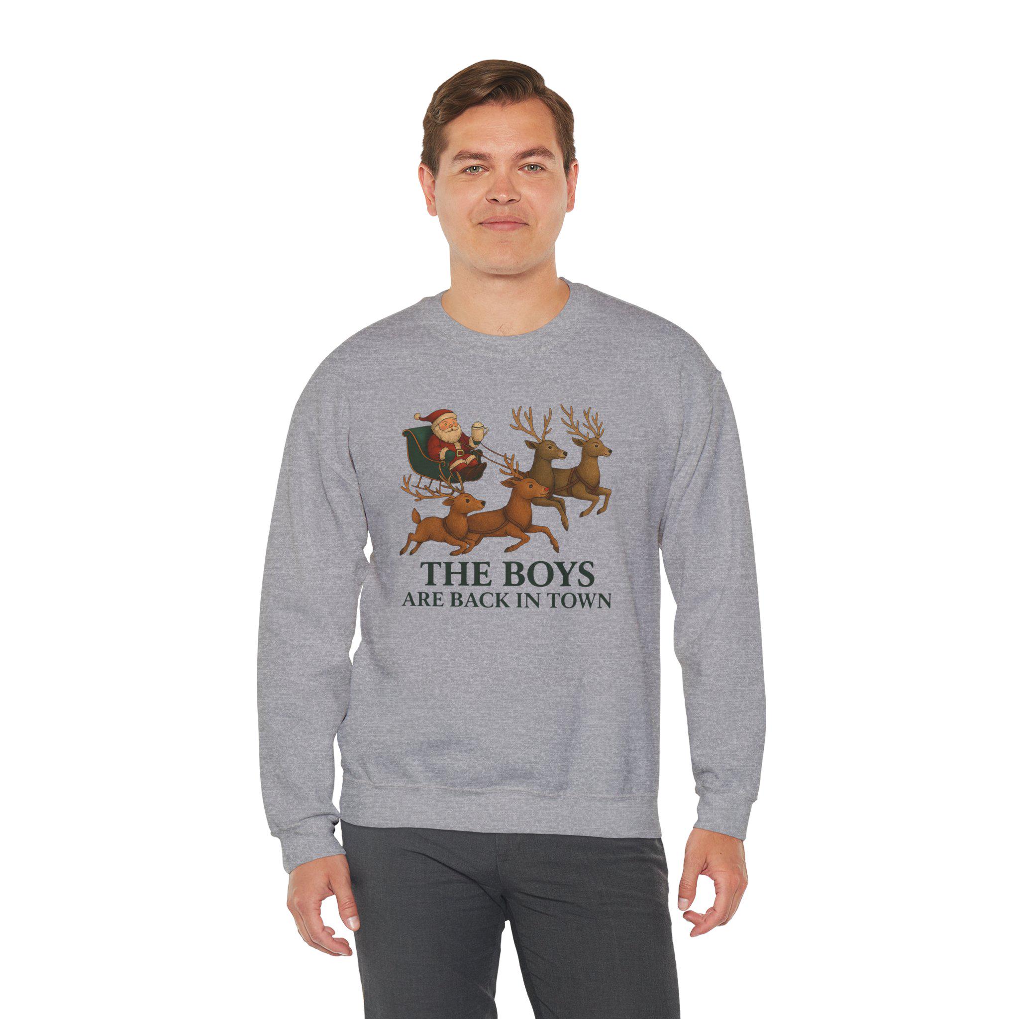 Stay cozy and stylish with this Santa and Reindeer Humor Sweatshirt. Perfect for holiday gatherings or just spreading some festive cheer. This unisex sweatshirt is designed for adults with a classic fit and crew neckline for ultimate comfort. The holiday humor print adds a touch of fun to your wardrobe, making it a great gift for friends and family during the holiday season.